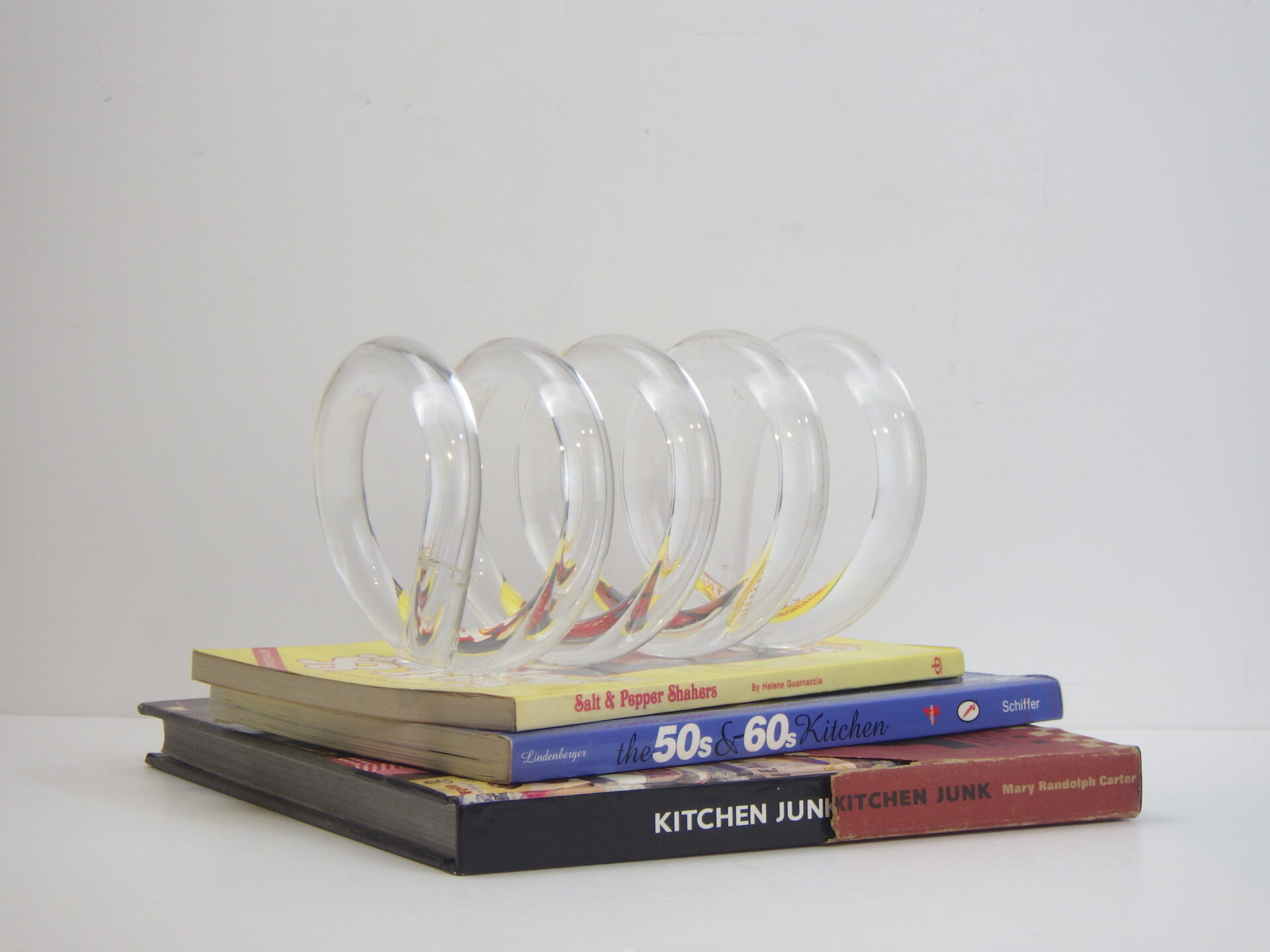 | アメリカで買い付けました。 ビンテージのレターホルダーです。 スパイラルデザインが斬新ですが、透け感のある素材感がイマドキで、様々なテイストの空間にマッチしそう。 手紙やはがきの他に、名刺やちょっとした書類などまとめておくのにも便利そう。 インテリアとしての存在感も抜群なので、個性的なアイテムをお探しの方におすすめなアイテムです。 |