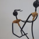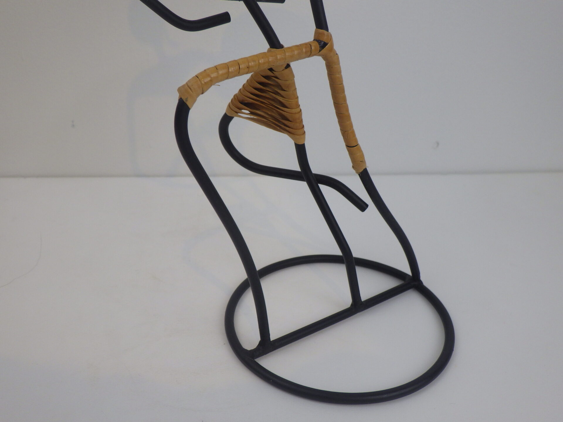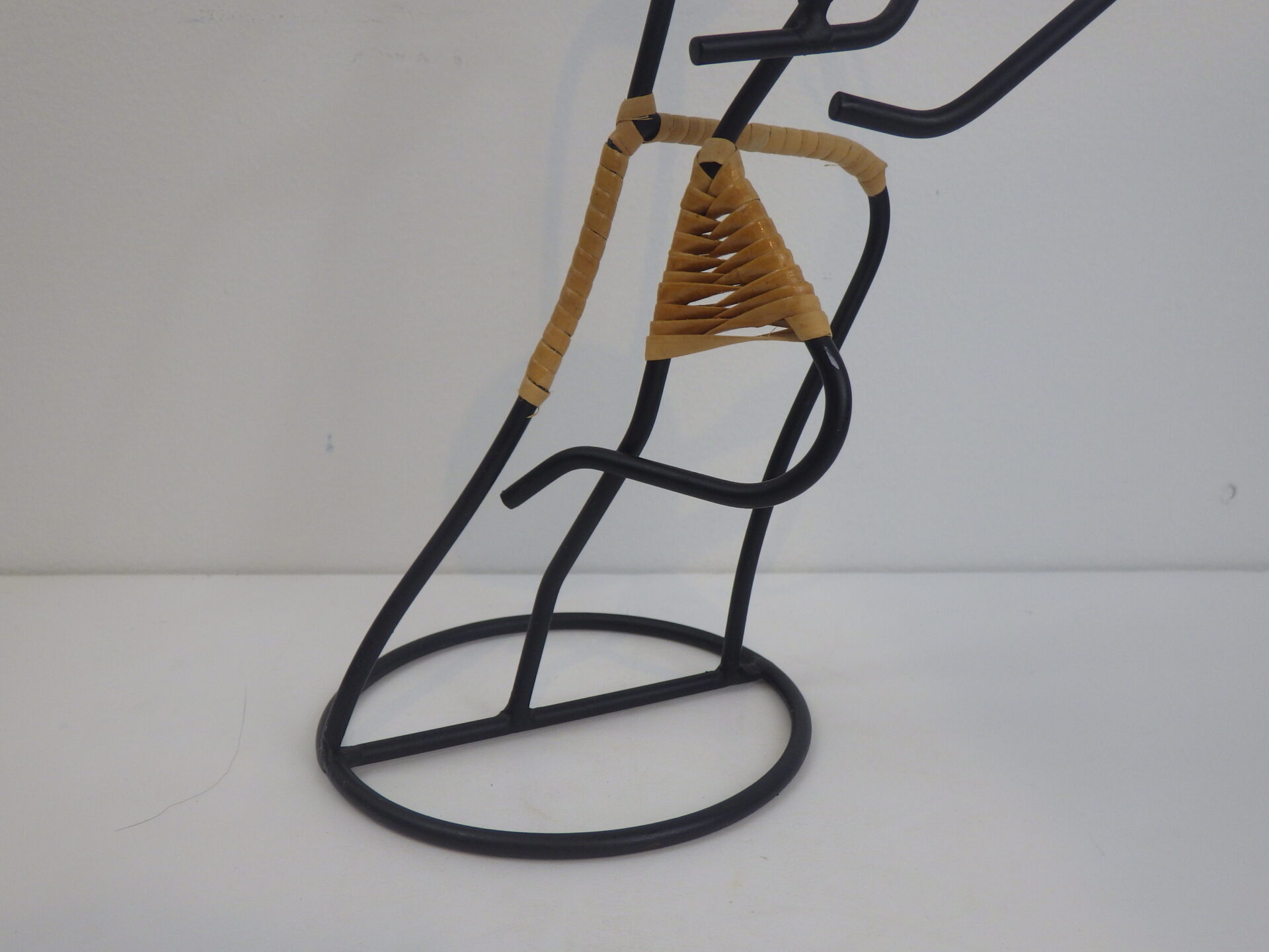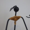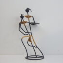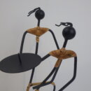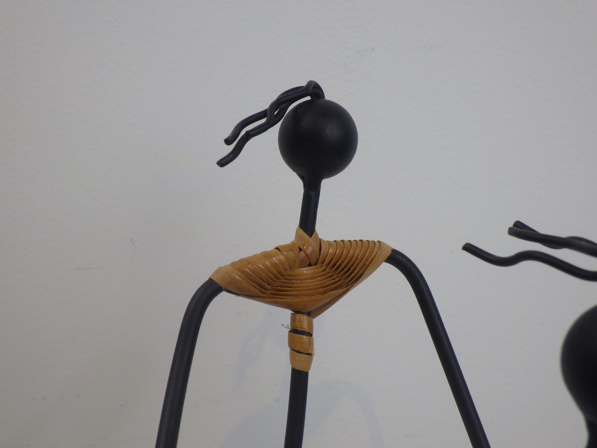| アメリカで買い付けました。 ビンテージのキャンドルホルダーです。 本体は鉄製で、衣装は竹で出来ています。 エスニックな雰囲気がたまりません。 男女でペアになり、踊りを踊っているようです。 なびく髪が、躍動感を表していますね。 片側に傾いたバランスになっていますが、キャンドルを設置することでバランスが取れる構造になっています。 (キャンドルがなくても自立はします) |