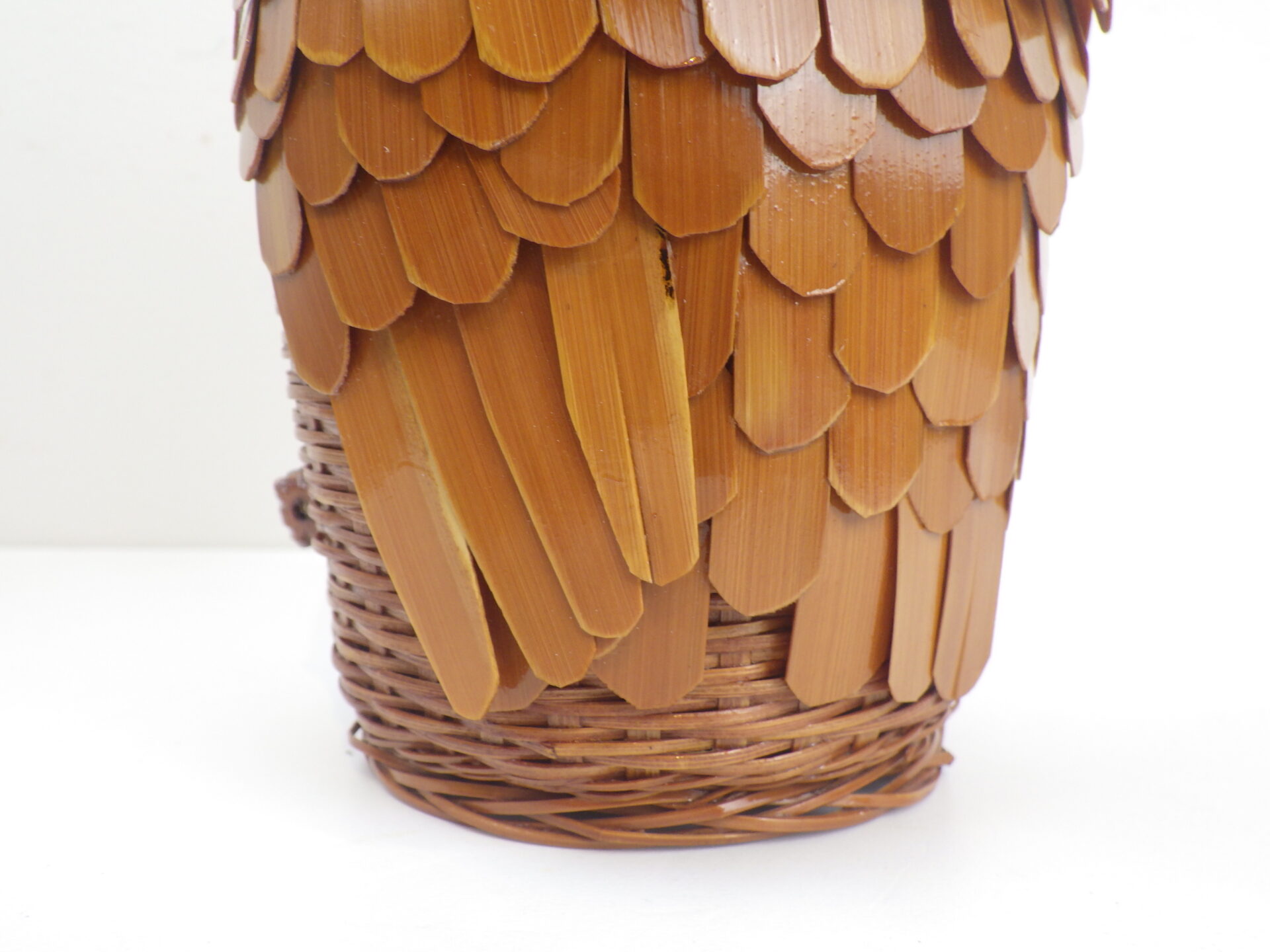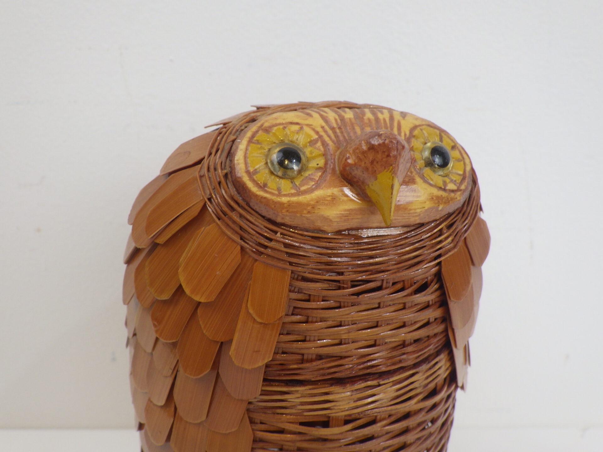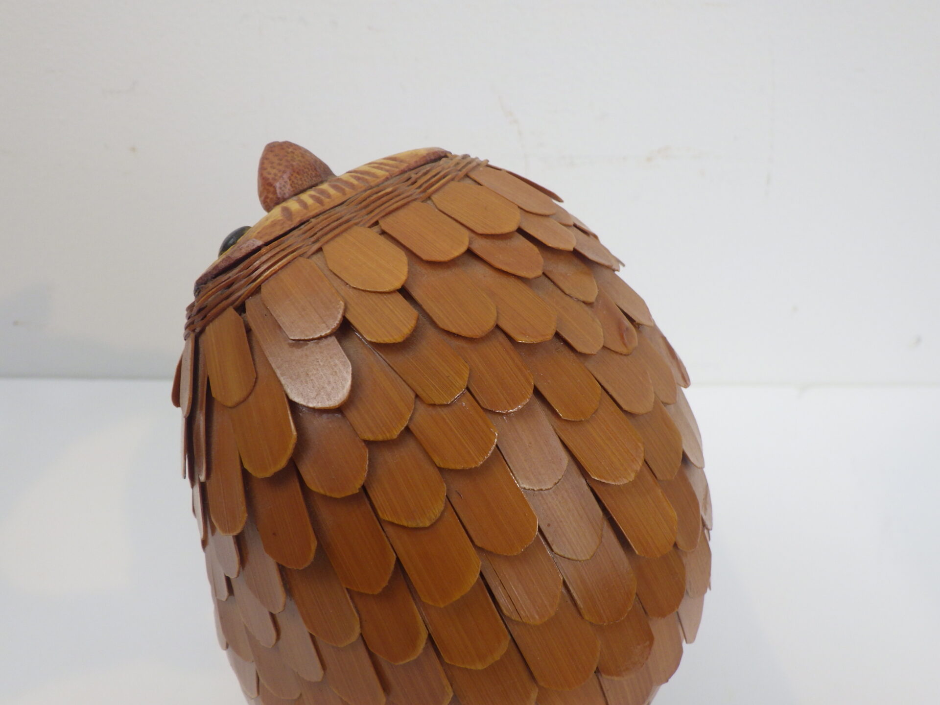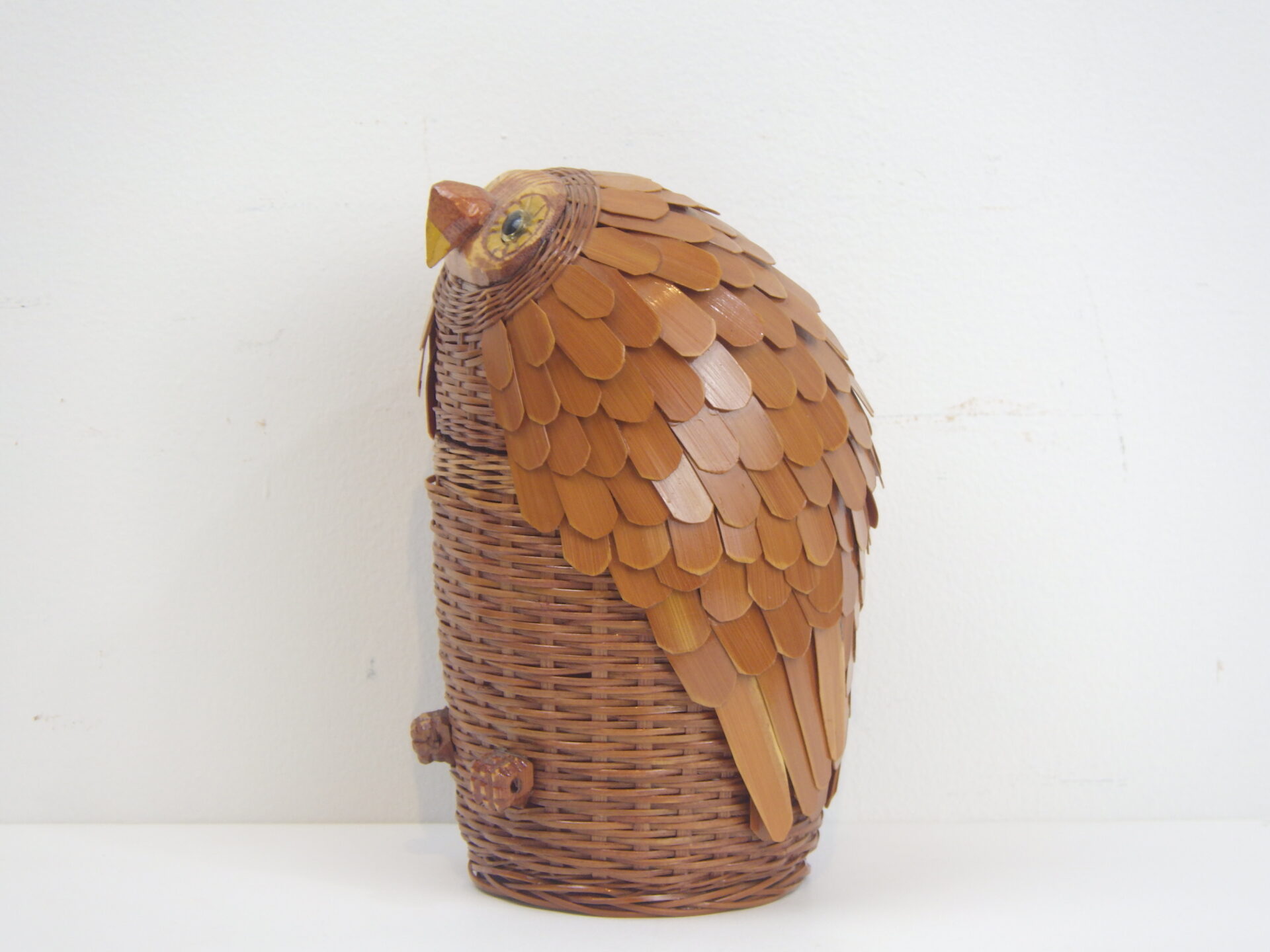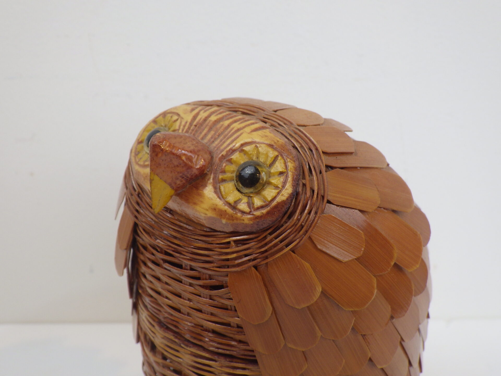 | アメリカで買い付けました。 竹のような素材で作られたフクロウのオブジェです。 かごのように細かく編まれたボディに、一枚一枚重ねて張り合わせられた翼から、丁寧な手仕事で作り上げられたことが伝わるアイテムです。 素朴な表情とちょこんとついた脚が可愛らしいですね。 |