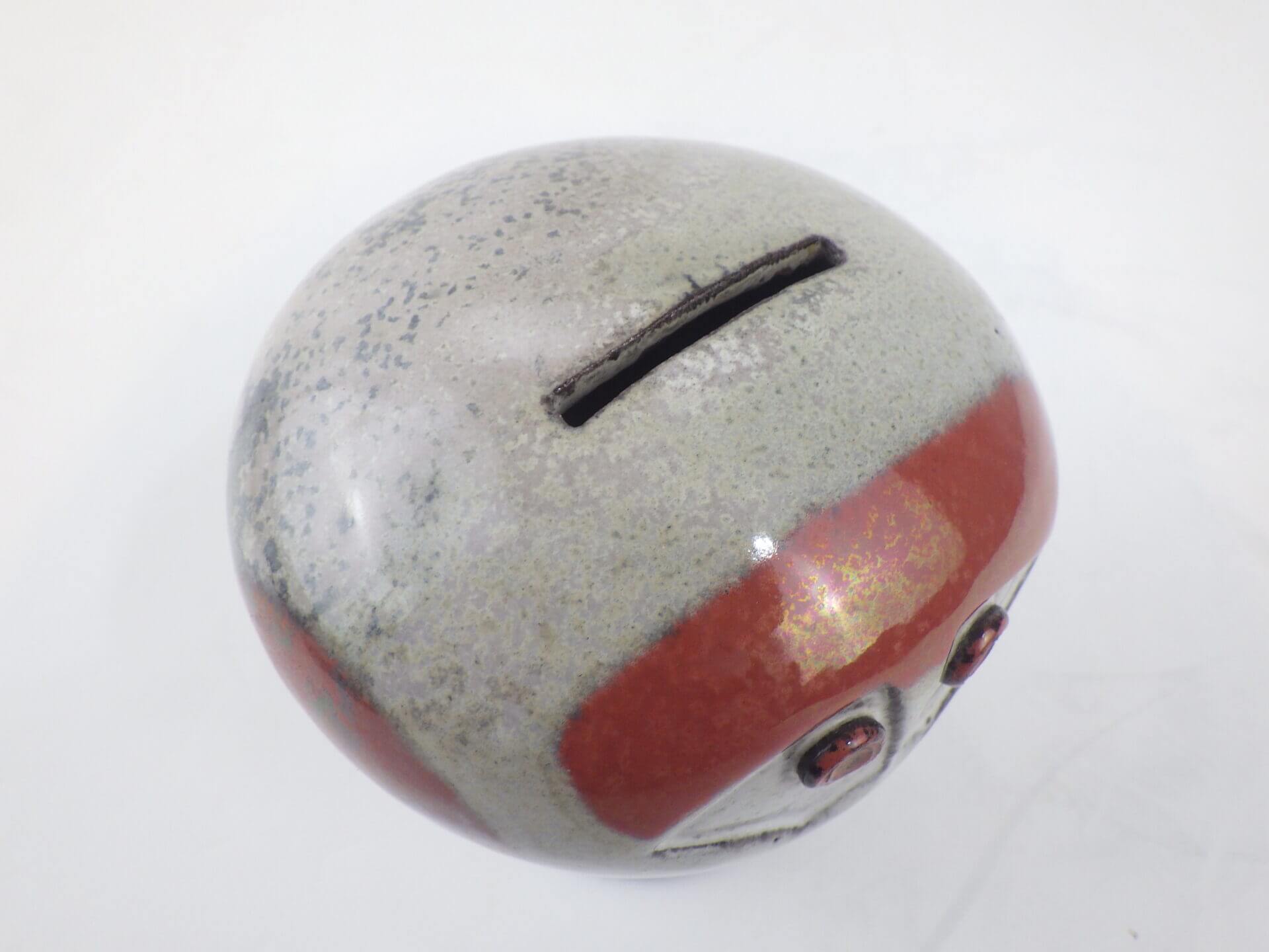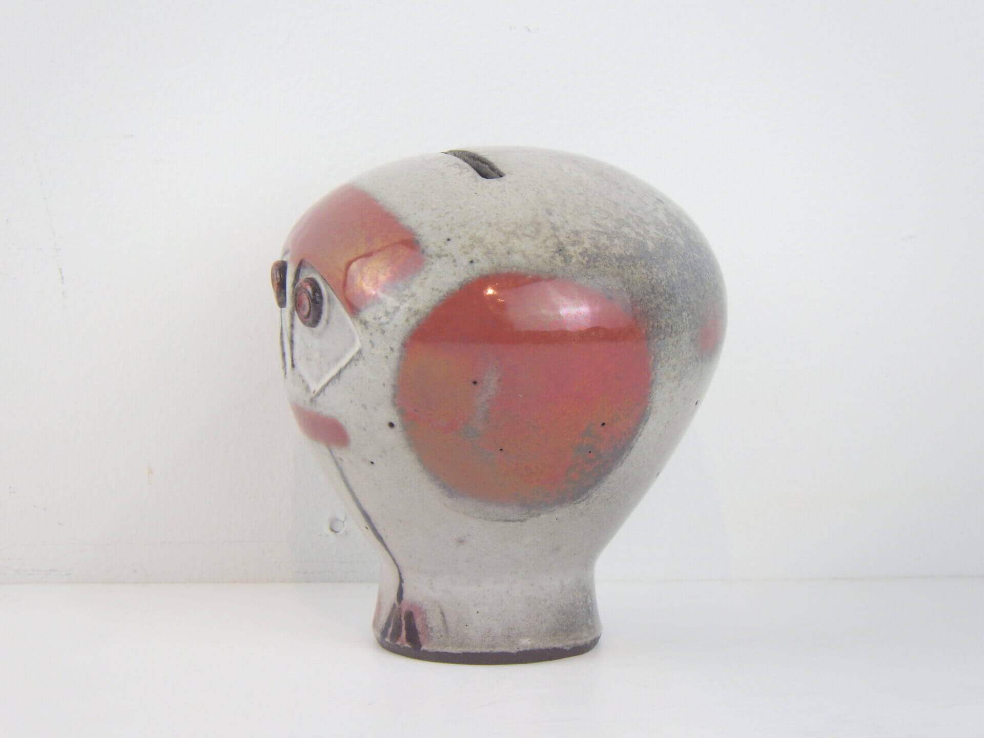 | ヨーロッパで買い付けました。 デンマーク製、陶器のフクロウの貯金箱です。 グレーとピンクの優しいコントラストが印象的なアイテムです。 頭の上からコインを入れられますが、残念ながら取り出し口がないため、最後は割って取り出すことになります。 長く可愛がりたい方はオブジェとしてお楽しみ下さい。 |