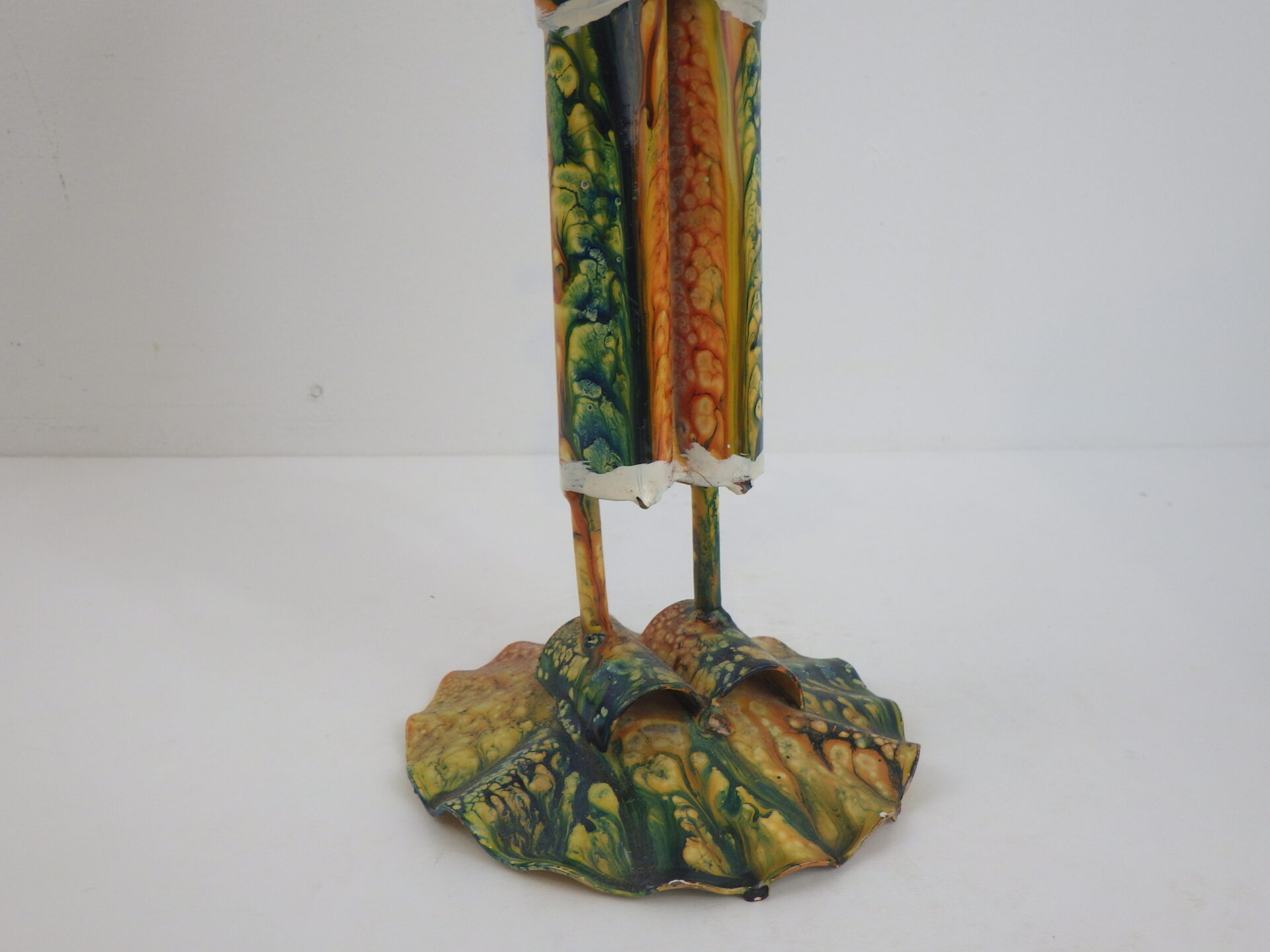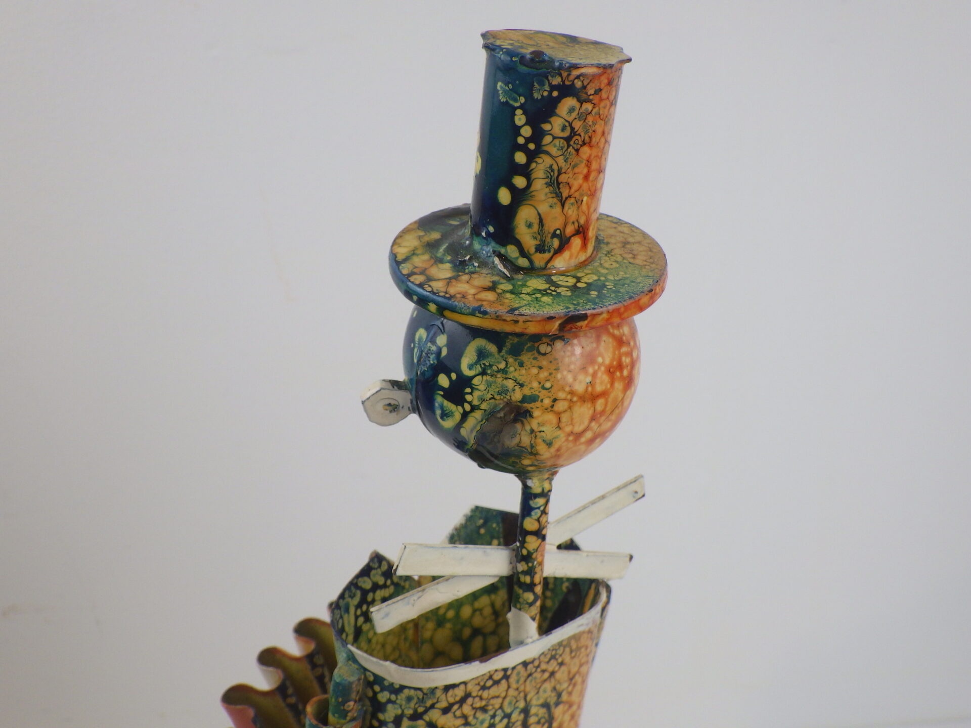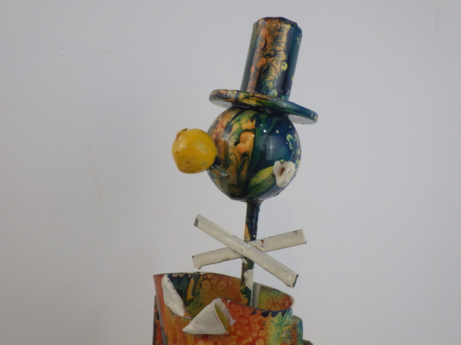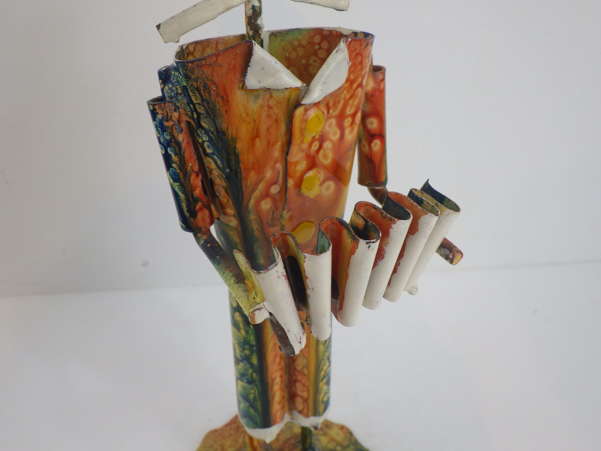 | アメリカで買い付けました。 ピエロのオブジェです。 手にしているのはアコーディオンでしょうか? カラフルなマーブリングが施されており、可愛らしい風貌と相まって良い雰囲気です。 |