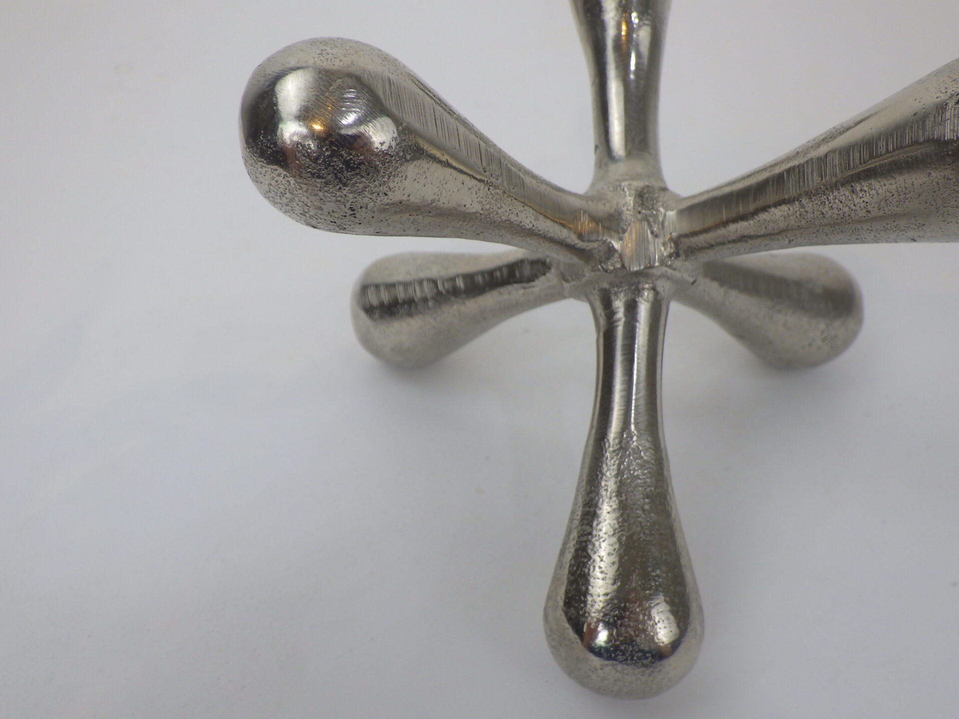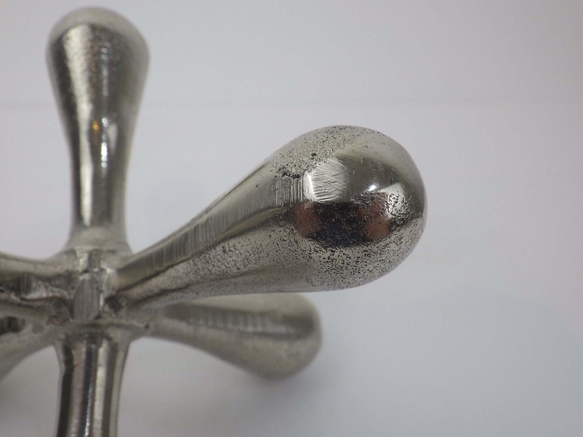 | アメリカで買い付けました。 ビンテージのブックエンドです。 有名なミッドセンチュリー期のブックエンドオブジェJacks Jaxに影響を受けたと思しき形状をしていますが、アルミならではの質感がよりスペースエイジ感を演出しているように思えます。 ブックエンド、ペーパーウェイト、オブジェなど、必要に応じて置き場所を変えながらお楽しみいただけそうです。 |