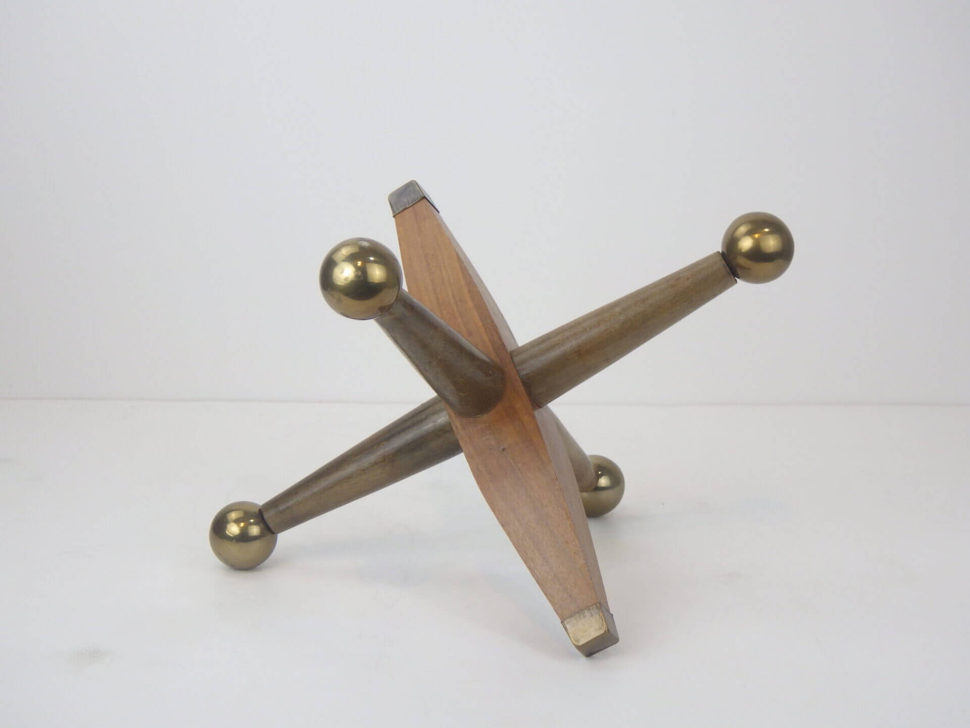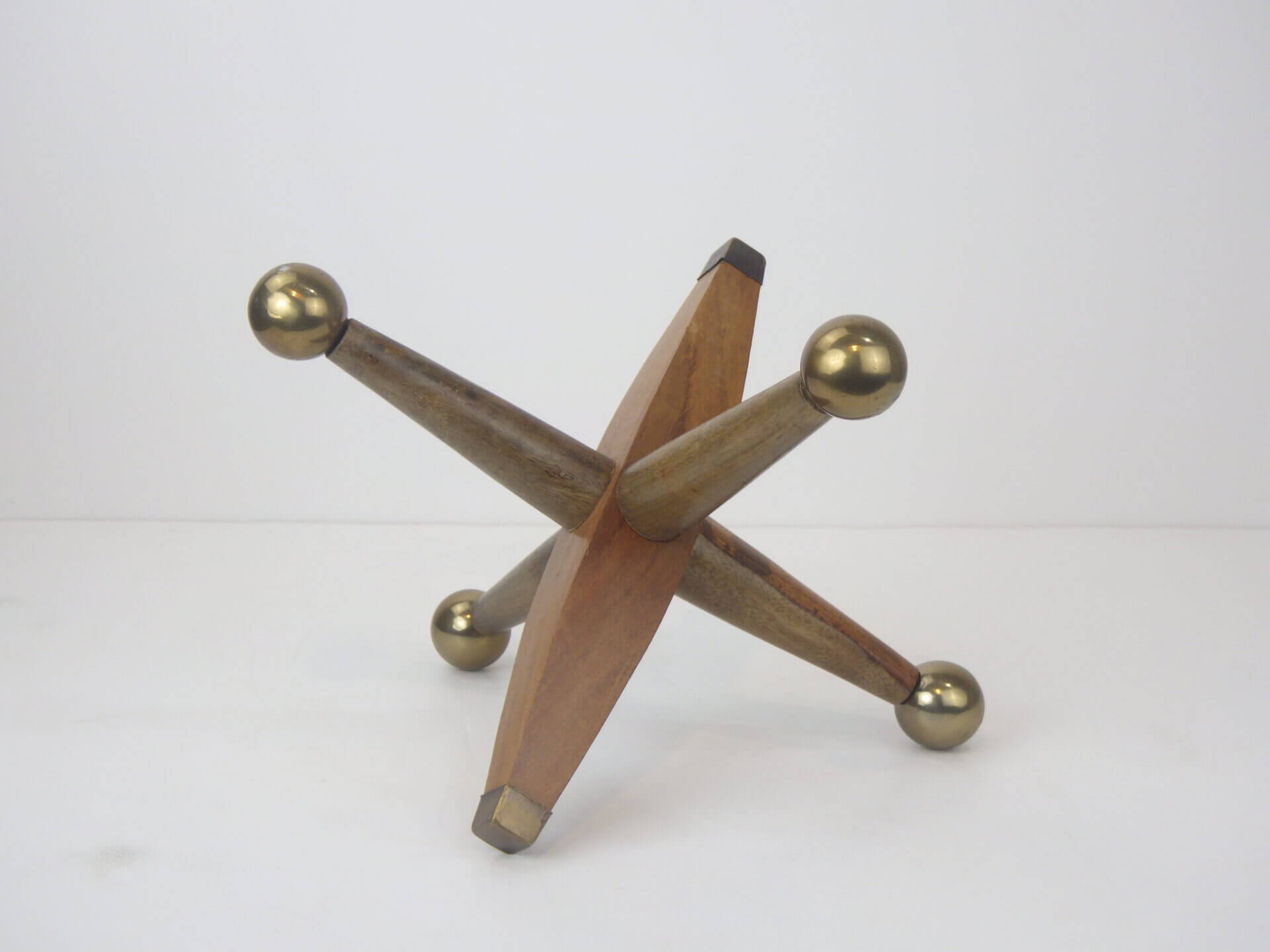 | アメリカで買い付けました。 木製のスカルプチャーです。 Jacks Jaxに着想を得て作られたと思われるディテールですが、重さがそこまでないため、ブックエンドのような使い方は出来ません。 アメリカンミッドセンチュリーだけでなく、北欧モダンスタイルなどとも相性は良さそうですので、オブジェとして空間のアクセントに取り入れてみてはいかがでしょうか? |