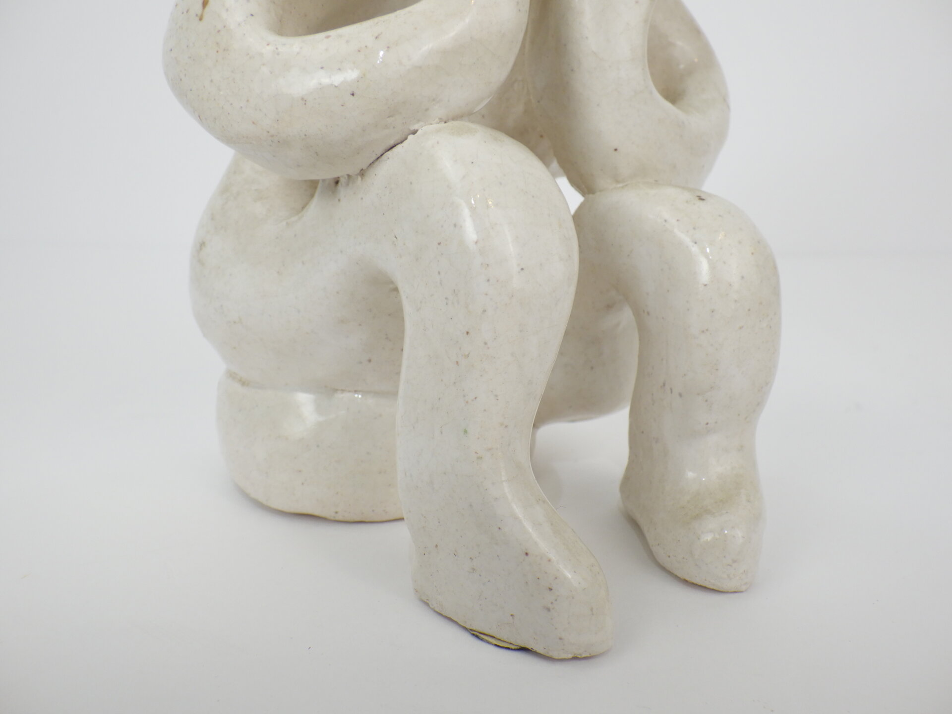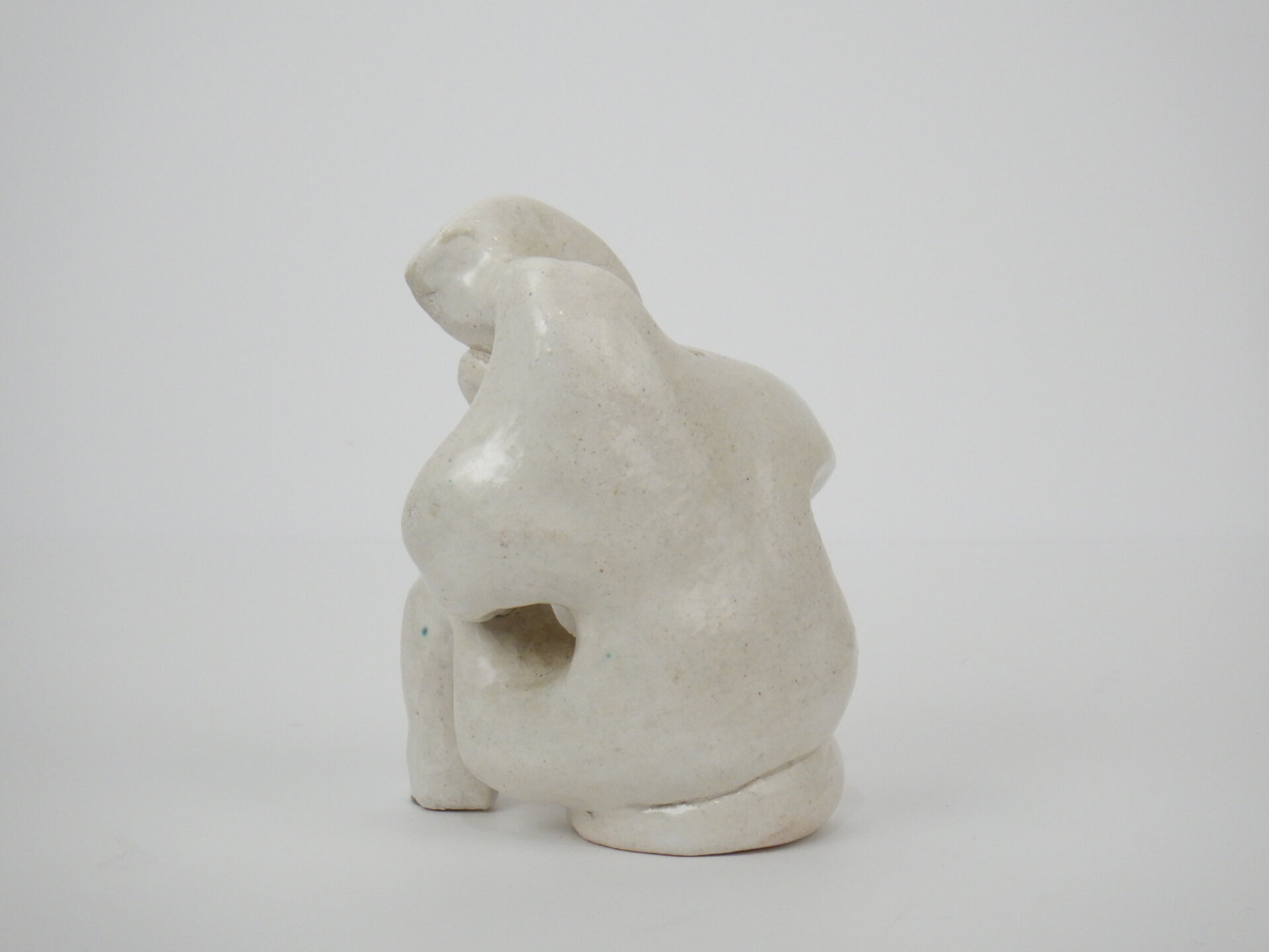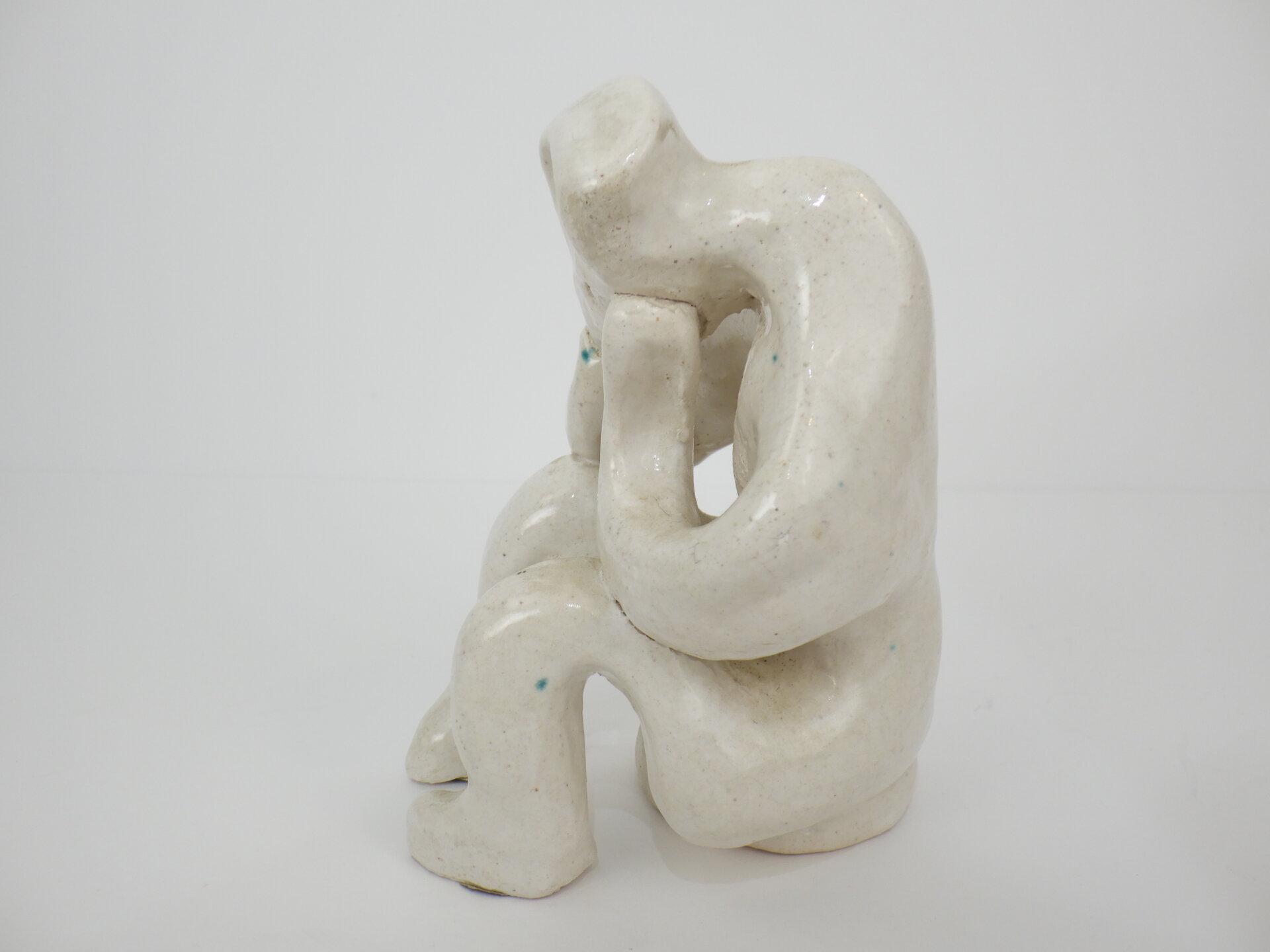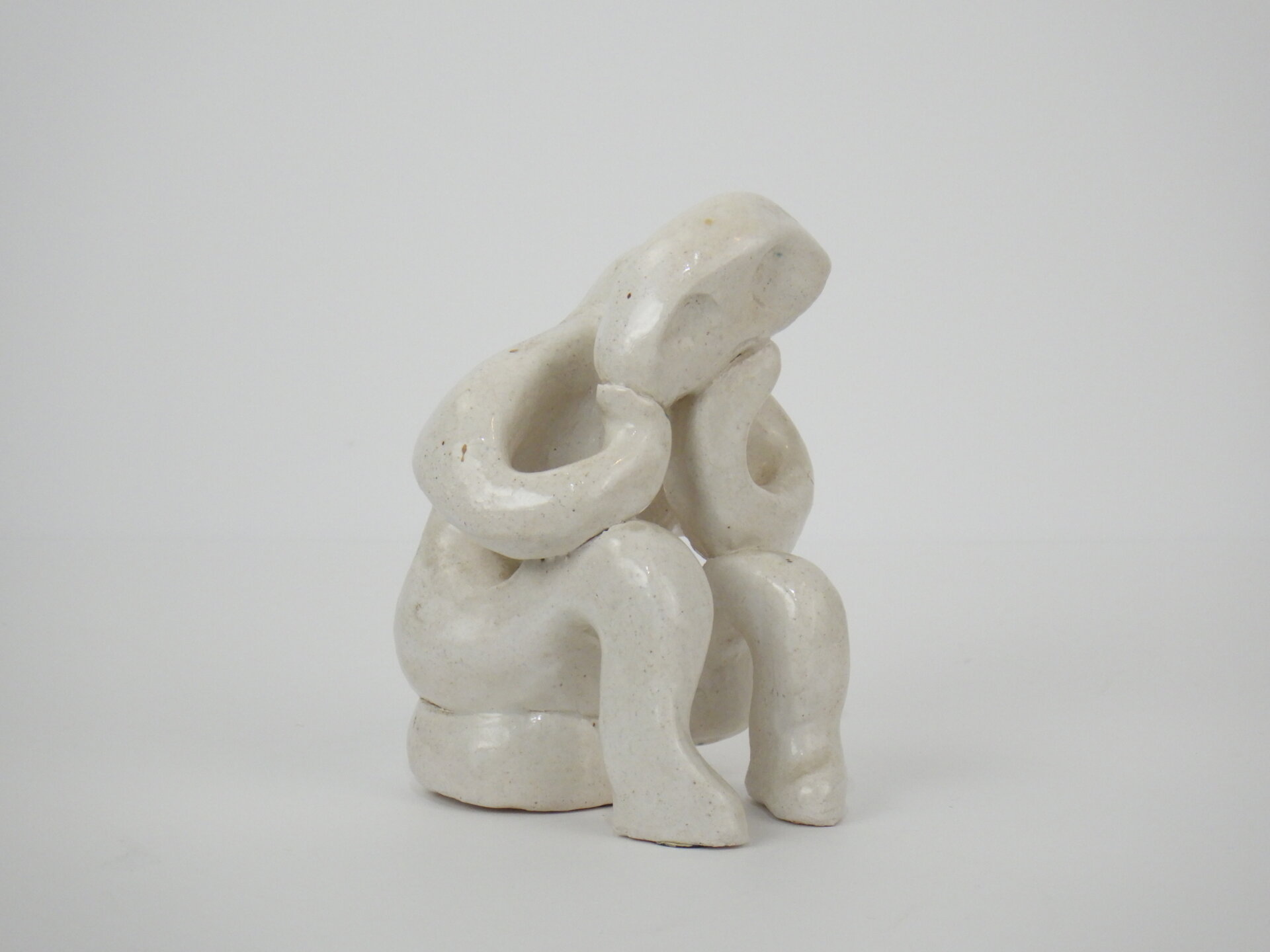 | アメリカで買い付けました。 白い陶器のオブジェです。 考え事をしていたり、悩んでいたり、ほっと一息ついていたり・・・、見る人の心情に寄り添ってくれそうな佇まいですね。 お部屋のちょっとしたスペースにどうぞ。 |