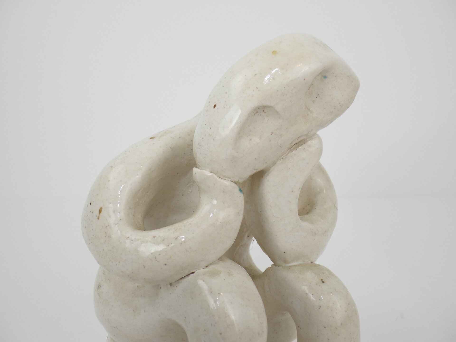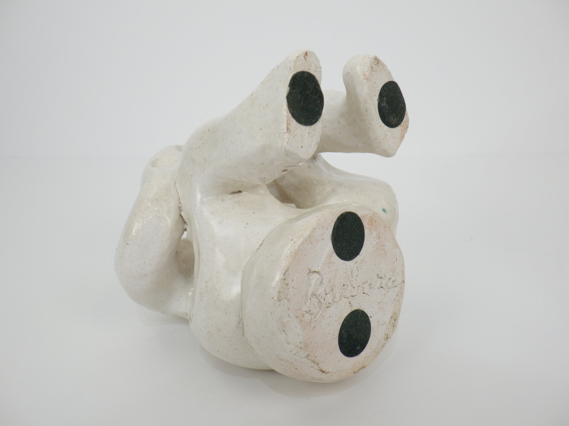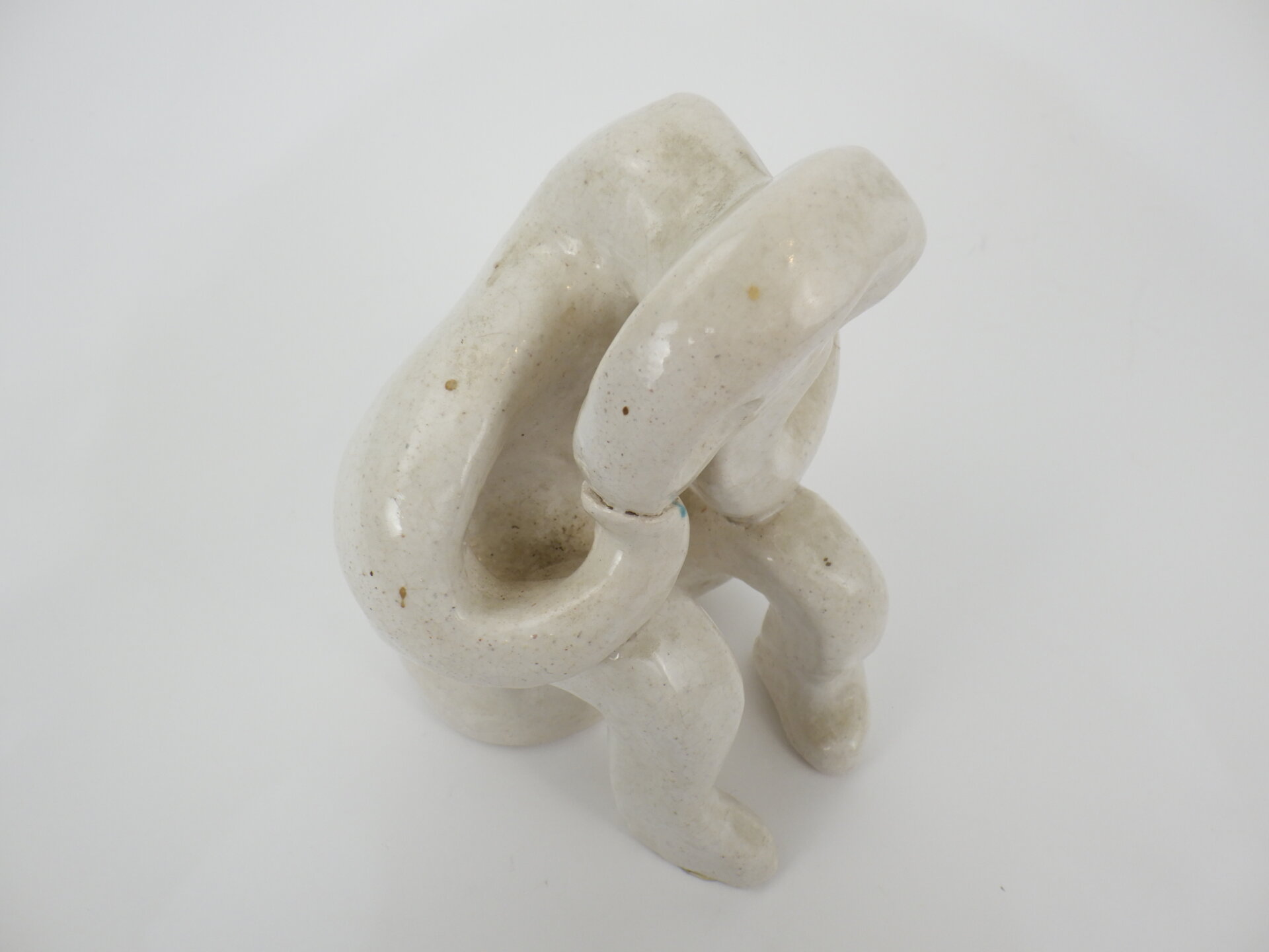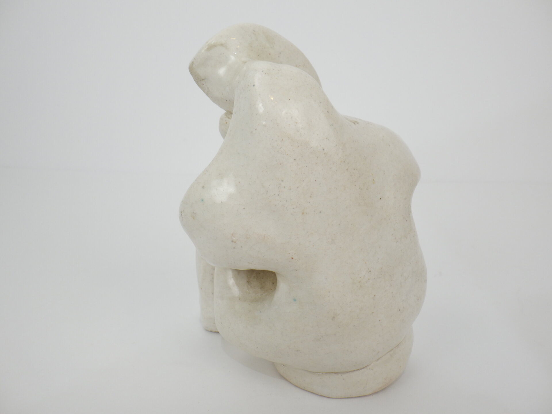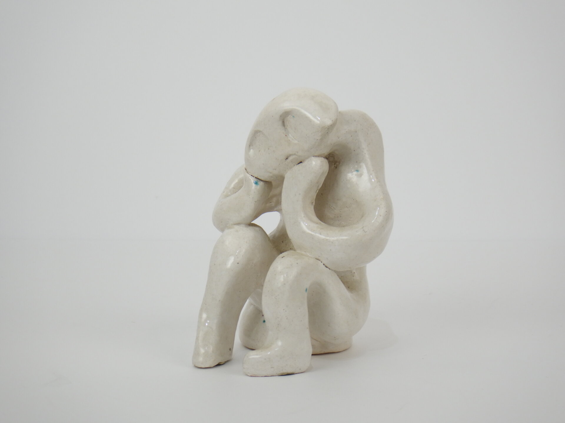 | アメリカで買い付けました。 白い陶器のオブジェです。 考え事をしていたり、悩んでいたり、ほっと一息ついていたり・・・、見る人の心情に寄り添ってくれそうな佇まいですね。 お部屋のちょっとしたスペースにどうぞ。 |