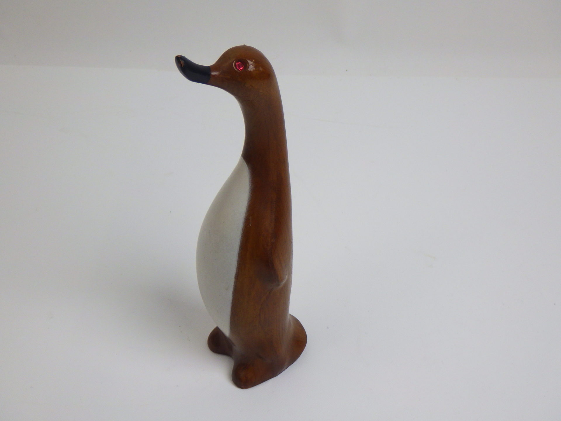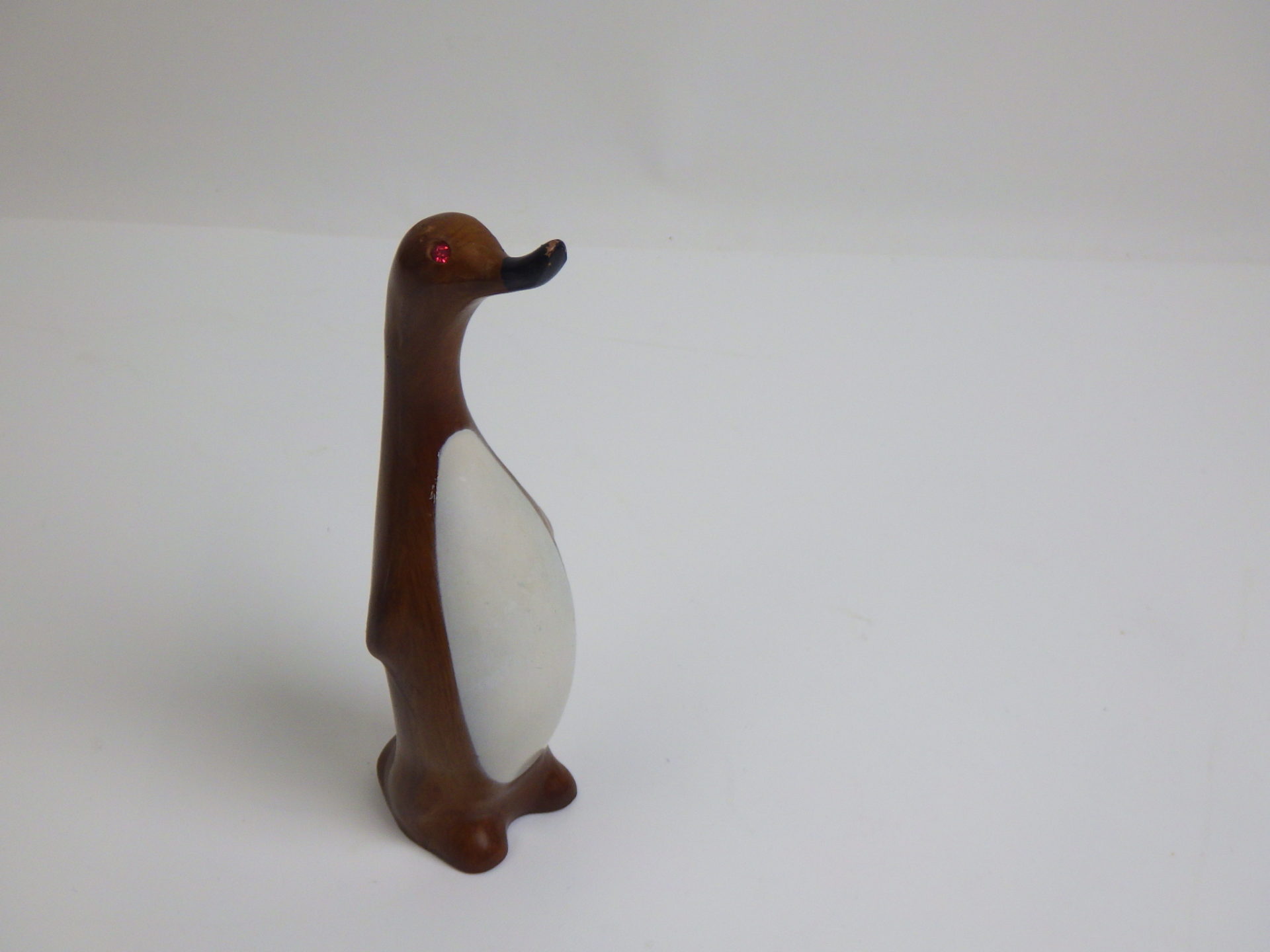 | 佇まいがとても可愛いペンギンの置物です。 一見、木のように見えますが、プラスチック製になります。 ピンクに輝く愛くるしい目が良いですね。 |