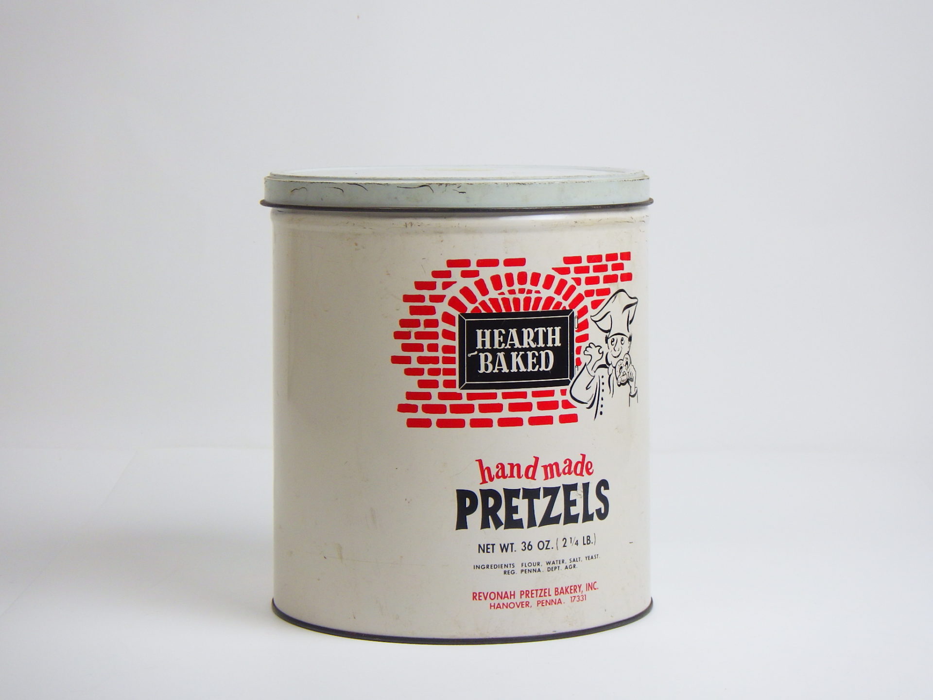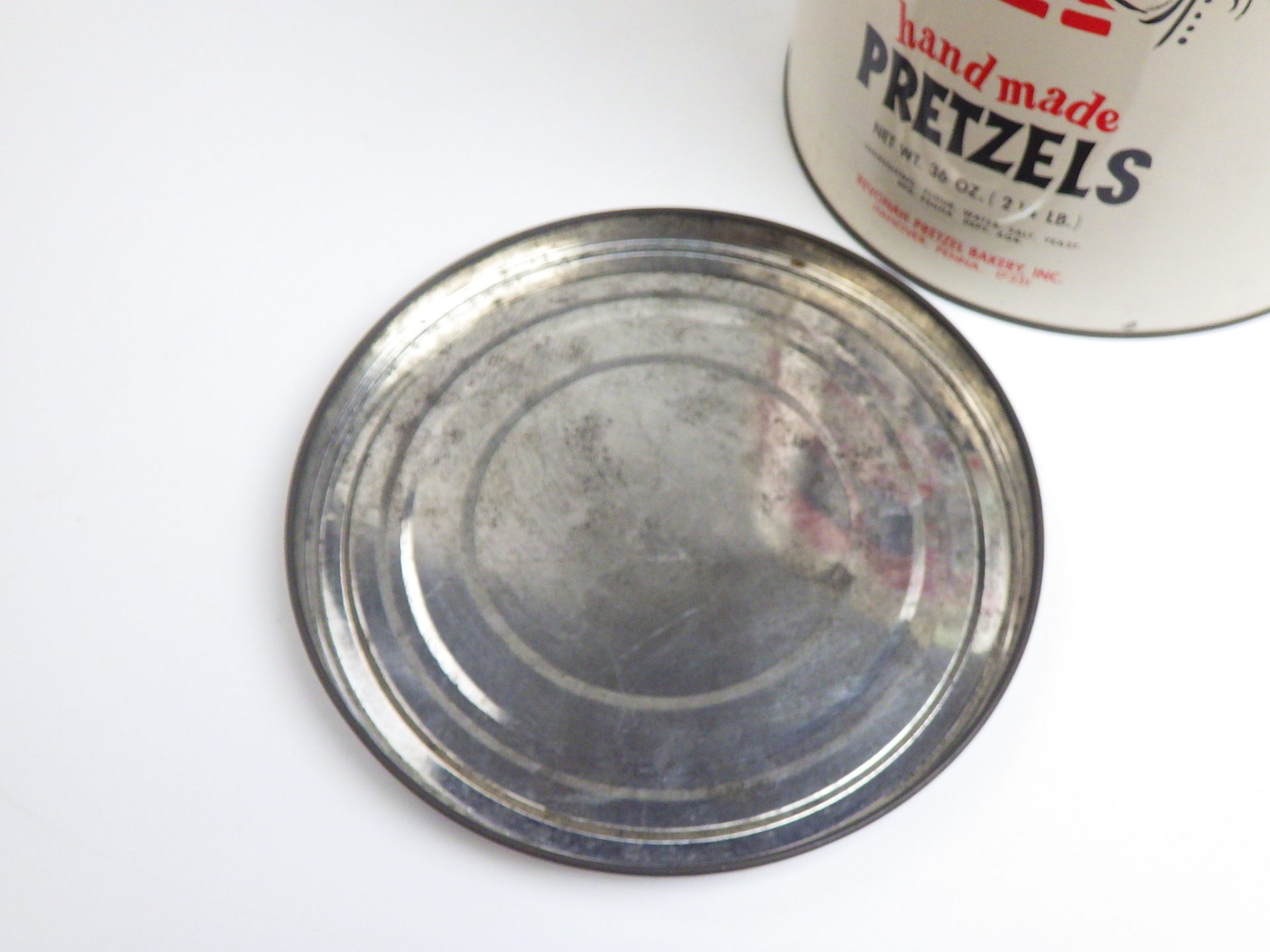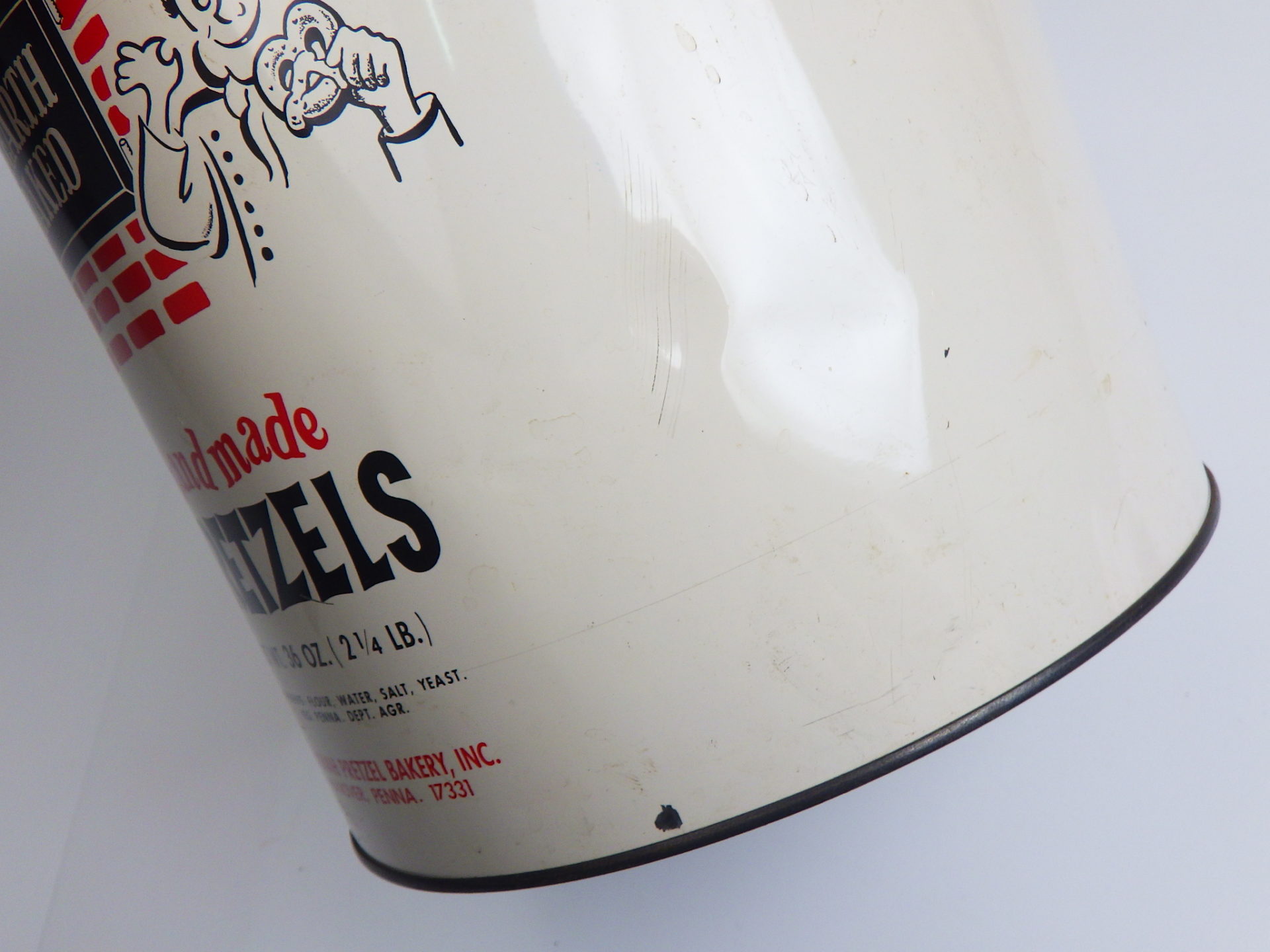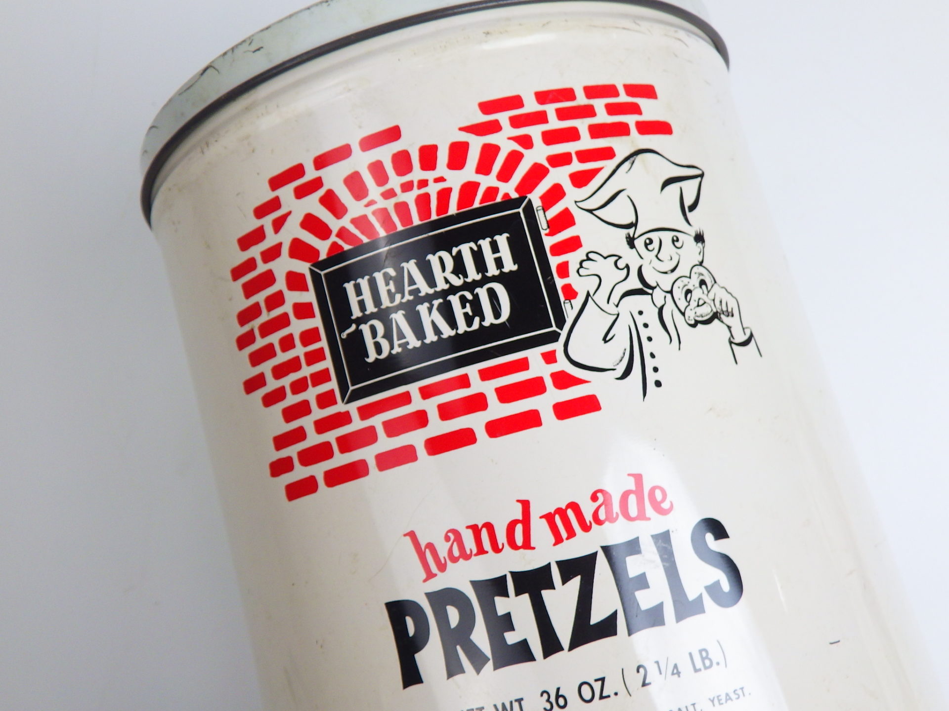 | ビンテージのプレッツェル缶です。 プリントが可愛らしく、見せる収納としてもお使いいただけます。 |