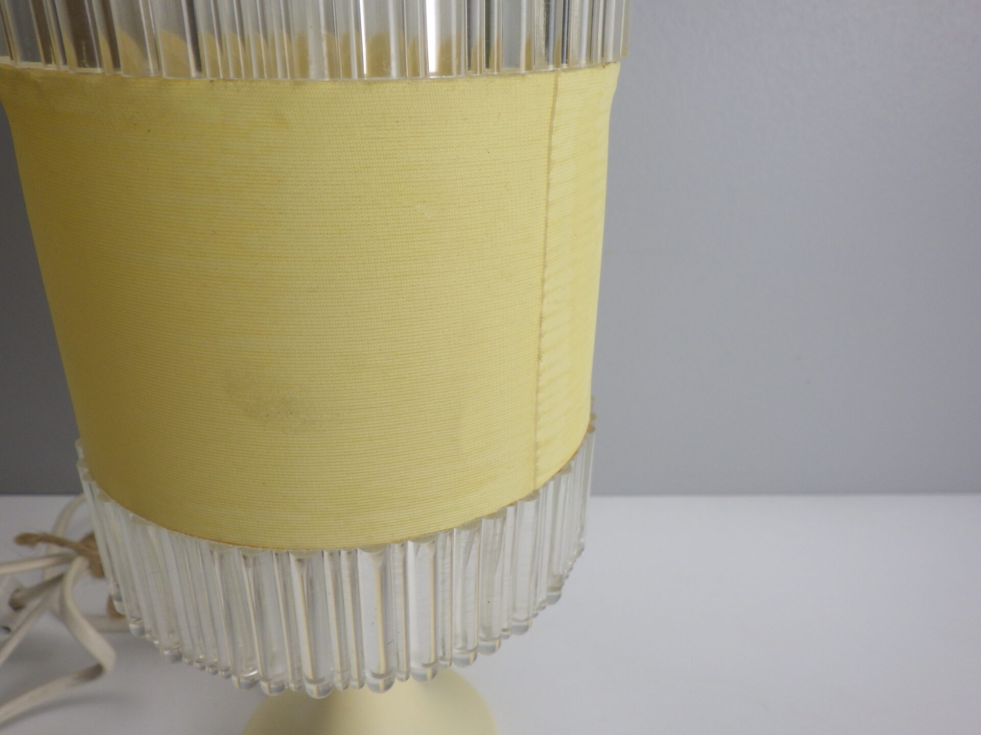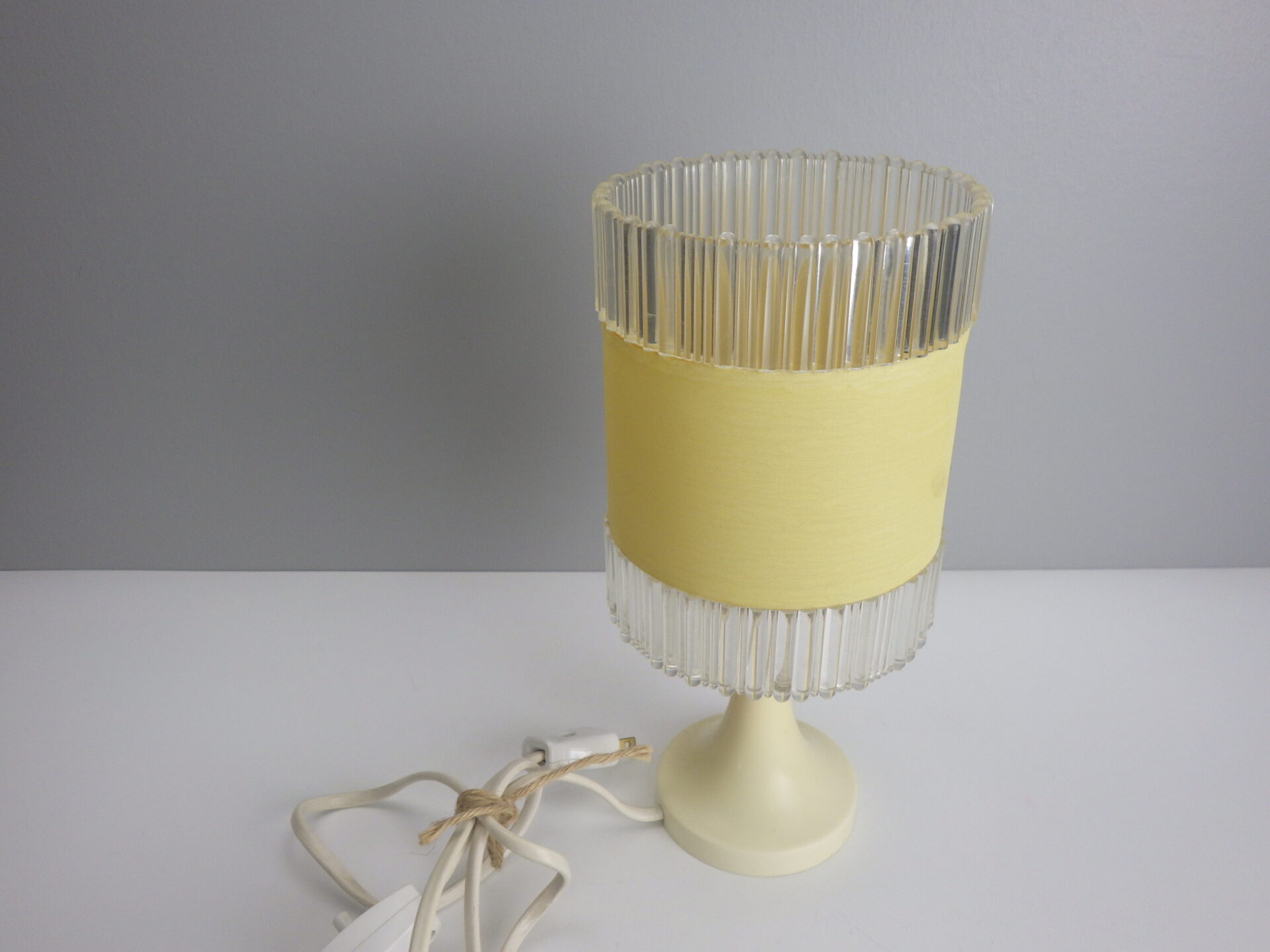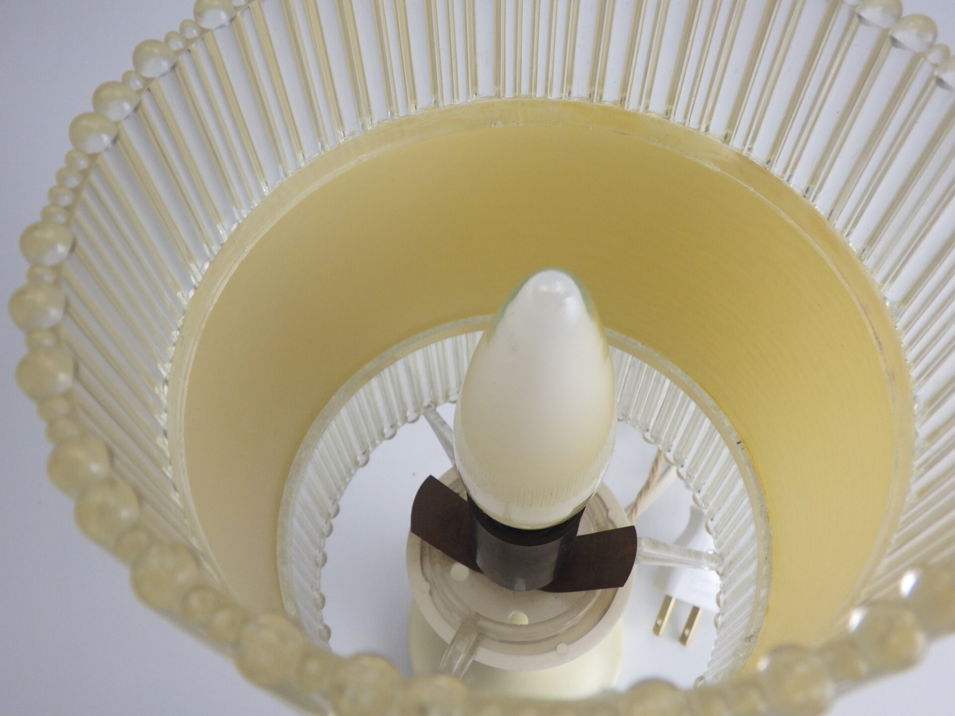 | ヨーロッパ」で買い付けました。 上下のスケルトン部分と中央のファブリック部分とで灯りの洩れ方がわずかに異なり、全体的には優しいオレンジ色に光り、ビンテージらしい良い雰囲気です。 落ち着いたトーンなので、木製のチェストやテーブル、寝室のサイドテーブルなど、どこにでも合わせやすいですね。 (電球の口金サイズ:E14) |