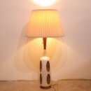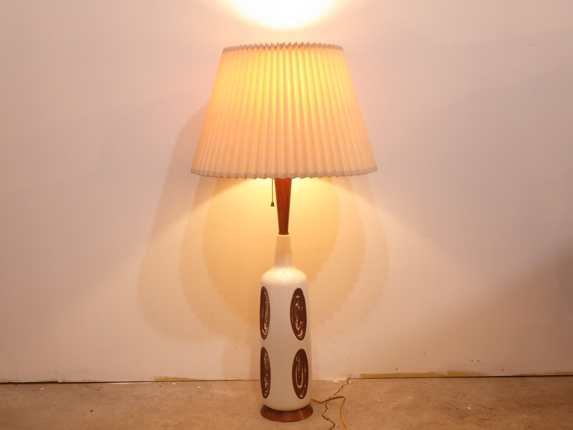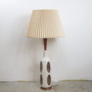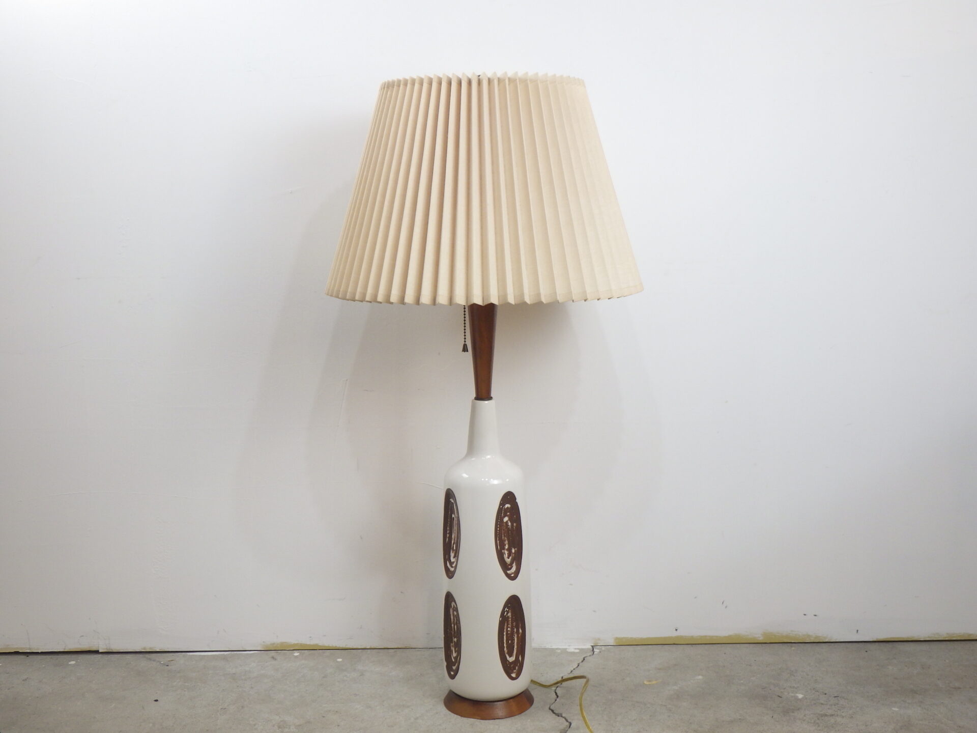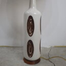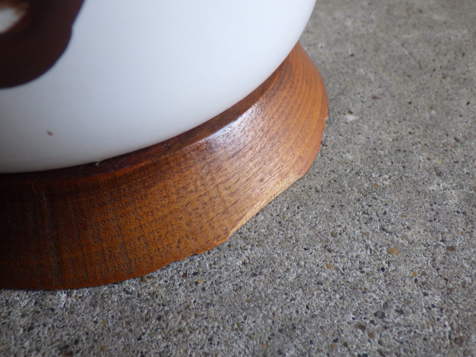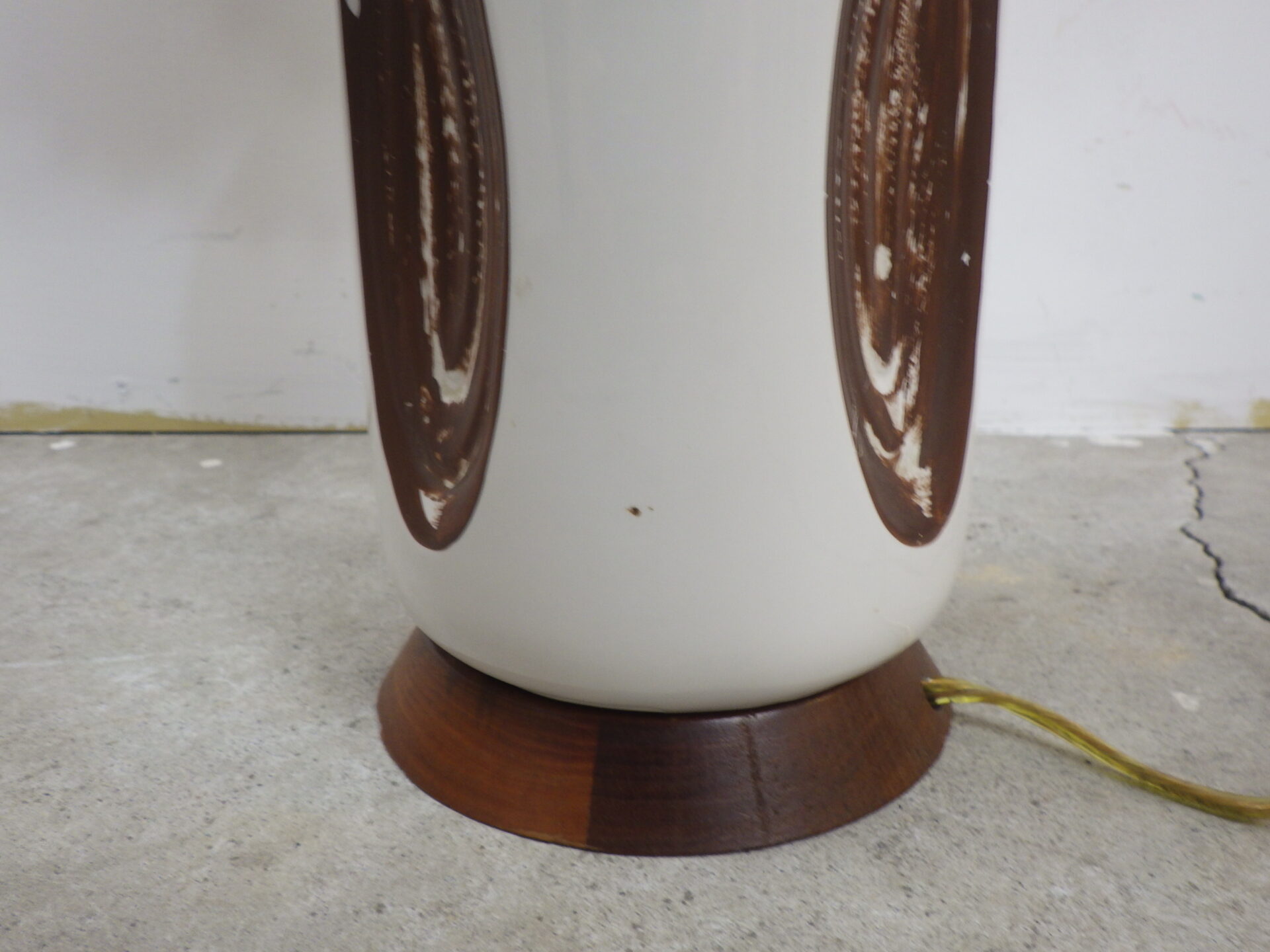 | アメリカで買い付けました。 ベースは陶器と木で出来ています。 ホワイト地にハンドペイントで描かれたぐるぐる渦巻きのようなブラウンの模様が大変印象的なポタリーベースのテーブルランプ。 高さがあるのでフロアランプの様に床に置いても良さそうです。 間接照明としての役割だけでなく、インテリアとしての存在感を如何なく発揮してくれるアイテムですね。 ソケット部分のスイッチでON/OFFが切り替えられます。 (電球の口金サイズ:E26 LED対応) |