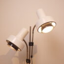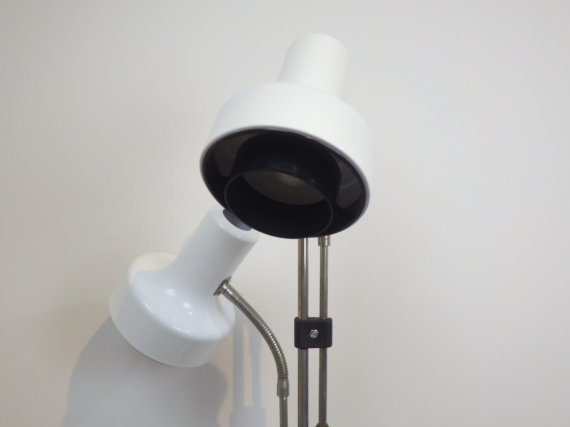 | ヨーロッパで買い付けました。 ビンテージのフロアランプです。 細身の支柱にホワイトのシェードが二灯ついており、スマートなシルエットですが明るさのボリュームはしっかりとあります。 シェードの付け根部分のみグーズネックになっており、角度が調節可能です。 また、それぞれ高さや向きも変えられるので、空間によって様々な使い方が出来そう。 一灯ずつスイッチでON/OFFの切り替えが出来ます。 インテリアのアクセントにいかがですか? |