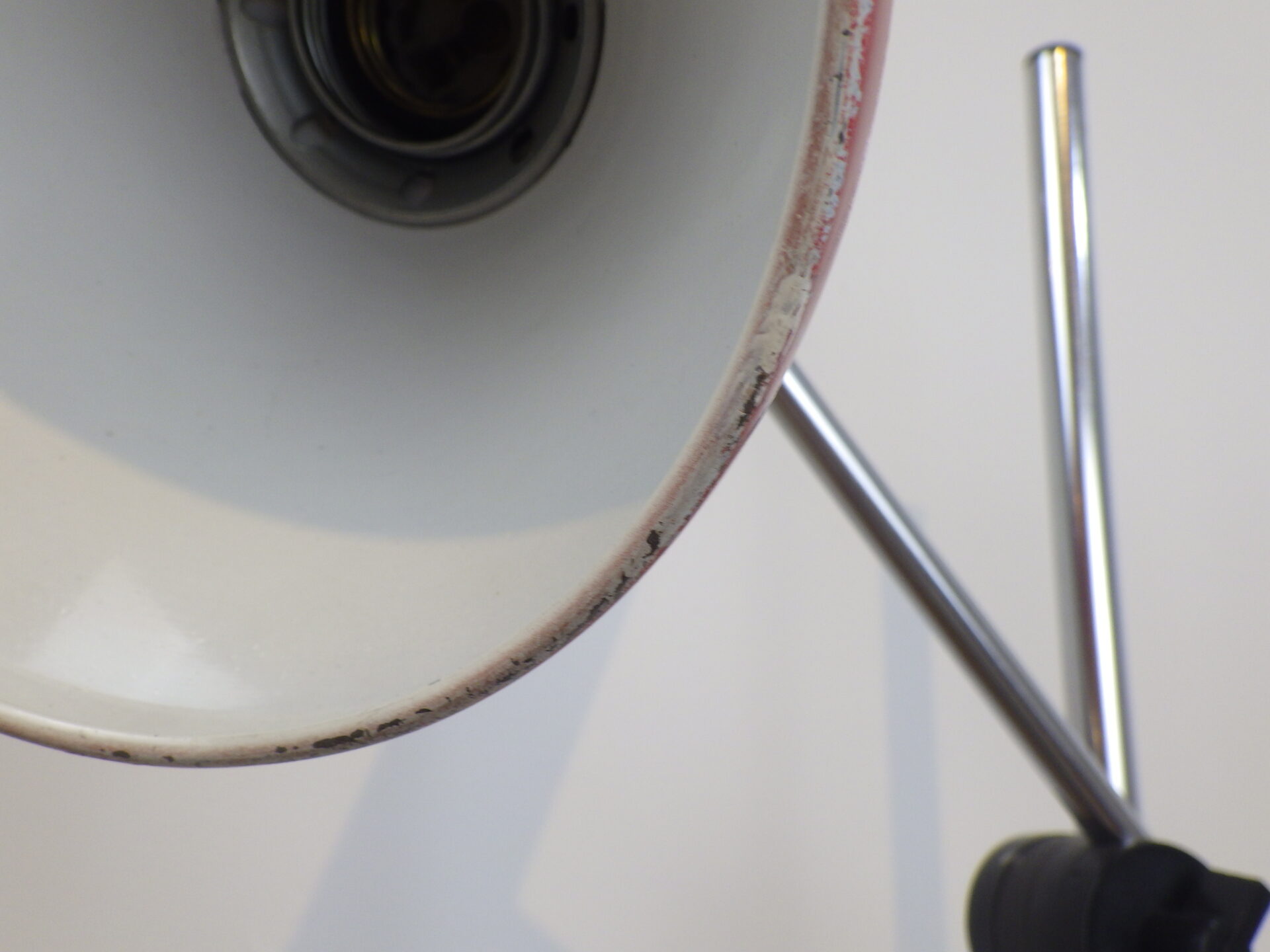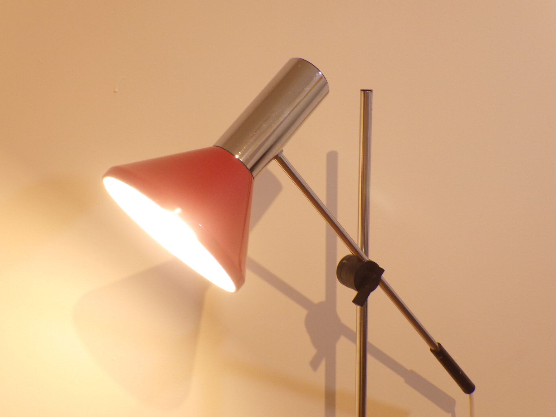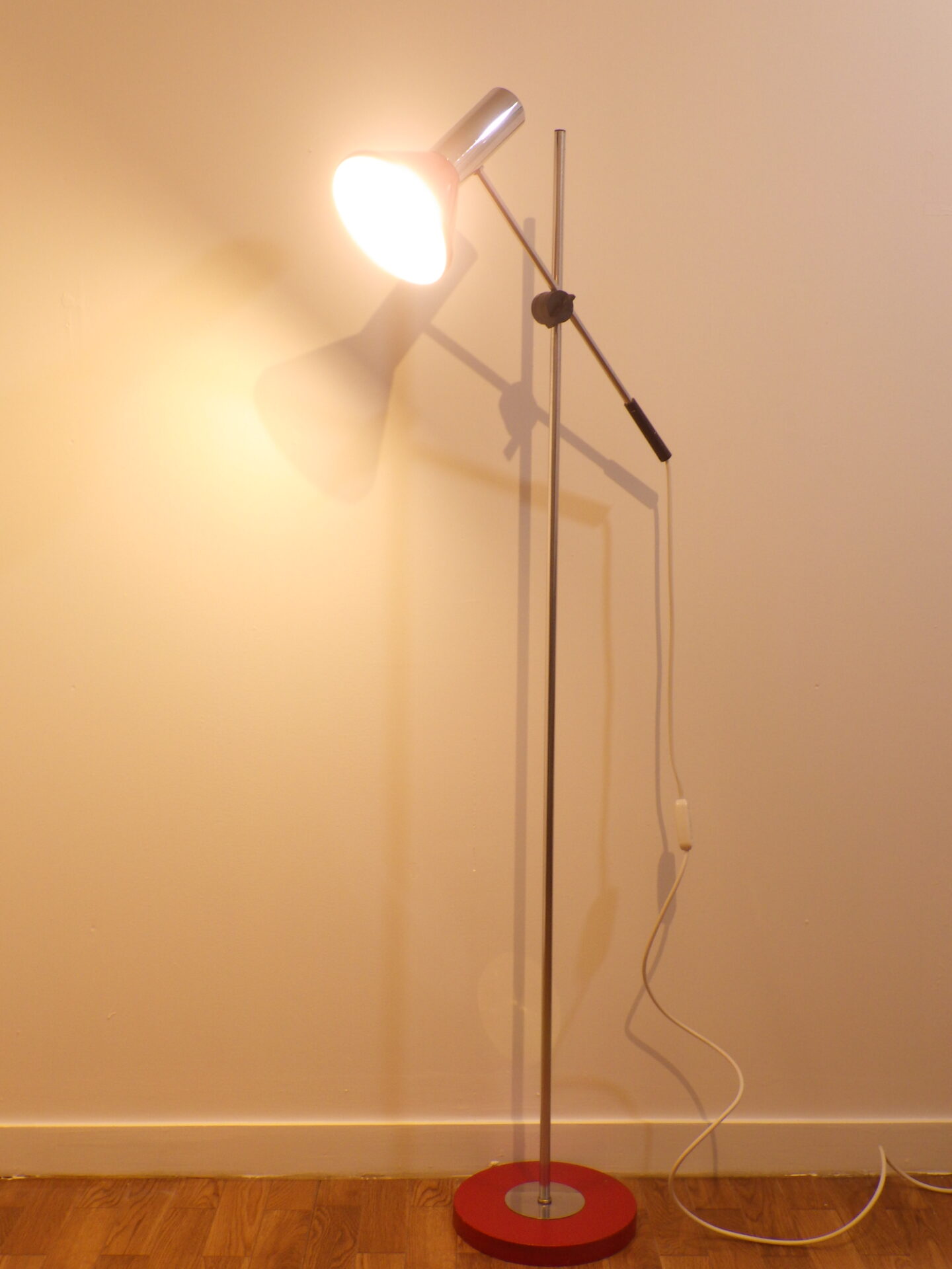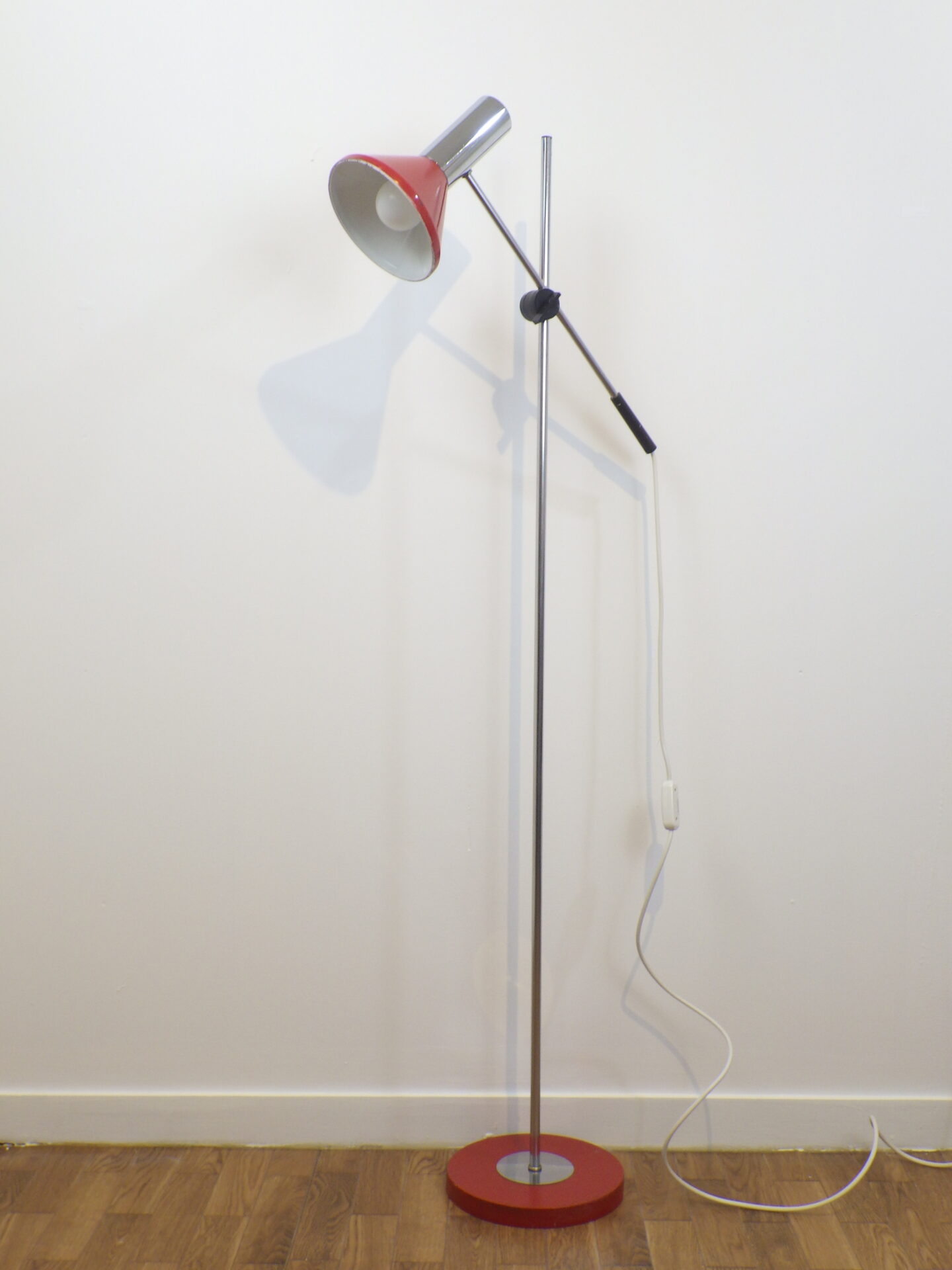 | 赤い琺瑯シェードと土台が可愛いビンテージのフロアランプです。 細身の支柱に小ぶりなシェードがついており、非常にスマートなシルエットをしており圧迫感を感じさせません。 土台部分は重たいメタル製なので、安定感は抜群。 また、ビンテージのレッドは様々なカラーと馴染みやすいので、お部屋のアクセントにもおすすめ。 高さ、角度、方向も場面に合わせて自由に変えることが出来ます。 コードについているスイッチでON/OFFの切り替えが出来ます。 インテリアのアクセントにいかがですか? |