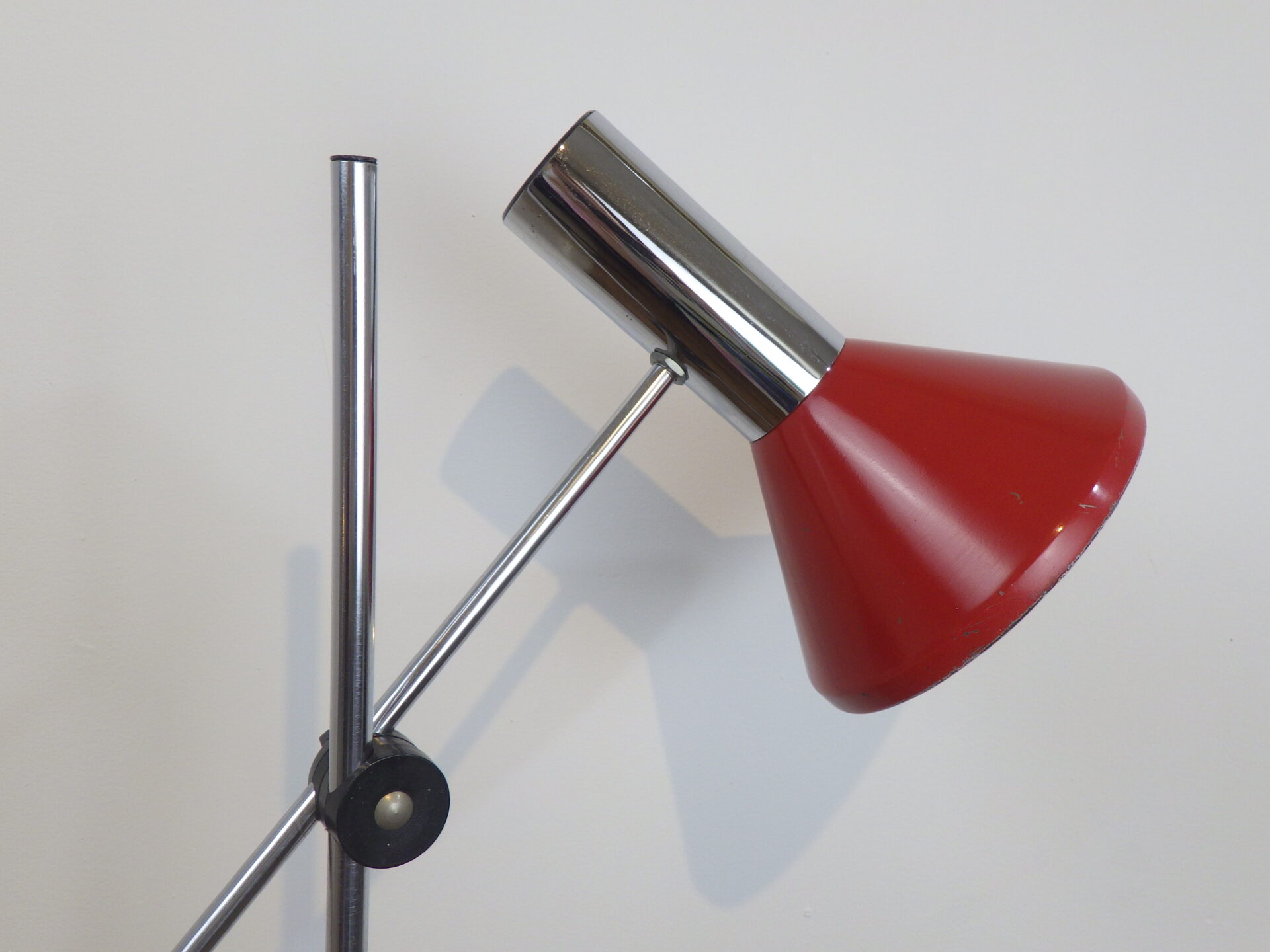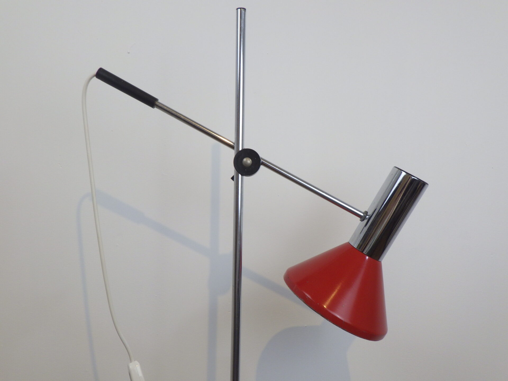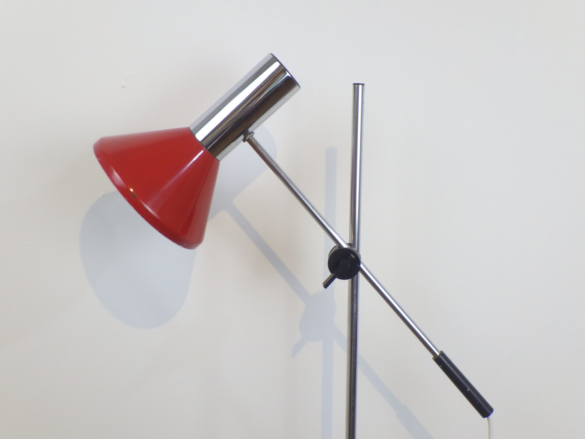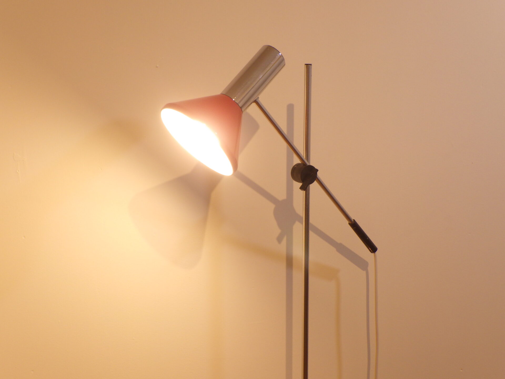 | 赤い琺瑯シェードと土台が可愛いビンテージのフロアランプです。 細身の支柱に小ぶりなシェードがついており、非常にスマートなシルエットをしており圧迫感を感じさせません。 土台部分は重たいメタル製なので、安定感は抜群。 また、ビンテージのレッドは様々なカラーと馴染みやすいので、お部屋のアクセントにもおすすめ。 高さ、角度、方向も場面に合わせて自由に変えることが出来ます。 コードについているスイッチでON/OFFの切り替えが出来ます。 インテリアのアクセントにいかがですか? |