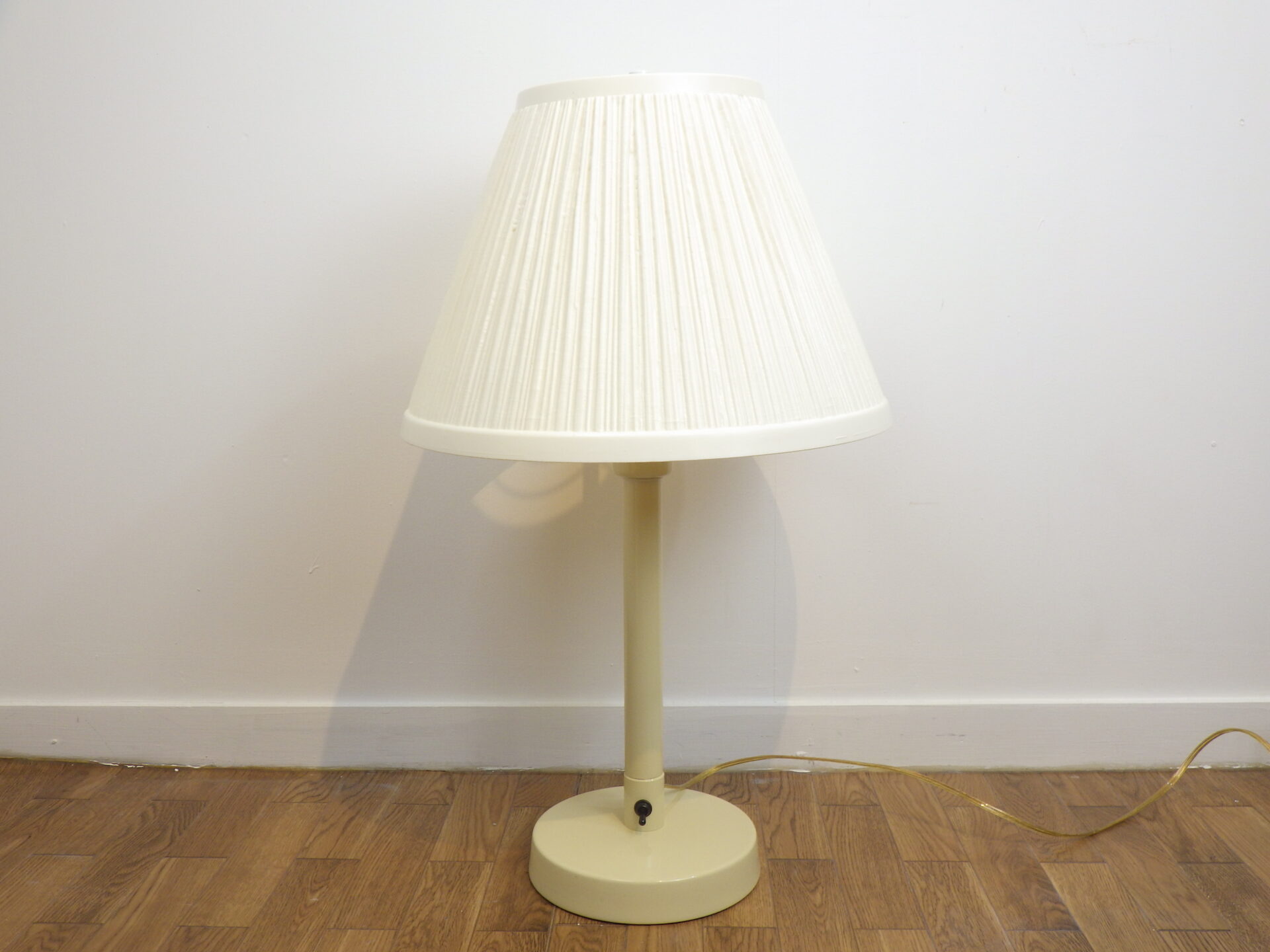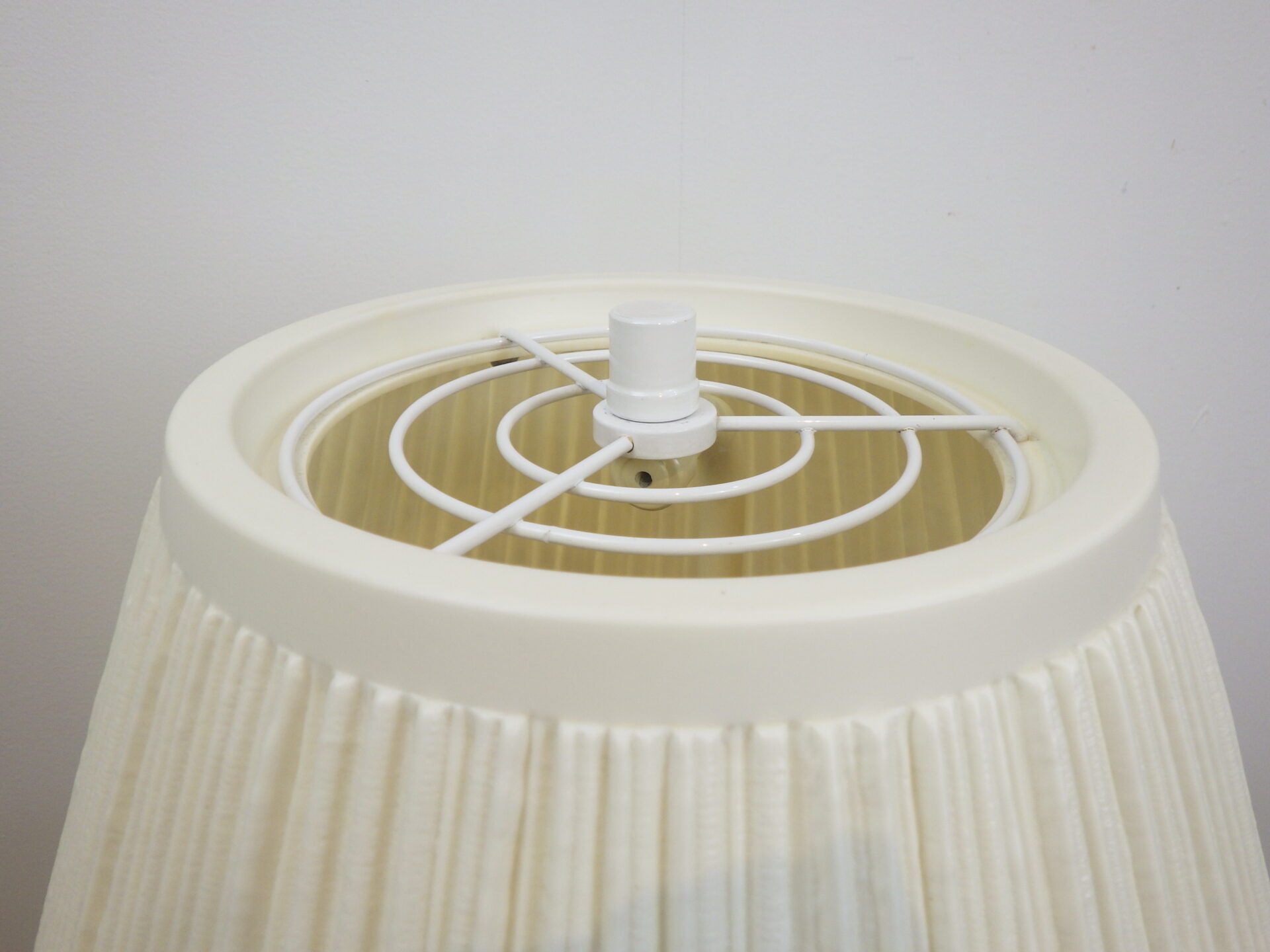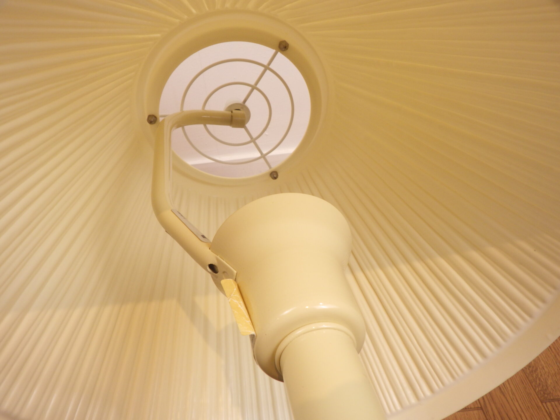 | アメリカで買い付けました。 ビンテージのテーブルランプです。 オフホワイトに塗装されたスチールベースと、プリーツデザインのプラスチック製のシェードの組み合わせ。 ベッドサイドやリビング、玄関など、様々な場所にマッチするデザインです。 支柱下部のスイッチでON/OFFが切り替えられます。 (電球の口金サイズ:E26 LED対応) |