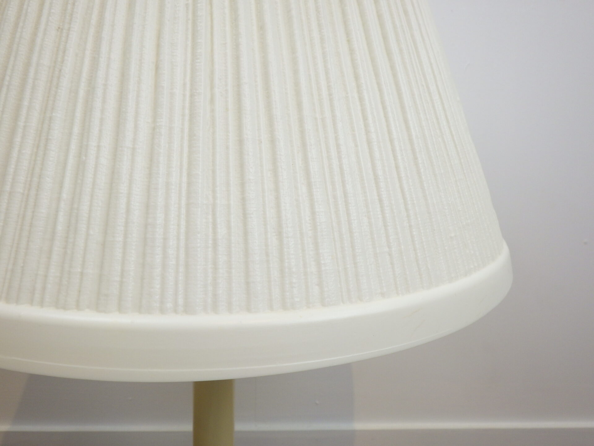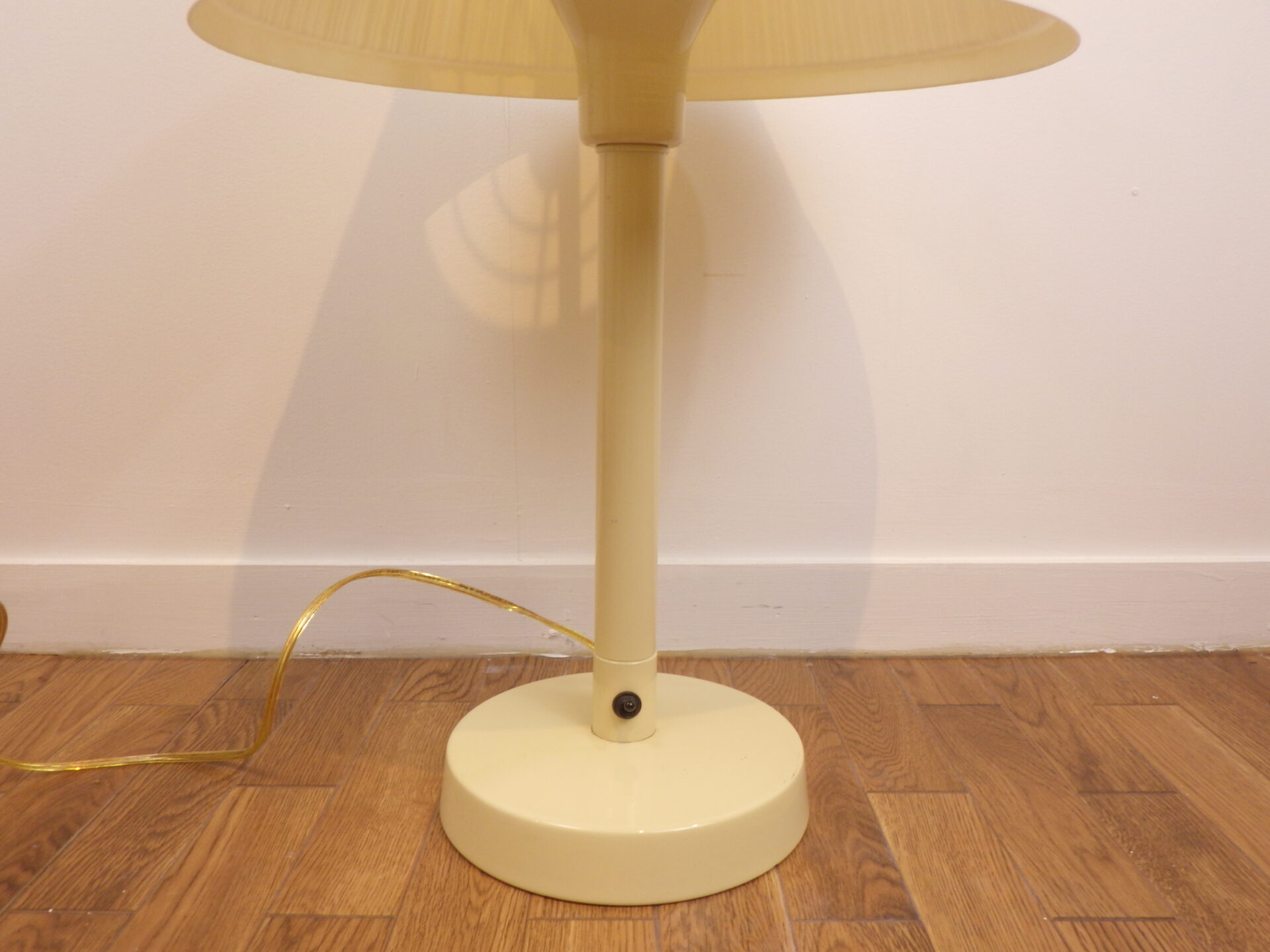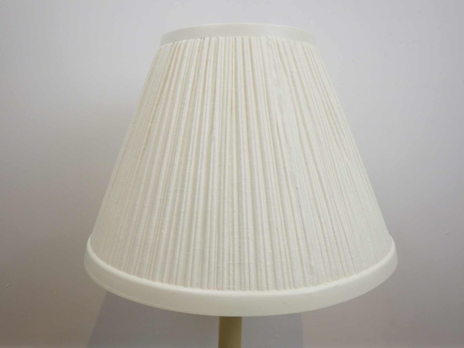 | アメリカで買い付けました。 ビンテージのテーブルランプです。 オフホワイトに塗装されたスチールベースと、プリーツデザインのプラスチック製のシェードの組み合わせ。 ベッドサイドやリビング、玄関など、様々な場所にマッチするデザインです。 支柱下部のスイッチでON/OFFが切り替えられます。 (電球の口金サイズ:E26 LED対応) |