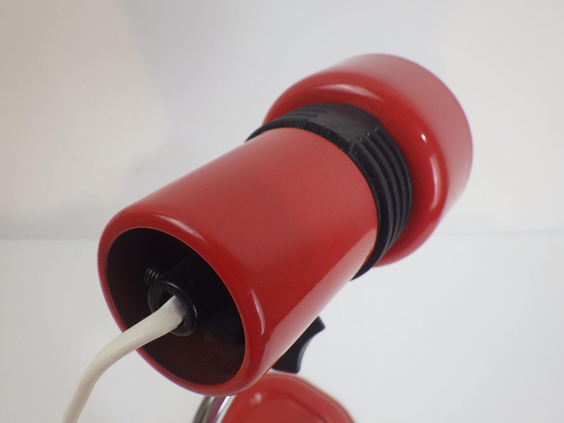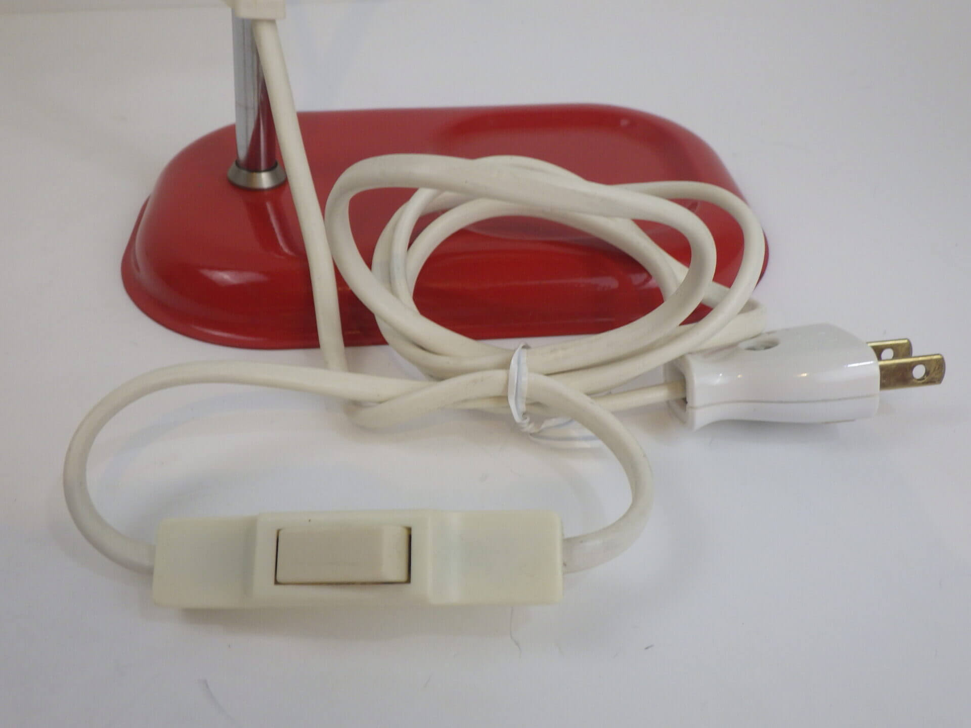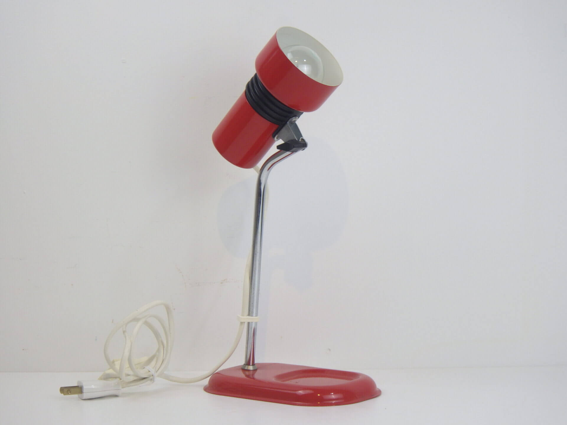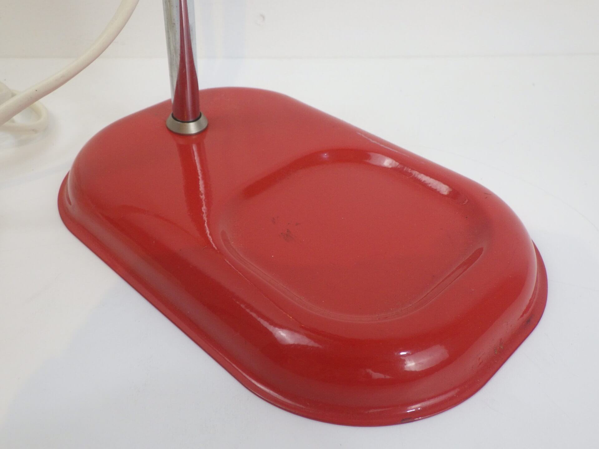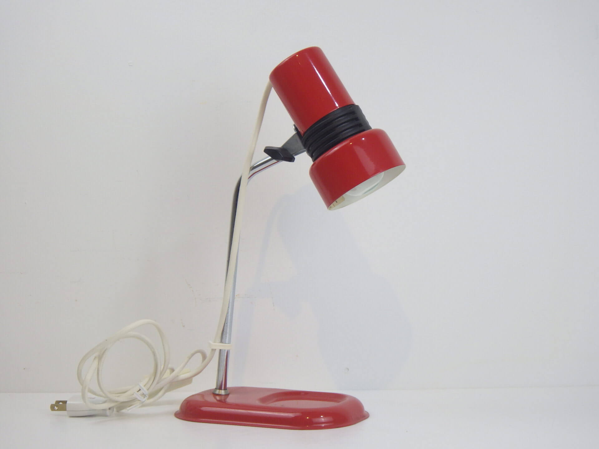 | ヨーロッパで買い付けました。 ちょっとした事務アイテムを置いておけるトレー付きのデスクランプです。 赤と黒のポップなカラーリングに、クロームの脚がよく馴染むデザインです。 デスク上だけでなく、棚に入れたり店舗什器として置いたり、様々な空間でインテリアのアクセントとしてお使いいただけそうです。 ネック部分の角度を調整出来ます。 コンセント部分のスイッチでON/OFFが切り替えられます。 (電球の口金サイズ:E14 LED対応) |