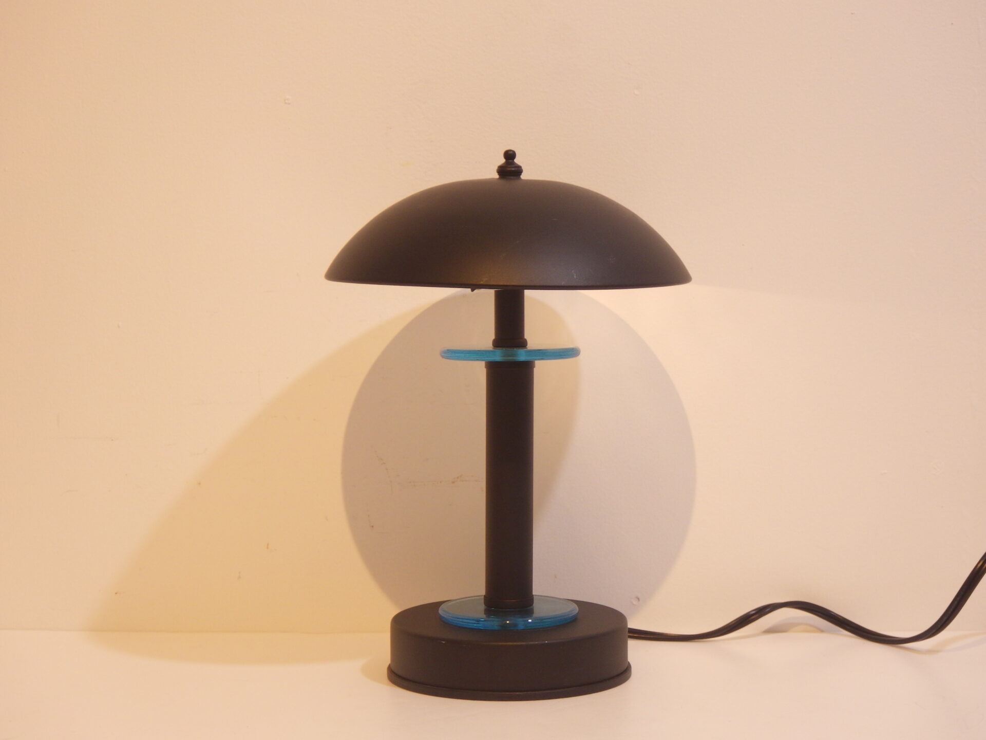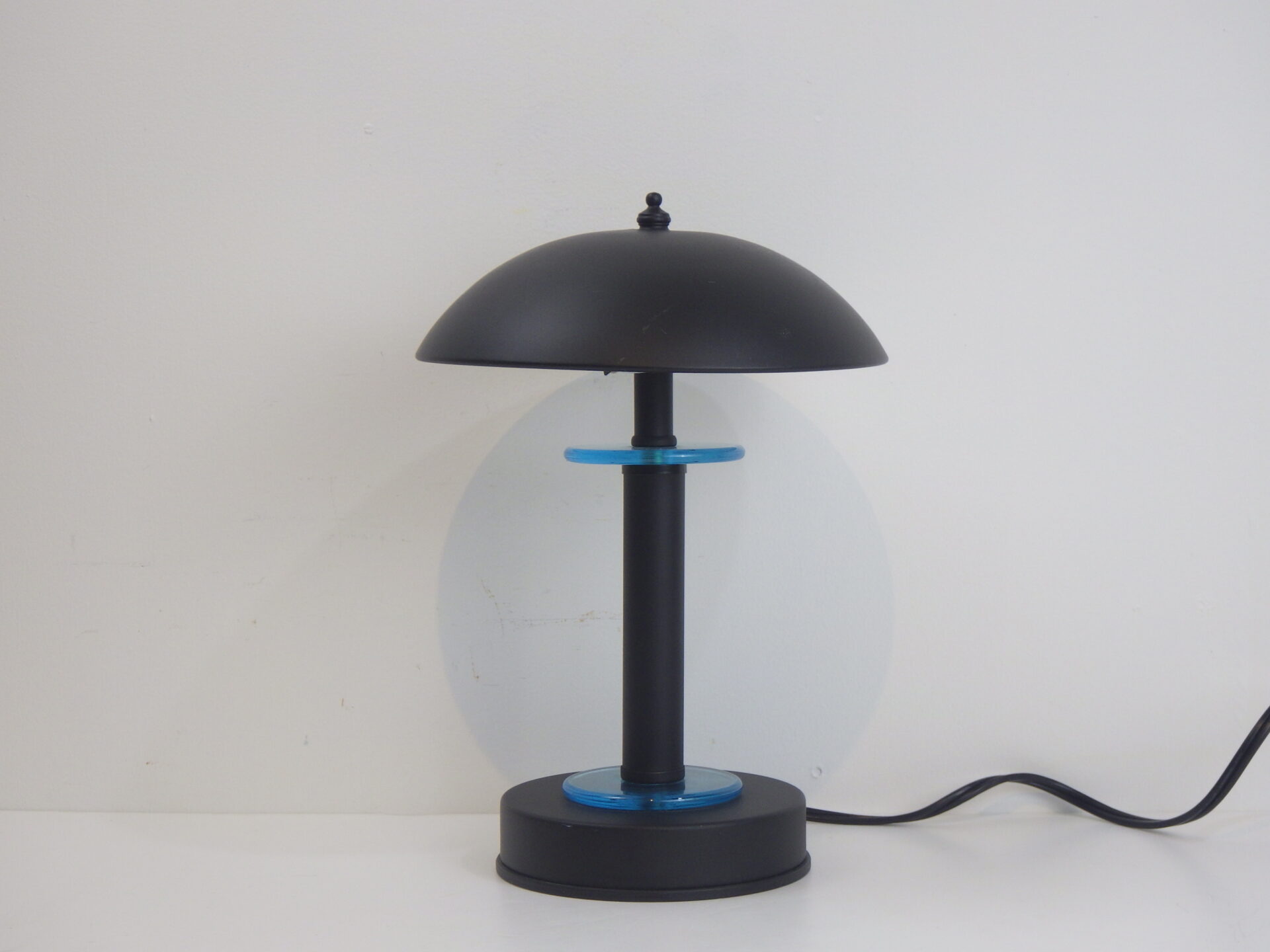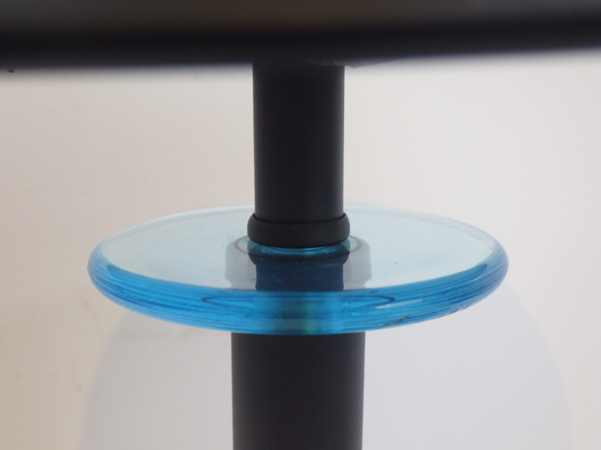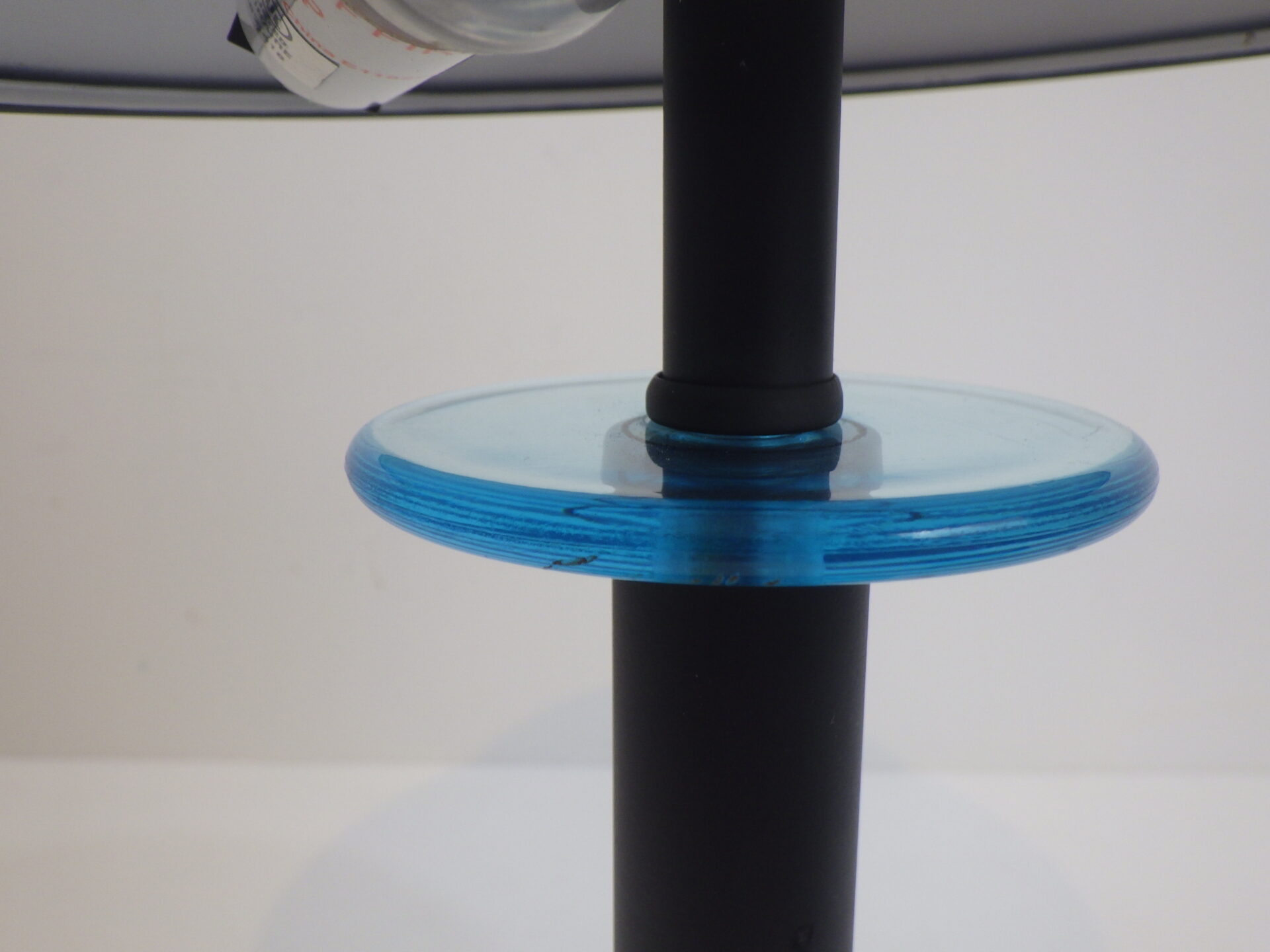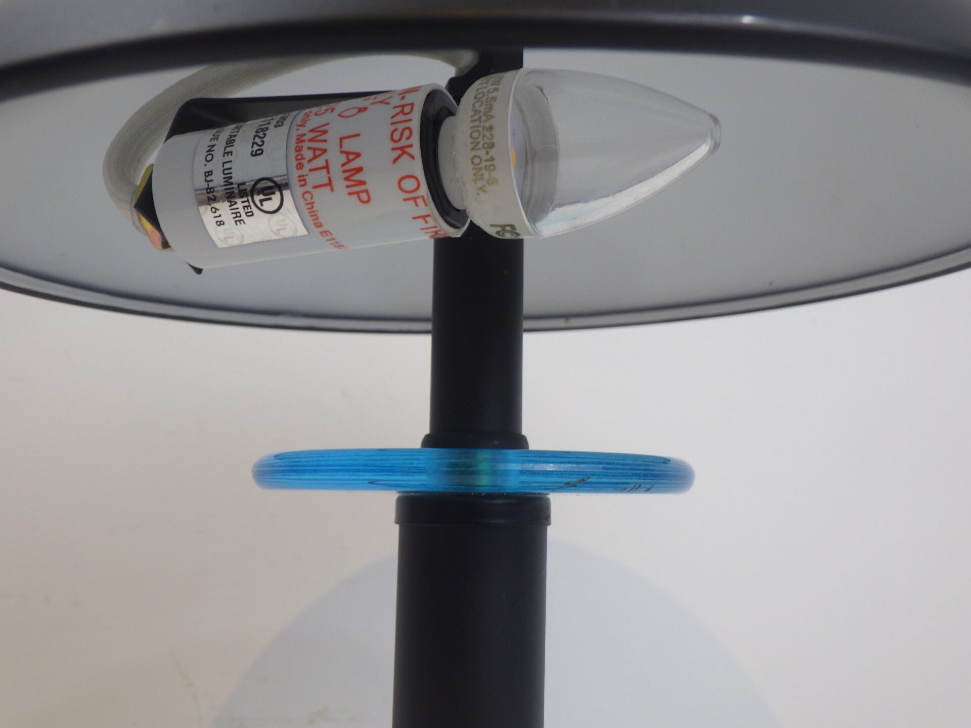 | アメリカで買い付けました。 ポストモダン、小ぶりなマッシュルームランプです。 タッチセンサー付きで、シェードまたはベースにタッチすると点灯、消灯します。 また、点灯は三段階で、場面によって雰囲気を替えることが出来ます。 サイドボードに乗せたり、寝室のベッドサイドなどに置けば、お部屋に立体感を持たせることが出来ます。 ブラックのベースとシェードが大人っぽい雰囲気ですが、ブルーのアクリル板がいまどき感もありますね。 (電球の口金サイズ:E10 LED対応) |