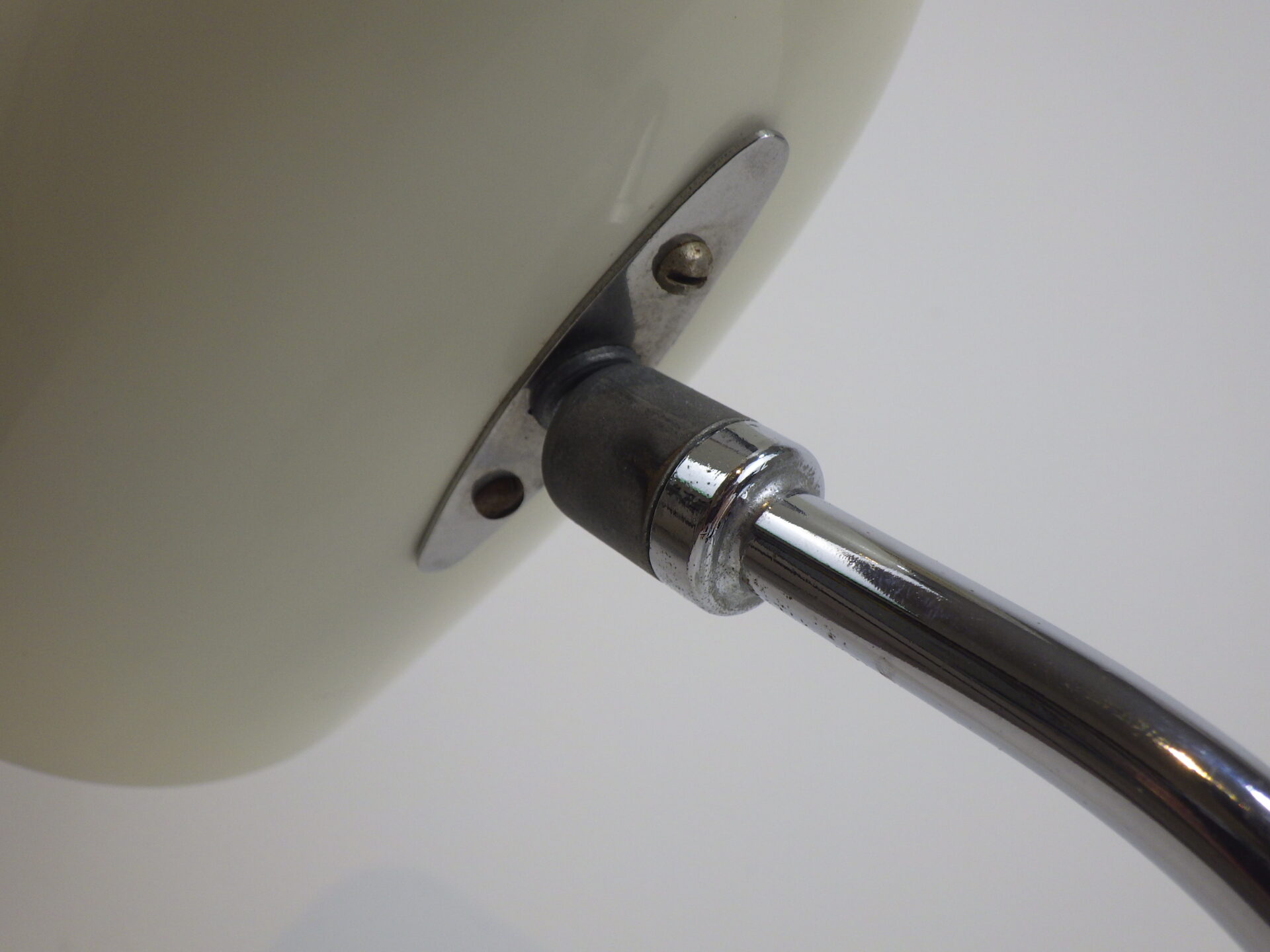 | ヨーロッパで買い付けました。 グイっと大きく曲がったステムが印象的なメタルのデスクランプです。 ラッパのようなシルエットのホワイトシェードが可愛らしいですね。 首元のボール部分で角度の調節が可能です。 コンセント部分のスイッチでON/OFFが切り替えられます。 (電球の口金サイズ:E26 LED対応) |