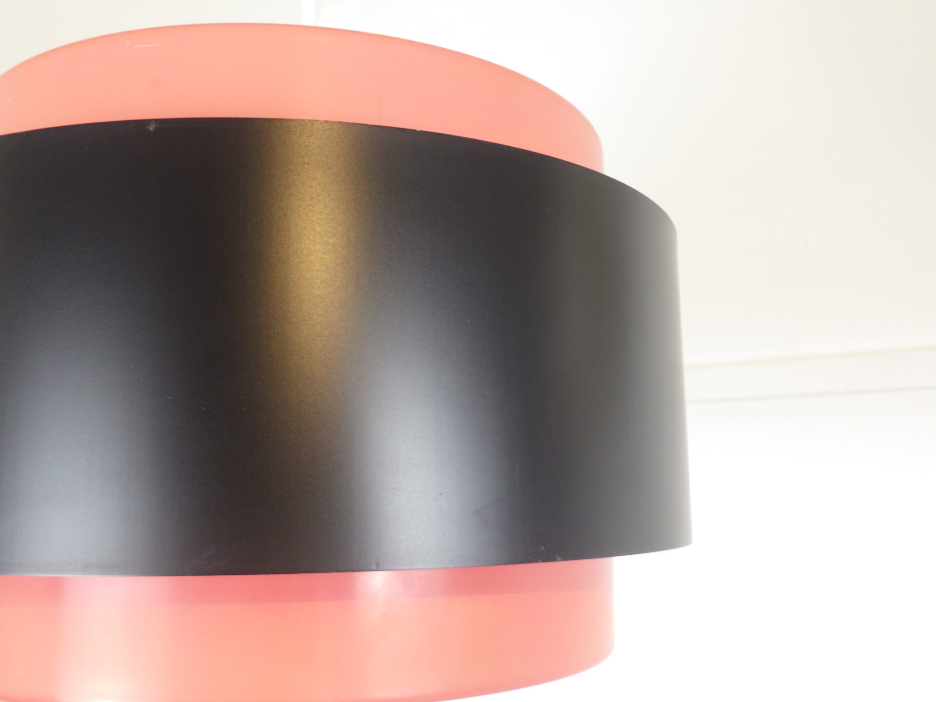 | ヨーロッパで買い付けました。 「Fog&Morup社」製のペンダントランプです。 Fog&Morupは1904年にデンマークで創業した、北欧デザインを代表する照明メーカーで、59年~80年代にチーフディレクターを務めたJo Hammerborgの手がけたデザインは、ルイスポールセンと並び北欧モダンデザインを牽引する存在でした。 こちらのランプはピンクとブラックのコントラストが可愛いアイテム。 北欧のランプに良く見られるルーバータイプなので、光が直接目に飛び込んで来ない優しい設計になっているのもポイントです。 |