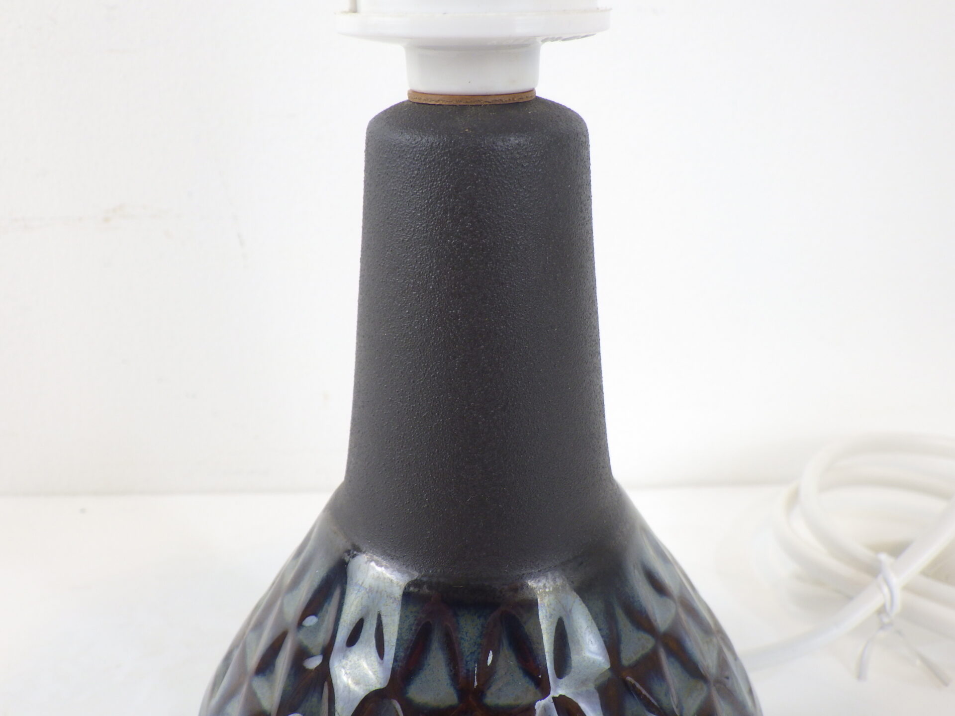 | ヨーロッパで買い付けました。 デンマーク、ボーンホルム島で1835年に創業した「Soholm」のテーブルランプです。 こちらはスーホルムで多くのデザインを手掛けたEinar Johansenのデザイン。 深みのあるブルーとブラウンを基調とした釉薬が美しく、同デザインの花瓶やプレートも存在しています。 ベットサイドやサイドボードなどに置くのに丁度良いサイズ感です。 また、シンプルで落ち着いた雰囲気なので、和室、洋室、問わずご利用いただきやすいアイテムですね。 ソケット部分のスイッチでON/OFFが切り替えられます。 (電球の口金サイズ:E26 LED対応) |