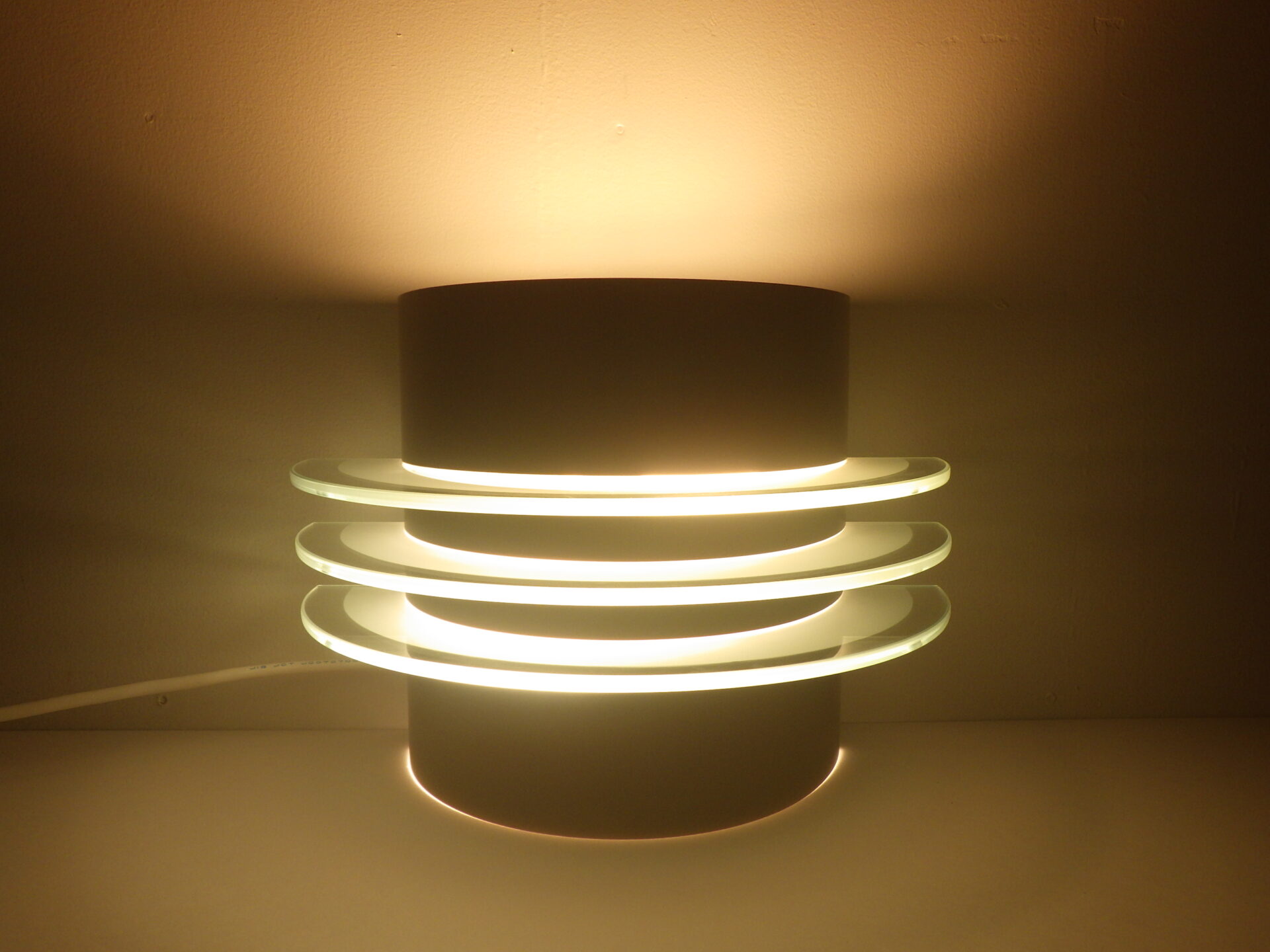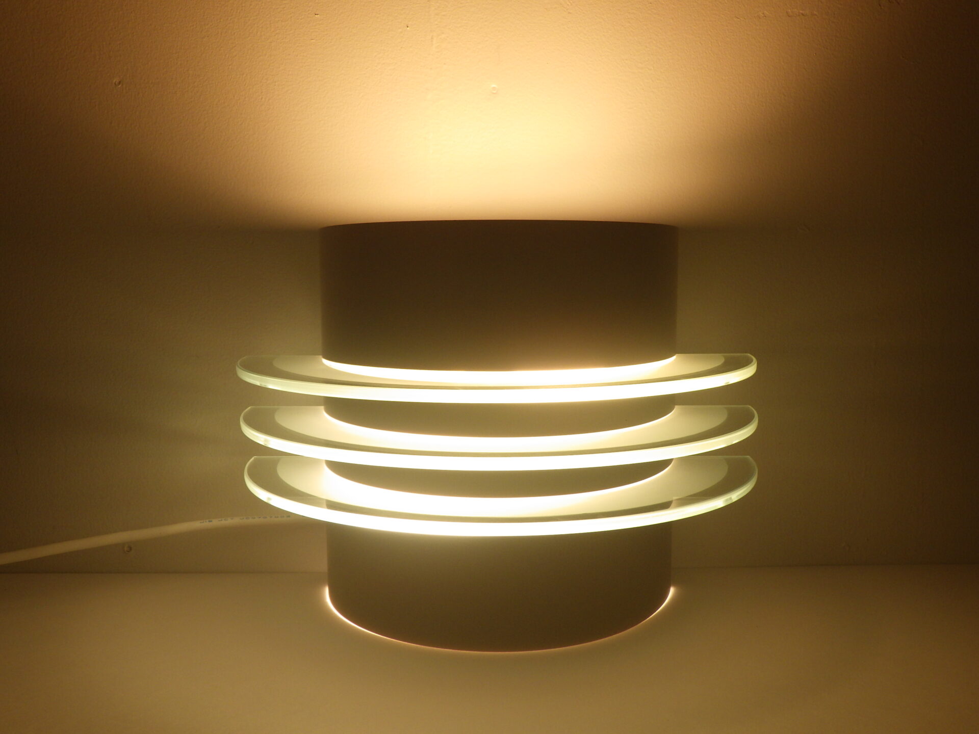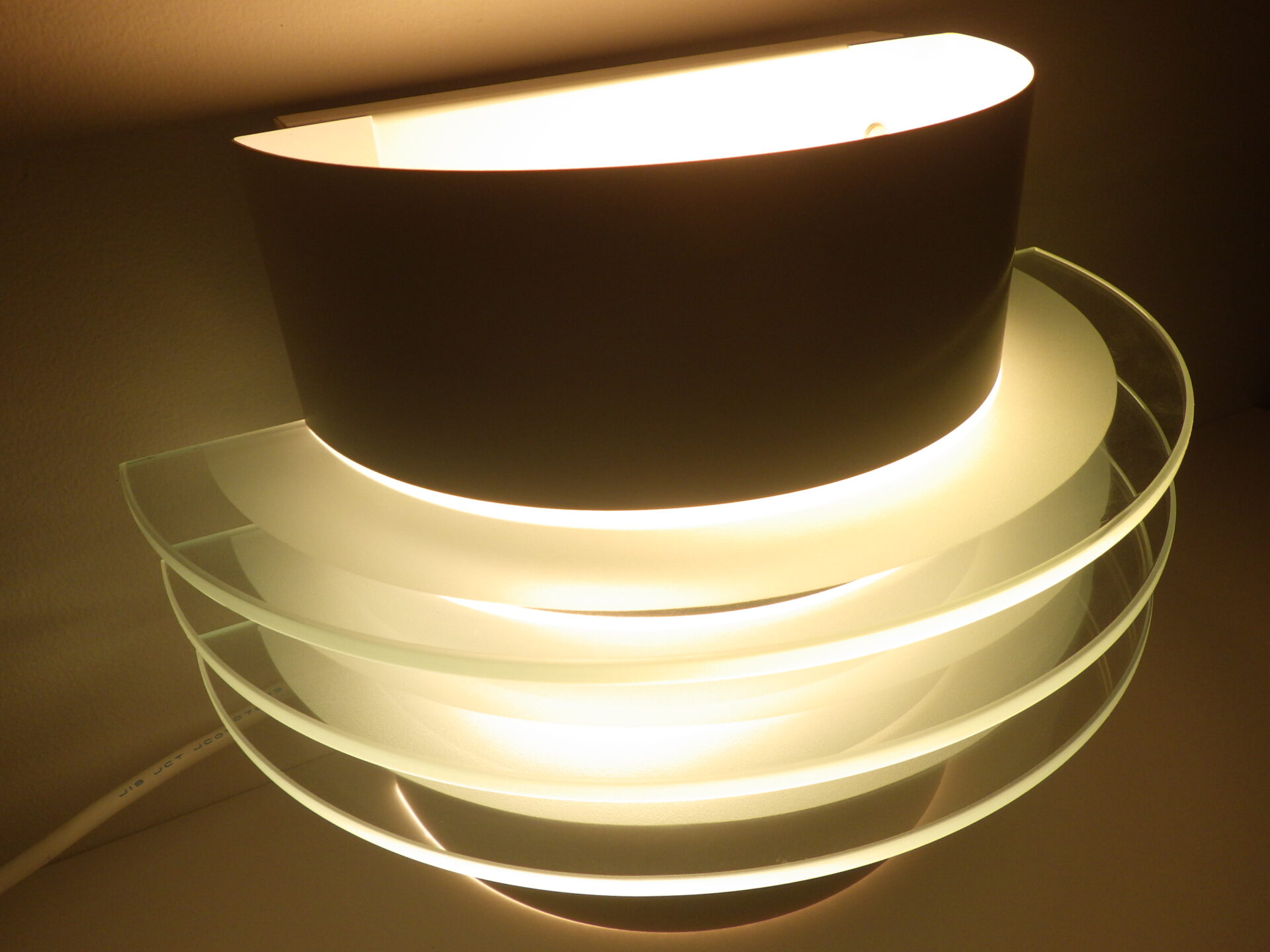 | ヨーロッパで買い付けました。 ビンテージイケアのウォールランプです。 三枚のアクリル板が縦に重なっており、灯りをともすと美しく反射します。 二灯式で、上向きと下向きに一灯ずつついており、上からも下からも灯りがもれるため、空間に広がりをもたせてくれるアイテムです。 (電球の口金サイズ:E26 LED対応) |