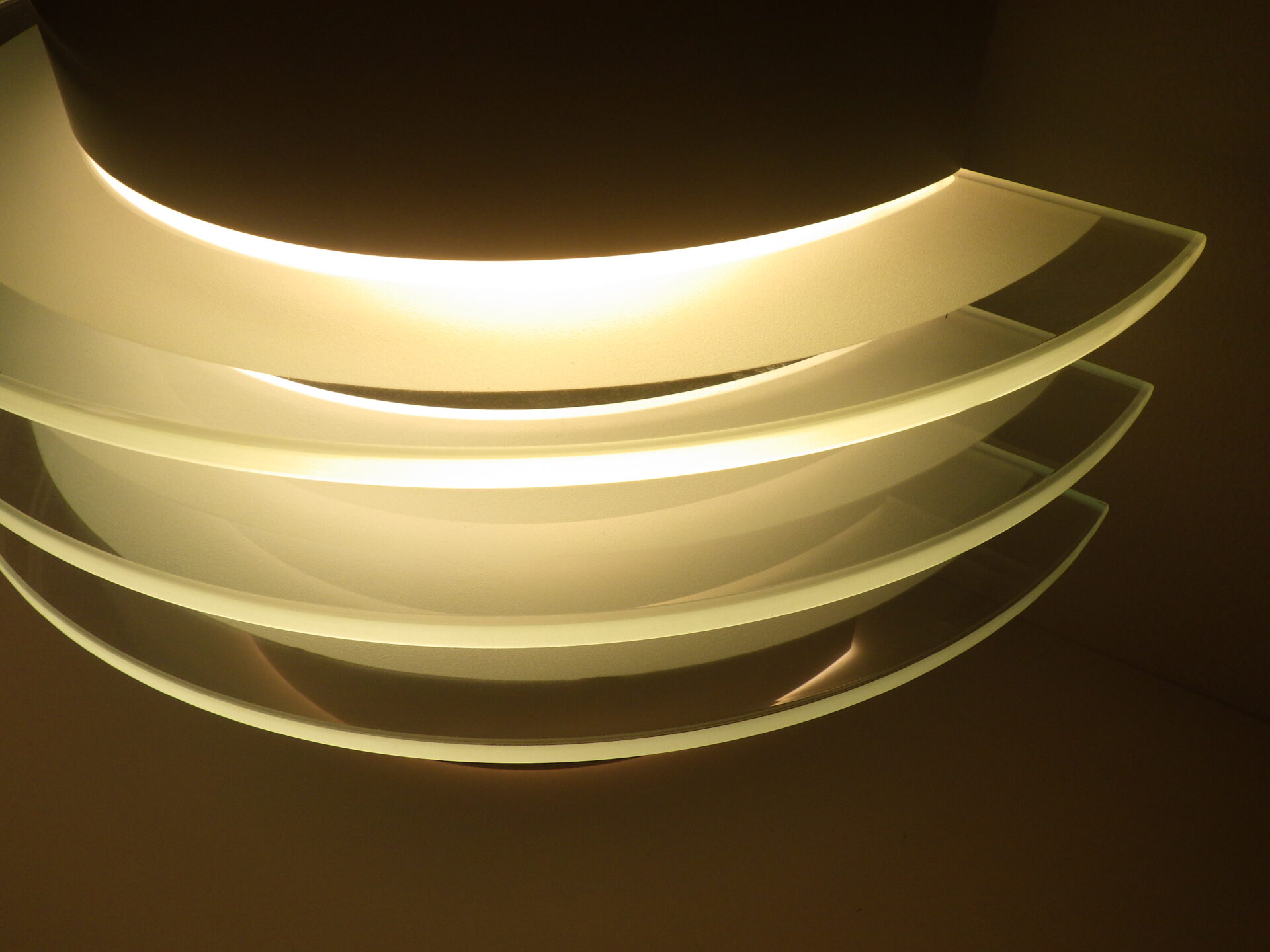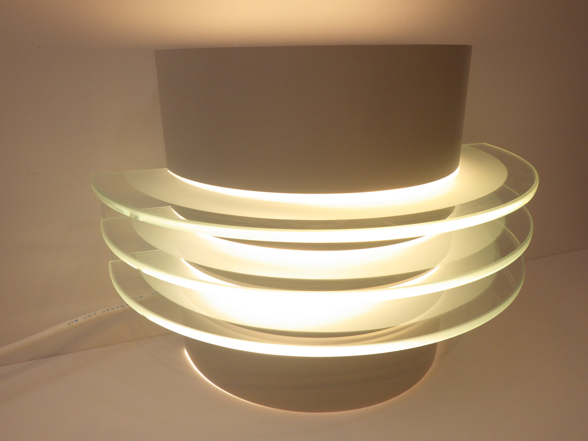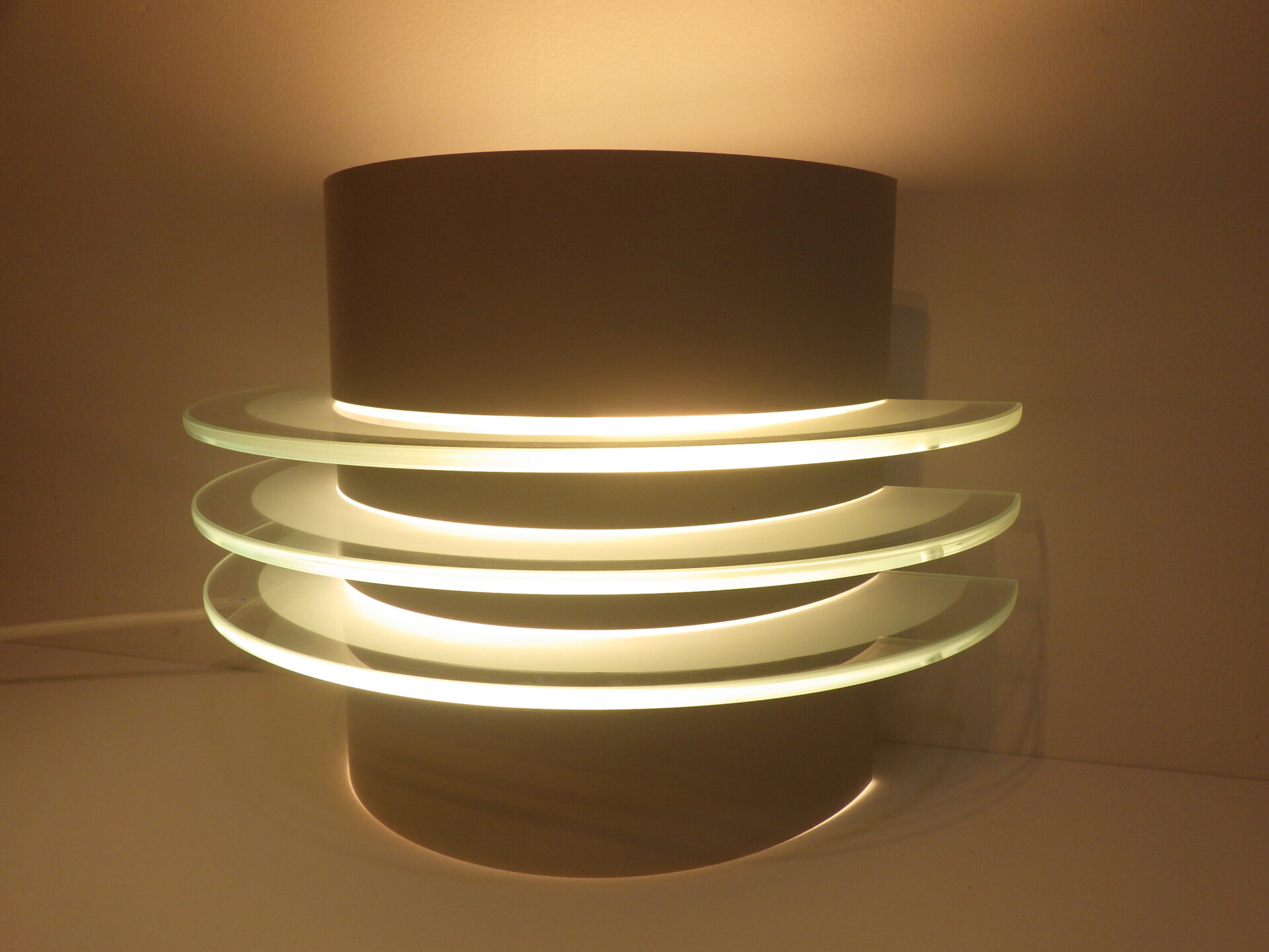 | ヨーロッパで買い付けました。 ビンテージイケアのウォールランプです。 三枚のアクリル板が縦に重なっており、灯りをともすと美しく反射します。 二灯式で、上向きと下向きに一灯ずつついており、上からも下からも灯りがもれるため、空間に広がりをもたせてくれるアイテムです。 (電球の口金サイズ:E26 LED対応) |