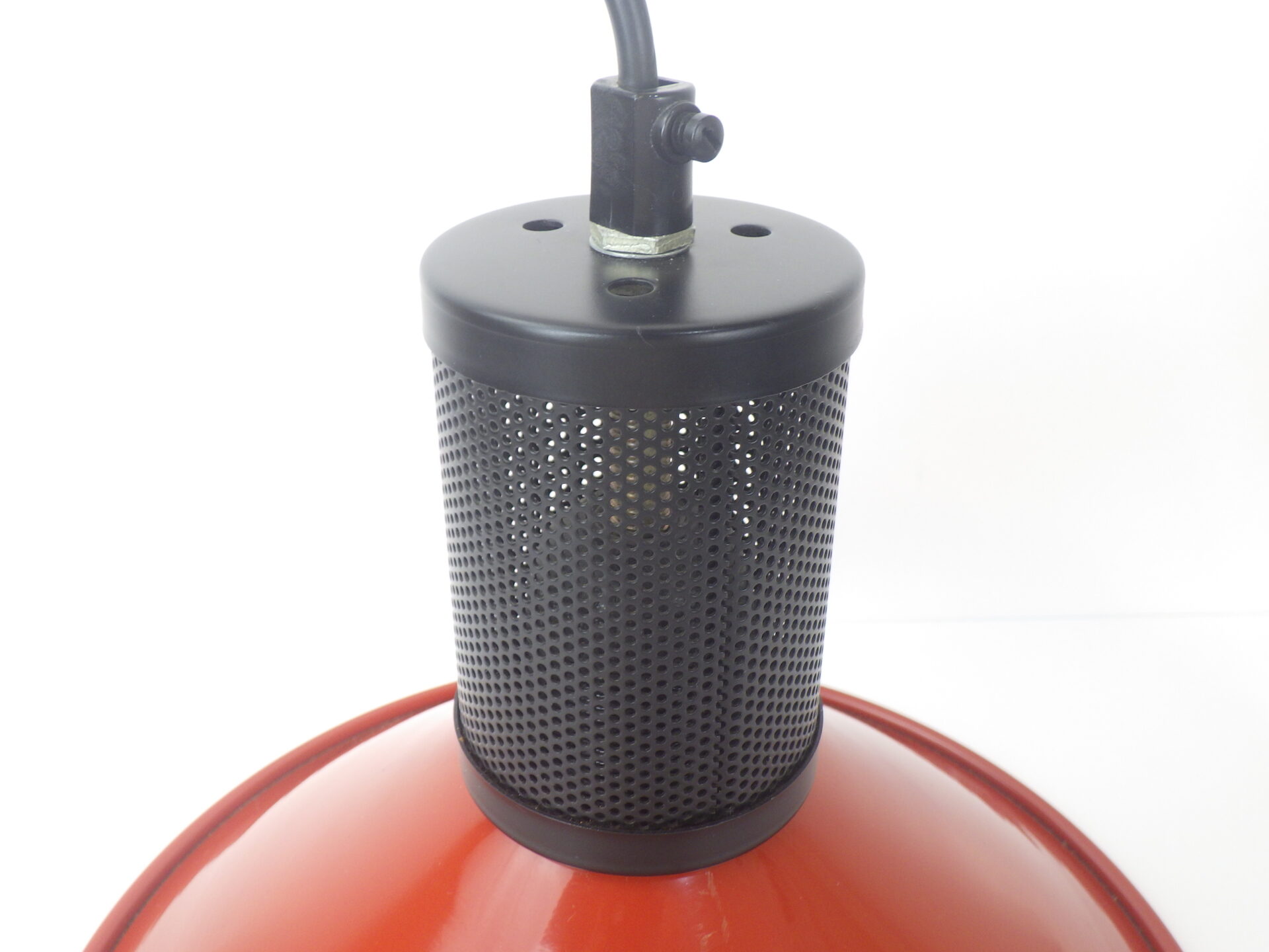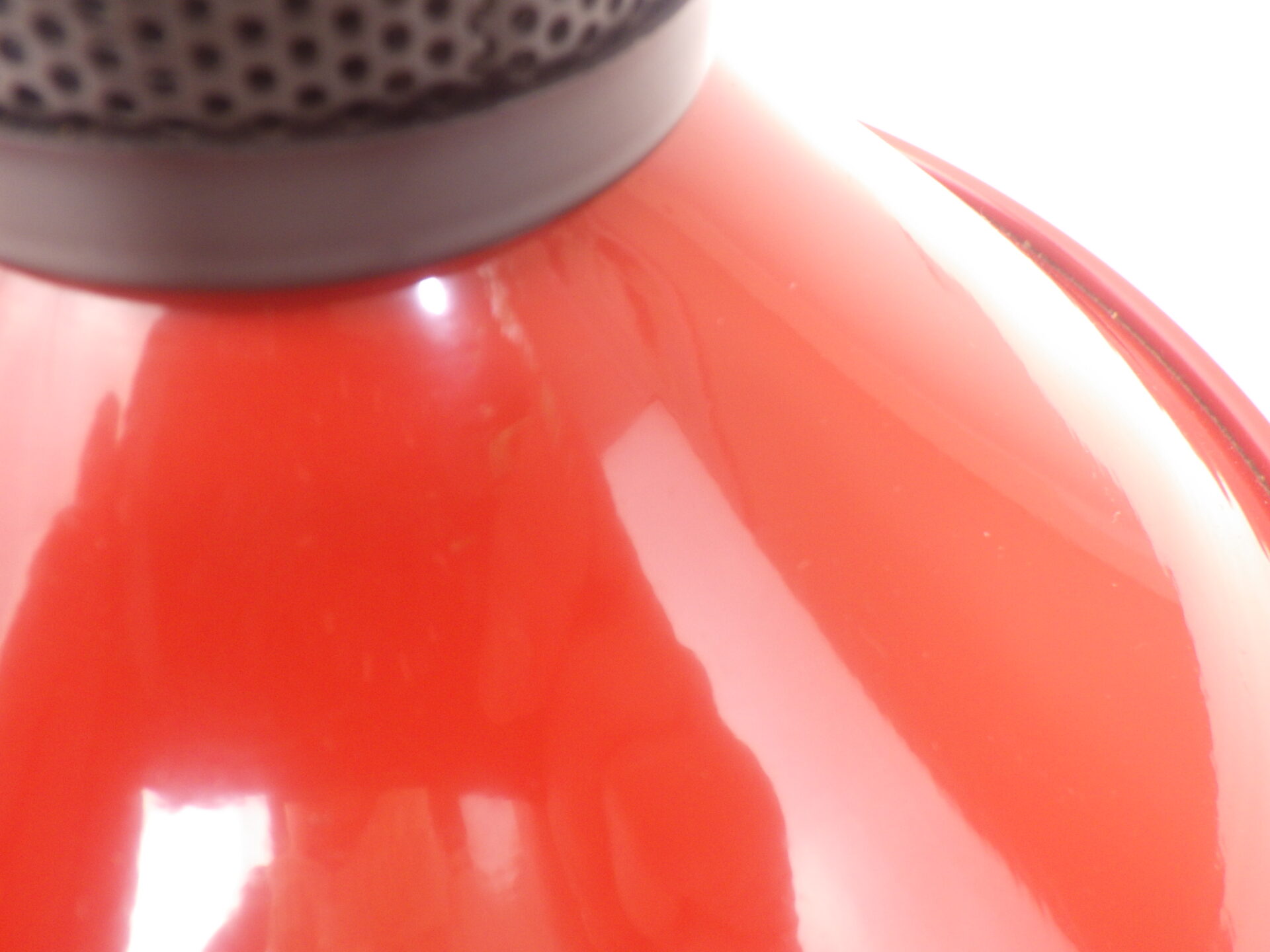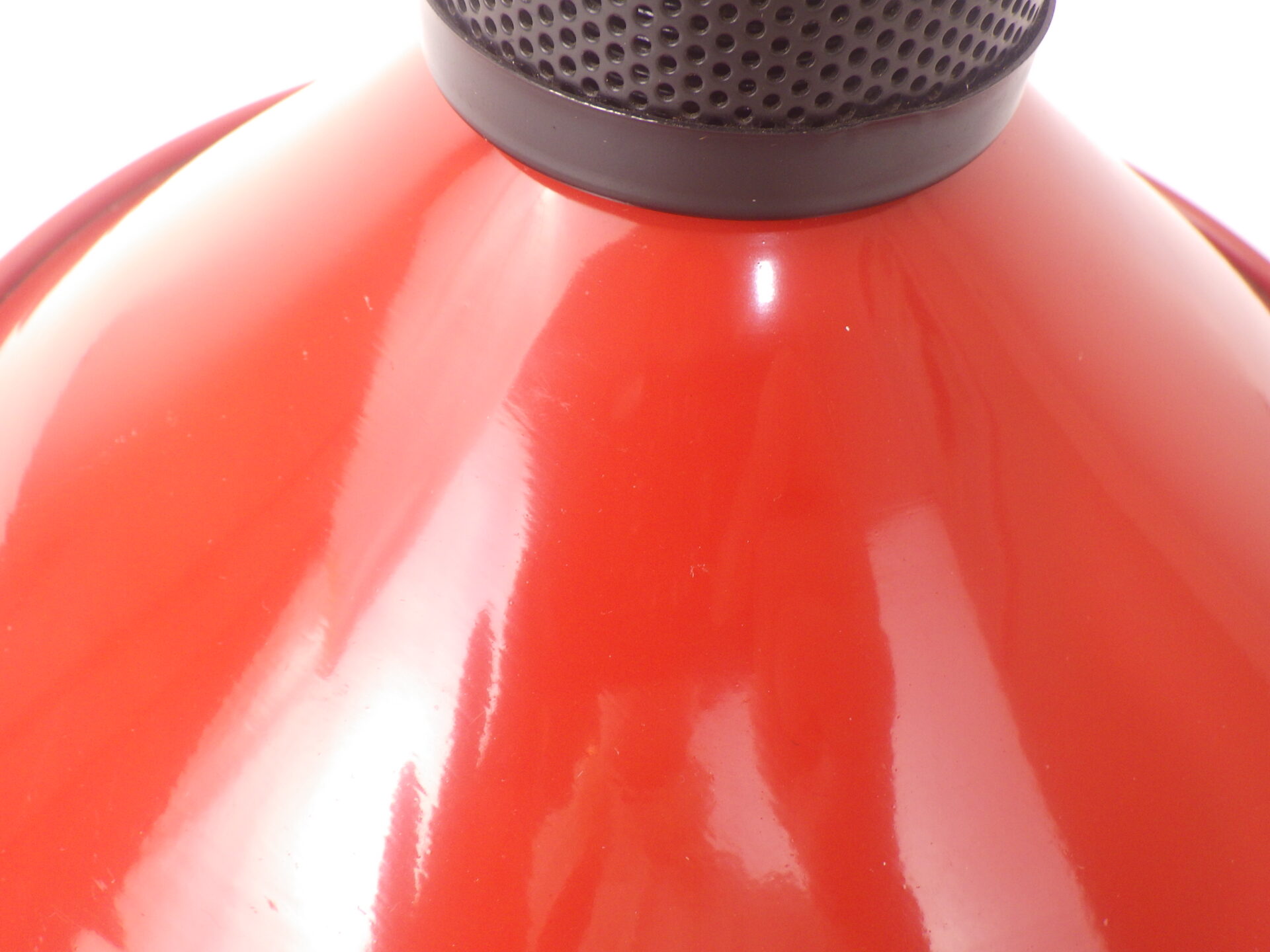 | ヨーロッパで買い付けしました。 E.S.HORN(E.Sホーン)製のペンダントランプです。 1952年に創業し、60~70年代にかけて急成長をとげたデンマークのブランドです。 レッドに塗装されたアルミシェードと、トップについた黒のメッシュのカバーとのコントラストが印象的ですね。 小ぶりなのでわずかなスペースにも吊り下げられますし、ダウンライトと併用してダイニングや寝室などにも合わせられます。 (電球サイズ E26 LED電球対応) |