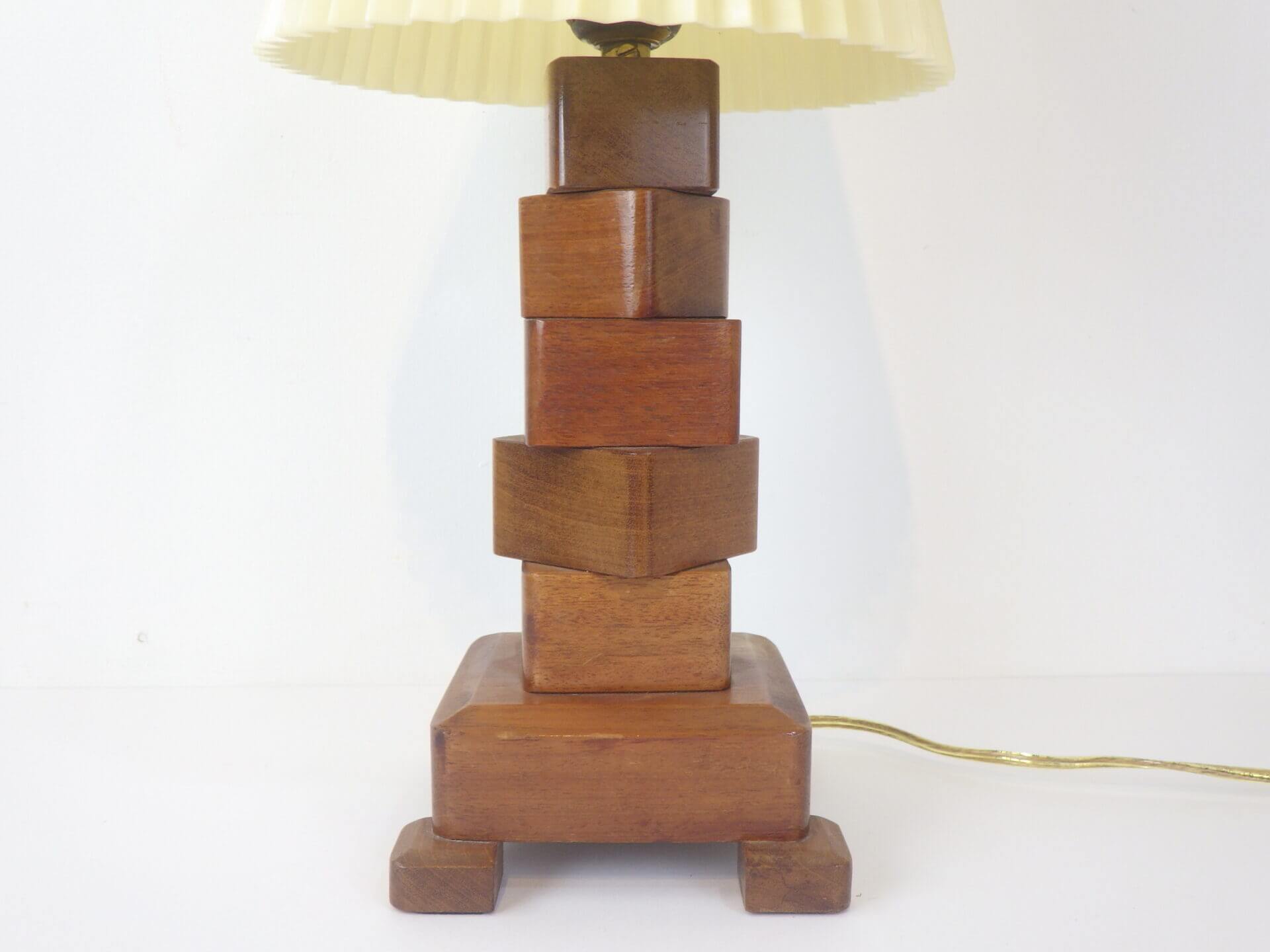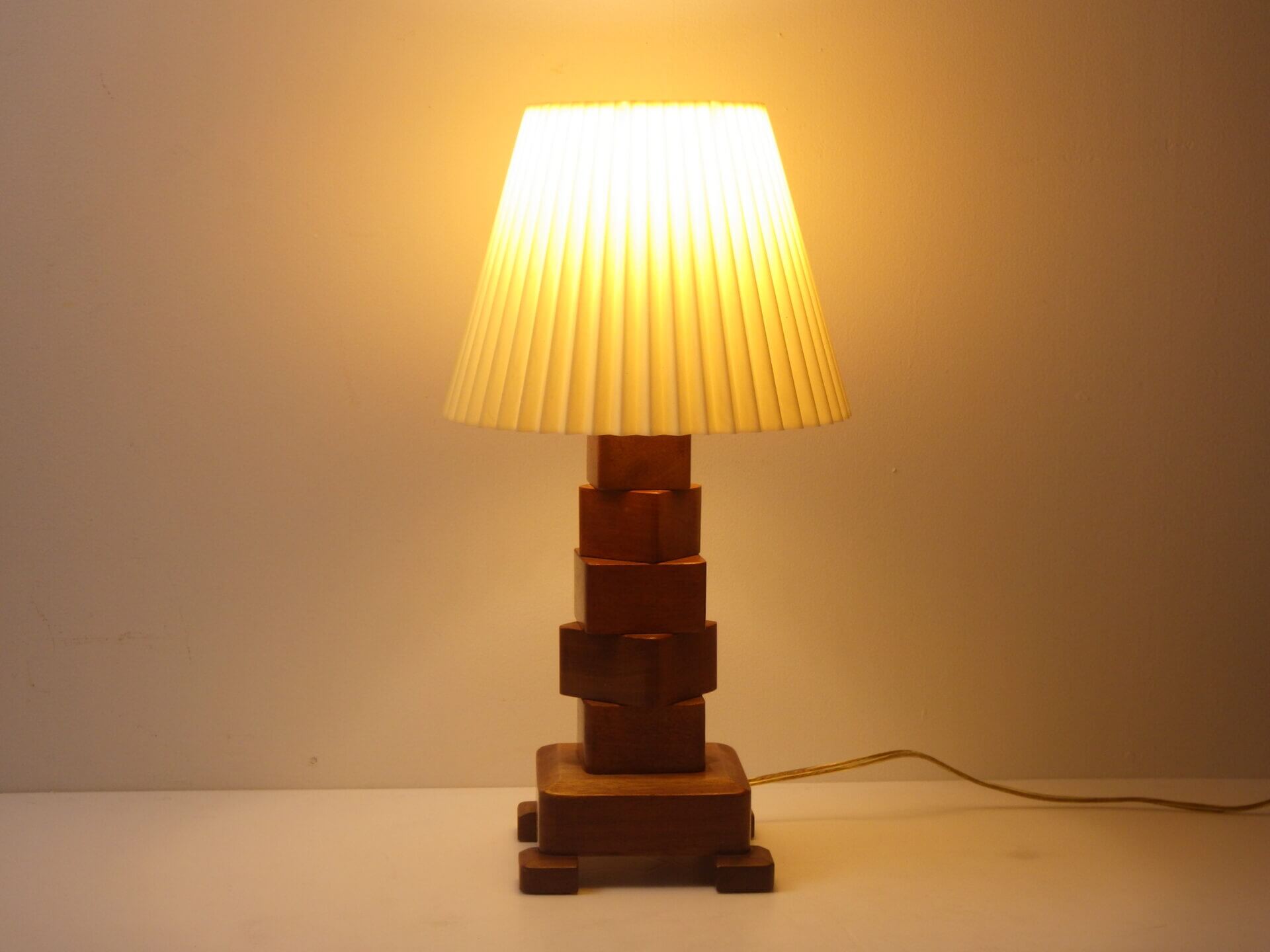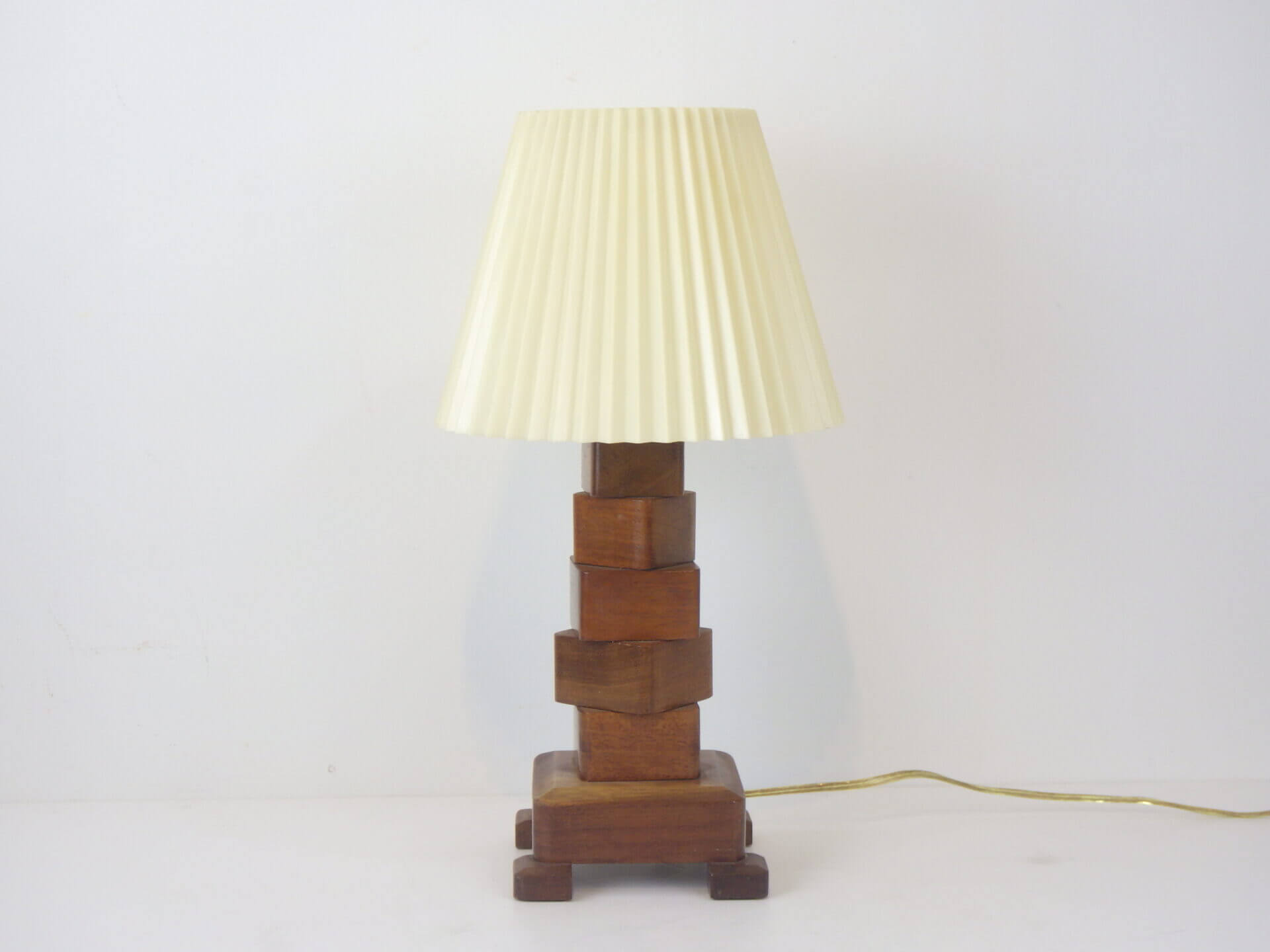 | アメリカで買い付けました。 ビンテージのテーブルランプです。 土台は大きさの異なる四角い木を積み重ね作られています。 シェードはオリジナルと思われるプラスチックシェードです。 遊び心たっぷりのデザインで、空間の良いアクセントにもなってくれそう。 本体のソケット部分のスイッチでON/OFF出来ます。 (電球サイズ:E26 LED対応 ) |