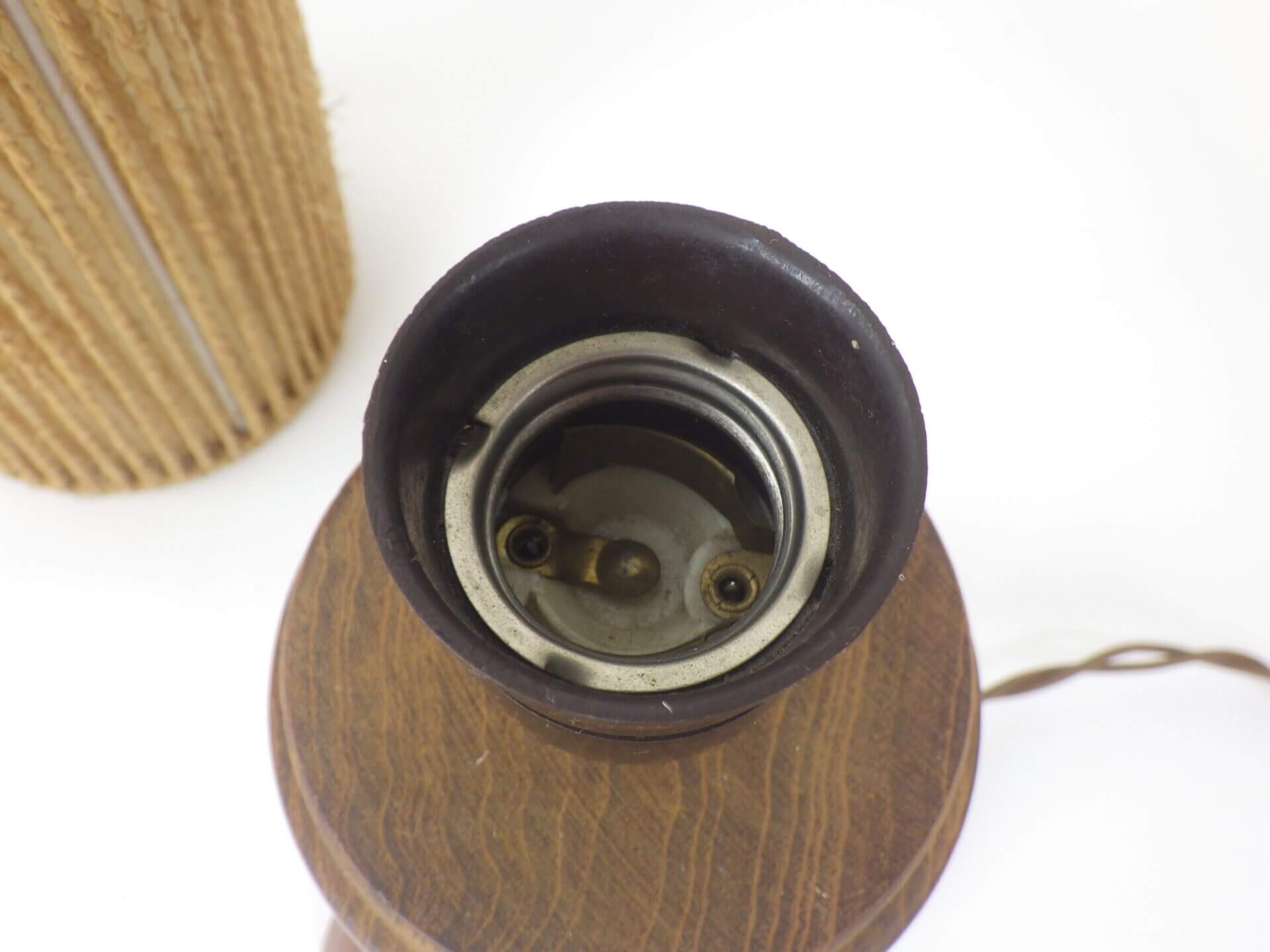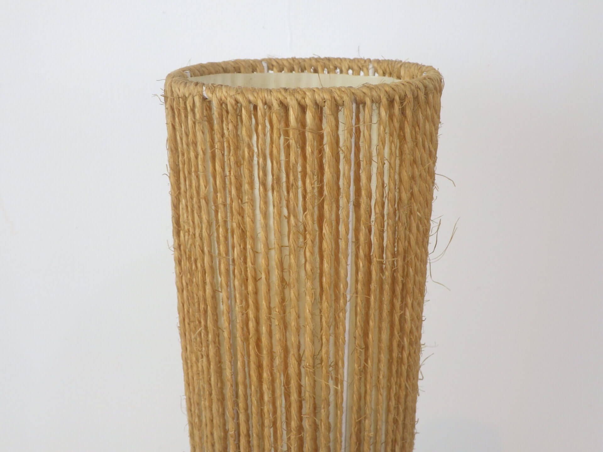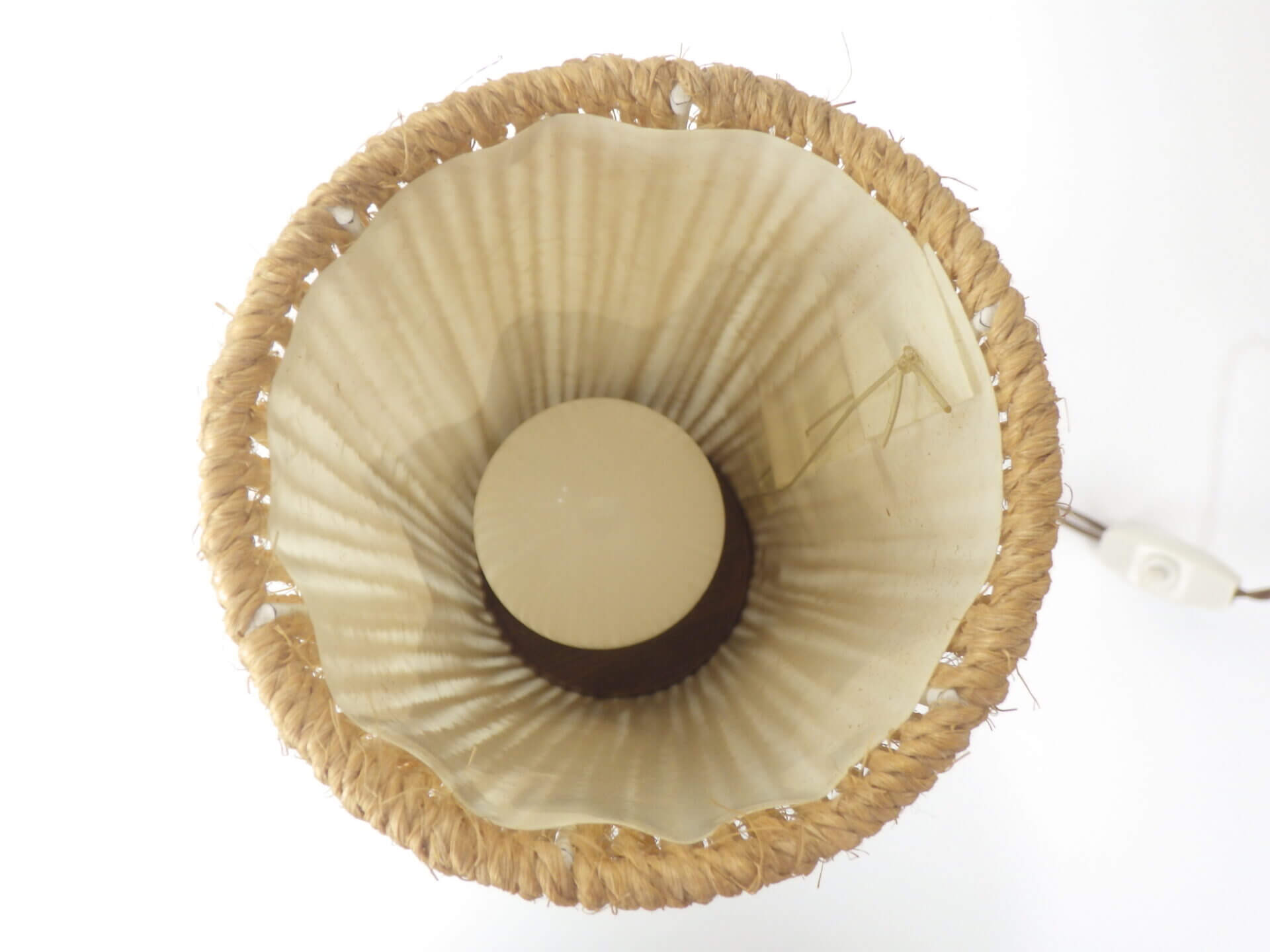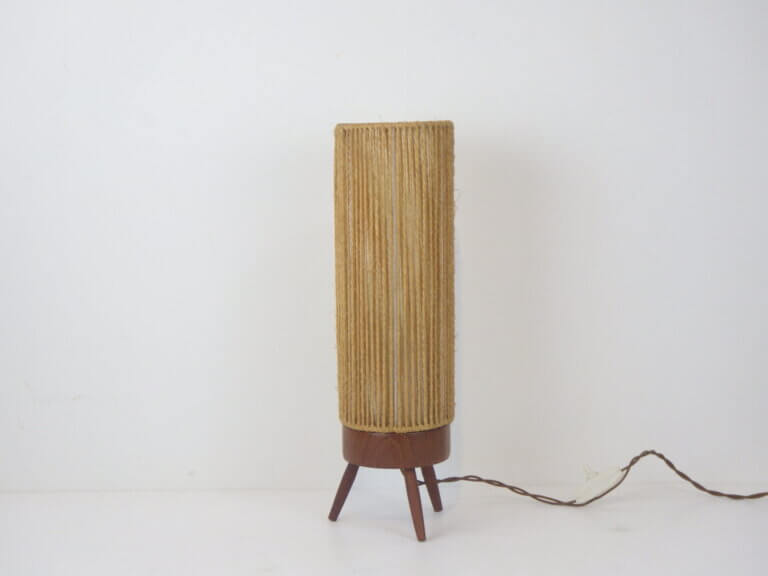 | ヨーロッパで買い付けました。 ビンテージのテーブルランプです。 木製の土台に麻のコードで囲まれたシェードが乗せられています。 麻のコードの内側はつるっとした素材感の紙が一周巻かれており、灯りをつけるとコードの隙間からほんのり優しい光がもれます。 和モダンやミッドセンチュリーモダン、北欧モダンなど様々なテイストの空間に合わせられそうです。 コンセントのスイッチでON/OFF出来ます。 (電球サイズ:E26 LED対応 ) |