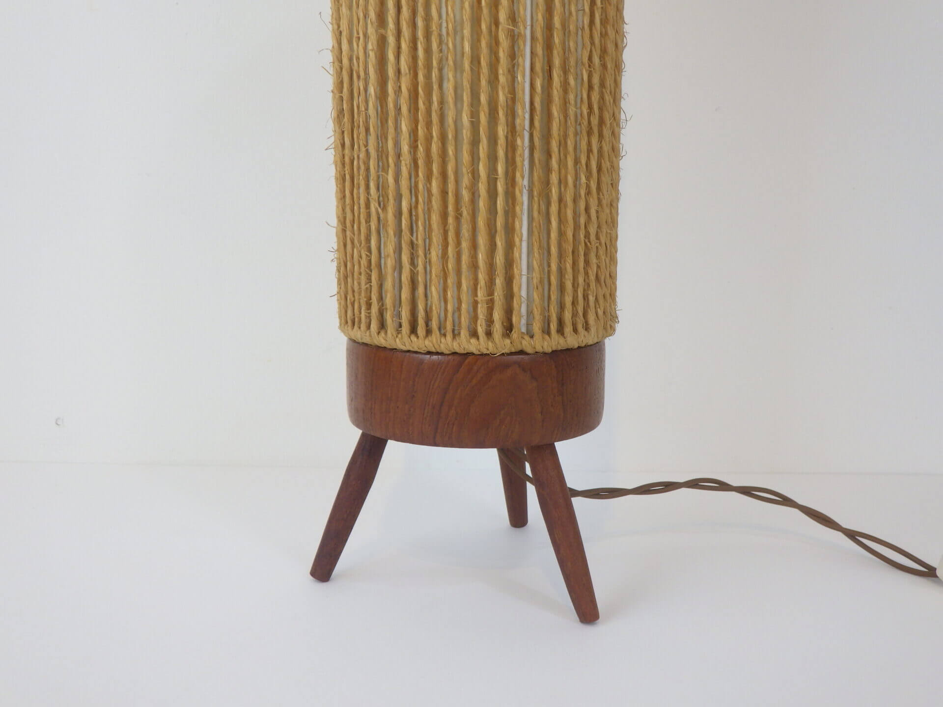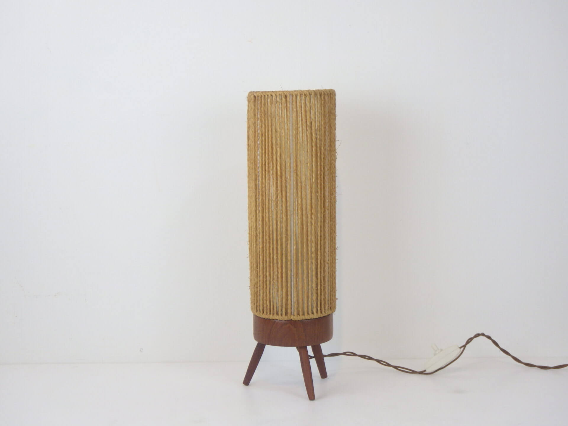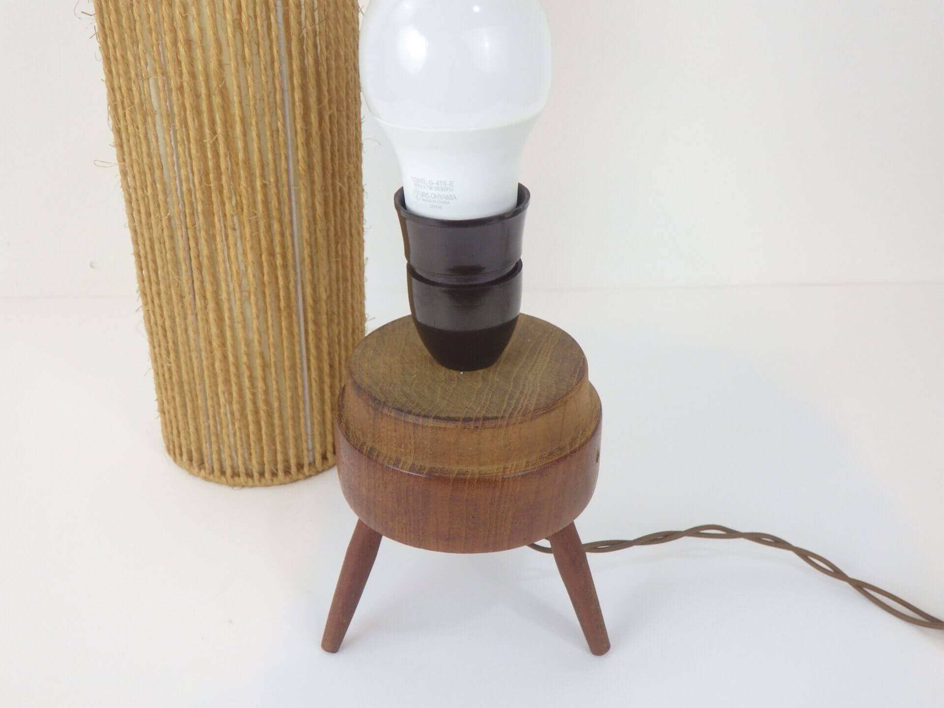 | ヨーロッパで買い付けました。 ビンテージのテーブルランプです。 木製の土台に麻のコードで囲まれたシェードが乗せられています。 麻のコードの内側はつるっとした素材感の紙が一周巻かれており、灯りをつけるとコードの隙間からほんのり優しい光がもれます。 和モダンやミッドセンチュリーモダン、北欧モダンなど様々なテイストの空間に合わせられそうです。 コンセントのスイッチでON/OFF出来ます。 (電球サイズ:E26 LED対応 ) |
