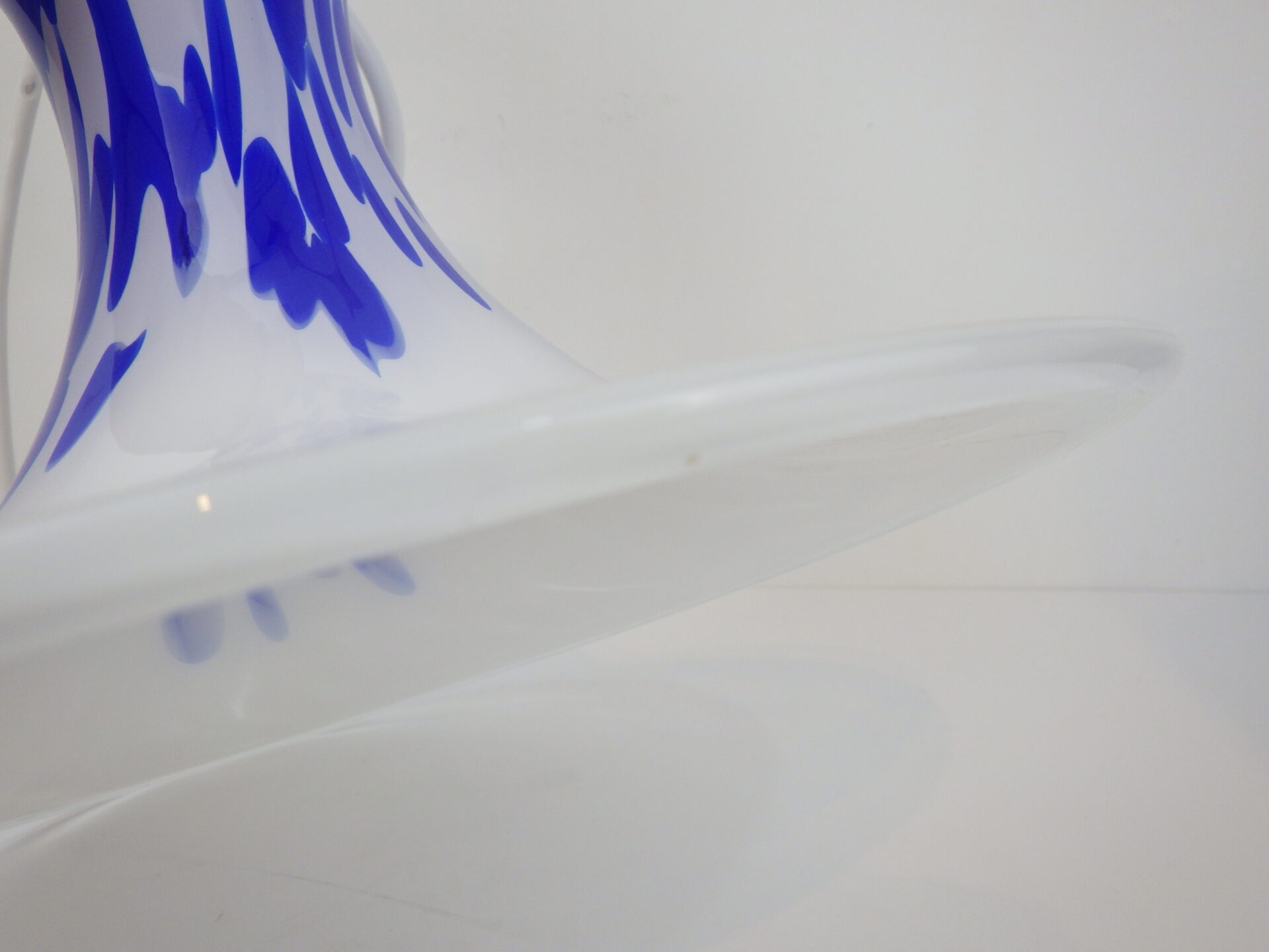 | ヨーロッパで買い付けました。 スウェーデンを代表するガラス作家、Erik Hoglundが手掛けたランプです。 彼の作品は、革新的かつプリミティブであり、独自のスタイルを確立しています。 こちらのランプはホワイト地にブルーのマーブル模様のガラスシェードが印象的で、灯りをつけていない時でもお部屋のアイコンになってくれそう。 もちろん点灯時にはまた違った表情を見せてくれるので、昼夜それぞれの雰囲気を楽しんでいただきたいアイテムです。 |