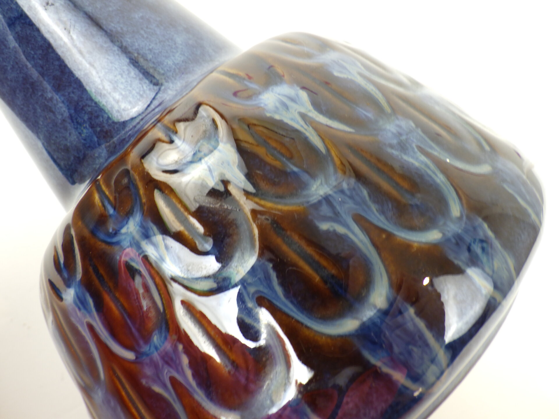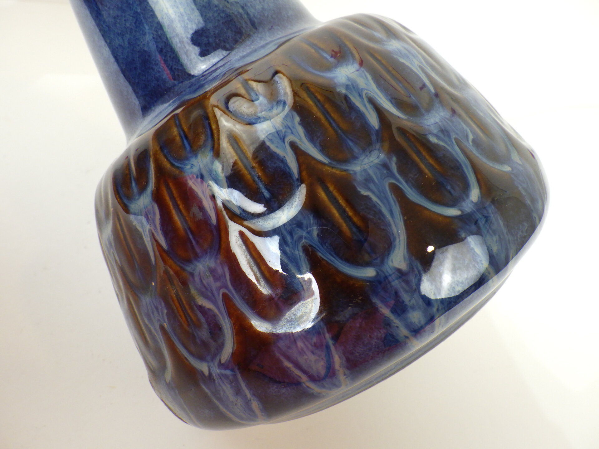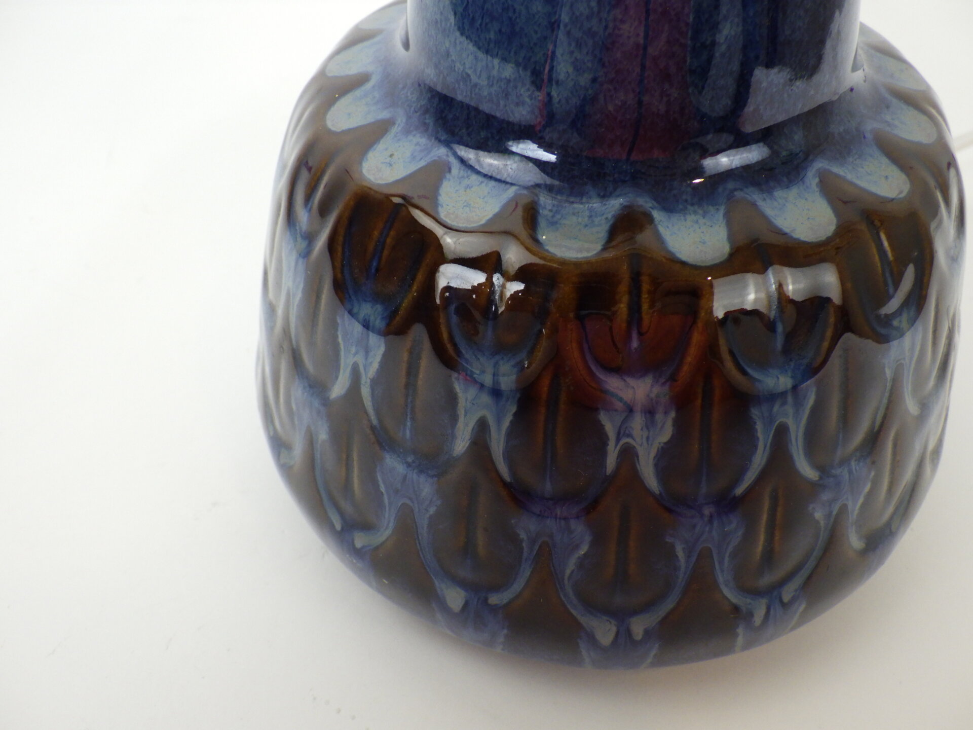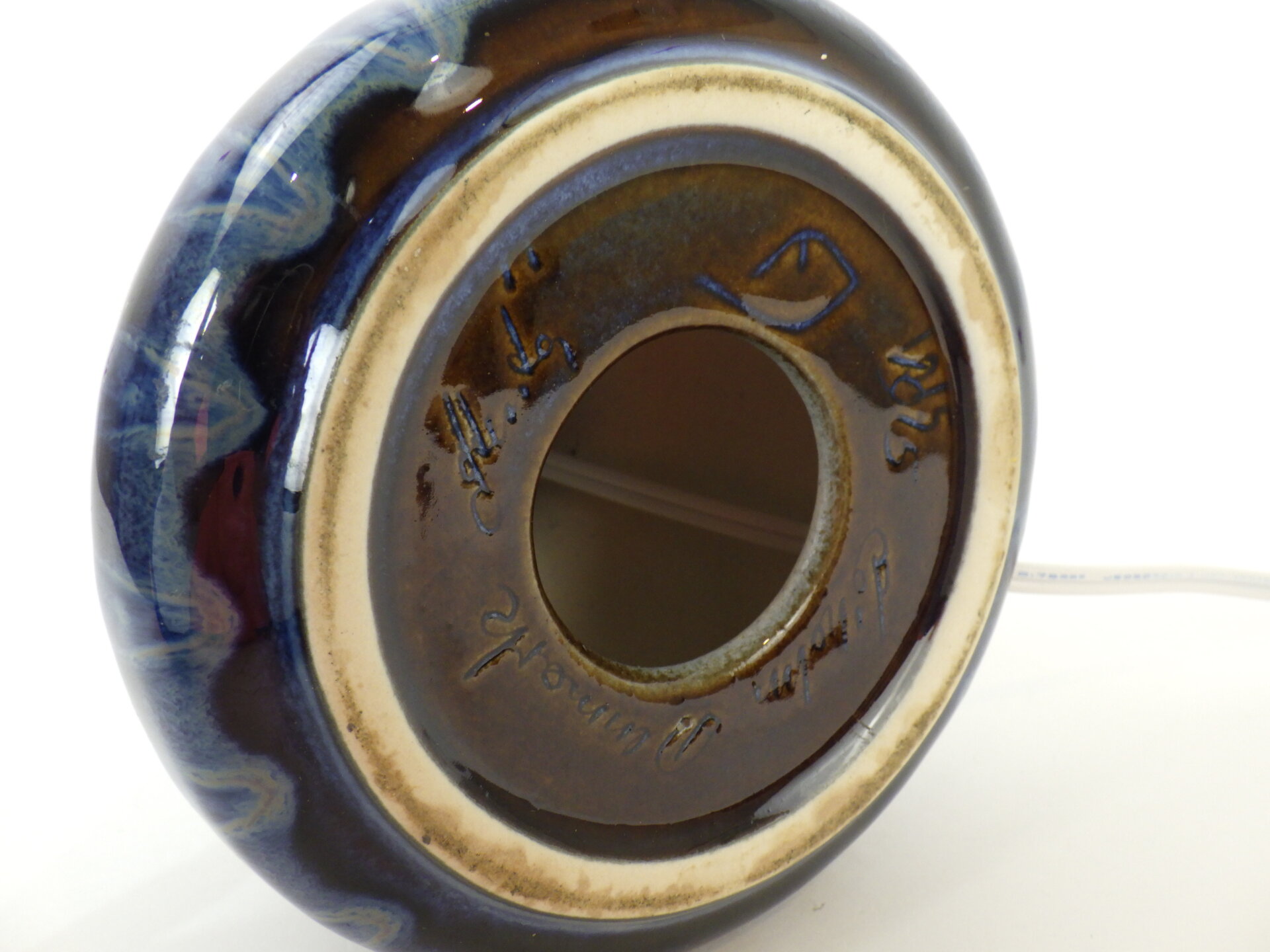 | ヨーロッパで買い付けました。 デンマーク、ボーンホルム島で1835年に創業した「Soholm」のテーブルランプです。 こちらはスーホルムで多くのデザインを手掛けたEinar Johansenのデザイン。 羽のような模様と、深みのあるブルーとブラウンが混ざり合う独特な釉薬の表情が美しい逸品。 光が当たることで釉薬の濃淡が美しく浮かび上がり、点灯時・消灯時で異なる表情を楽しめます。 土のあたたかみを残しつつもモダンな佇まいなので、北欧インテリアはもちろん、USミッドセンチュリーや和の空間にも自然に溶け込みます。 小ぶりながらも存在感があり、置くだけで空間の温度が一段上がるような、北欧陶器ならではの質感と美しさが際立つランプですね。 コード部分のスイッチでON/OFFが切り替えられます。 (電球の口金サイズ:E26 LED対応) |