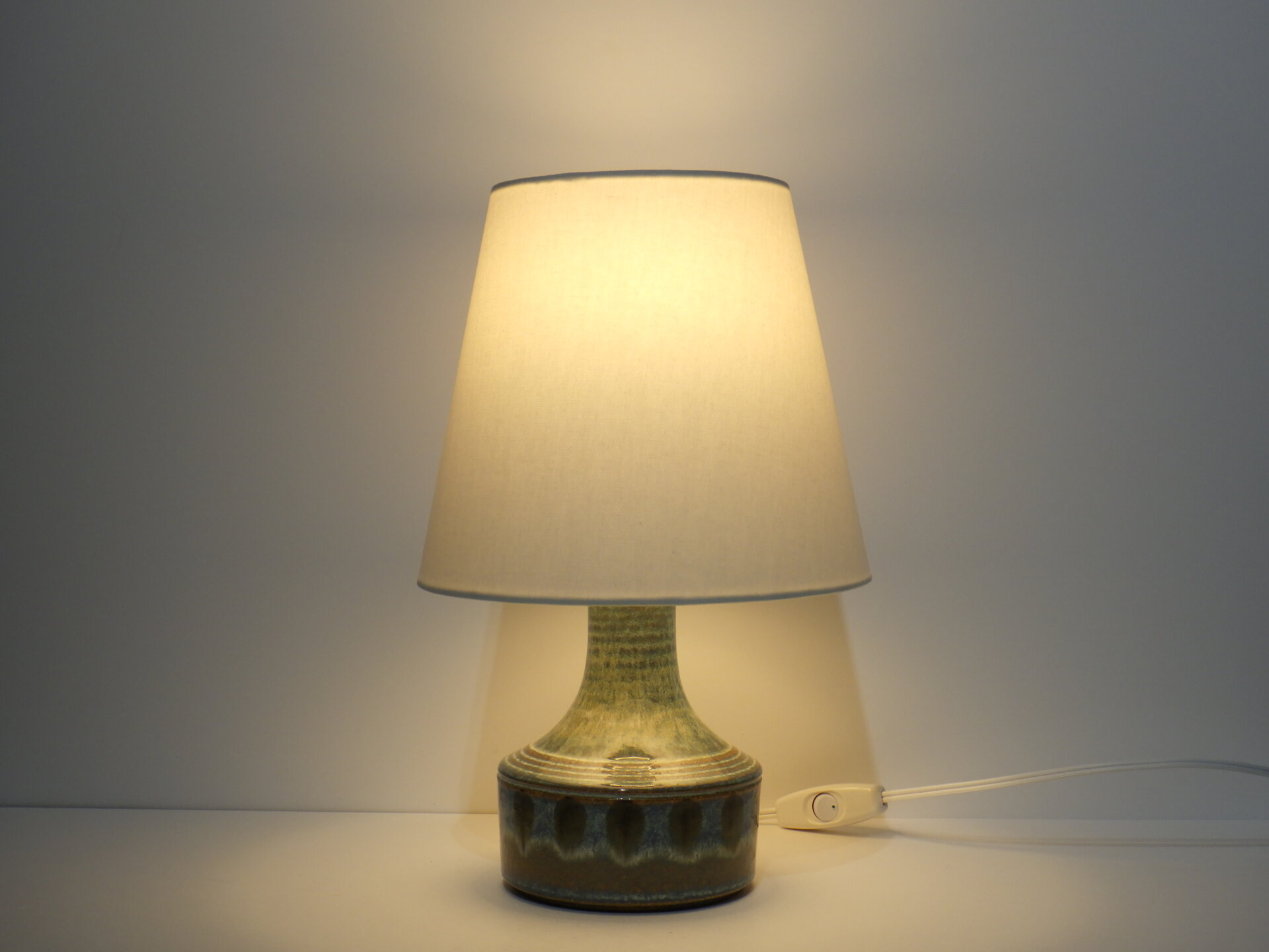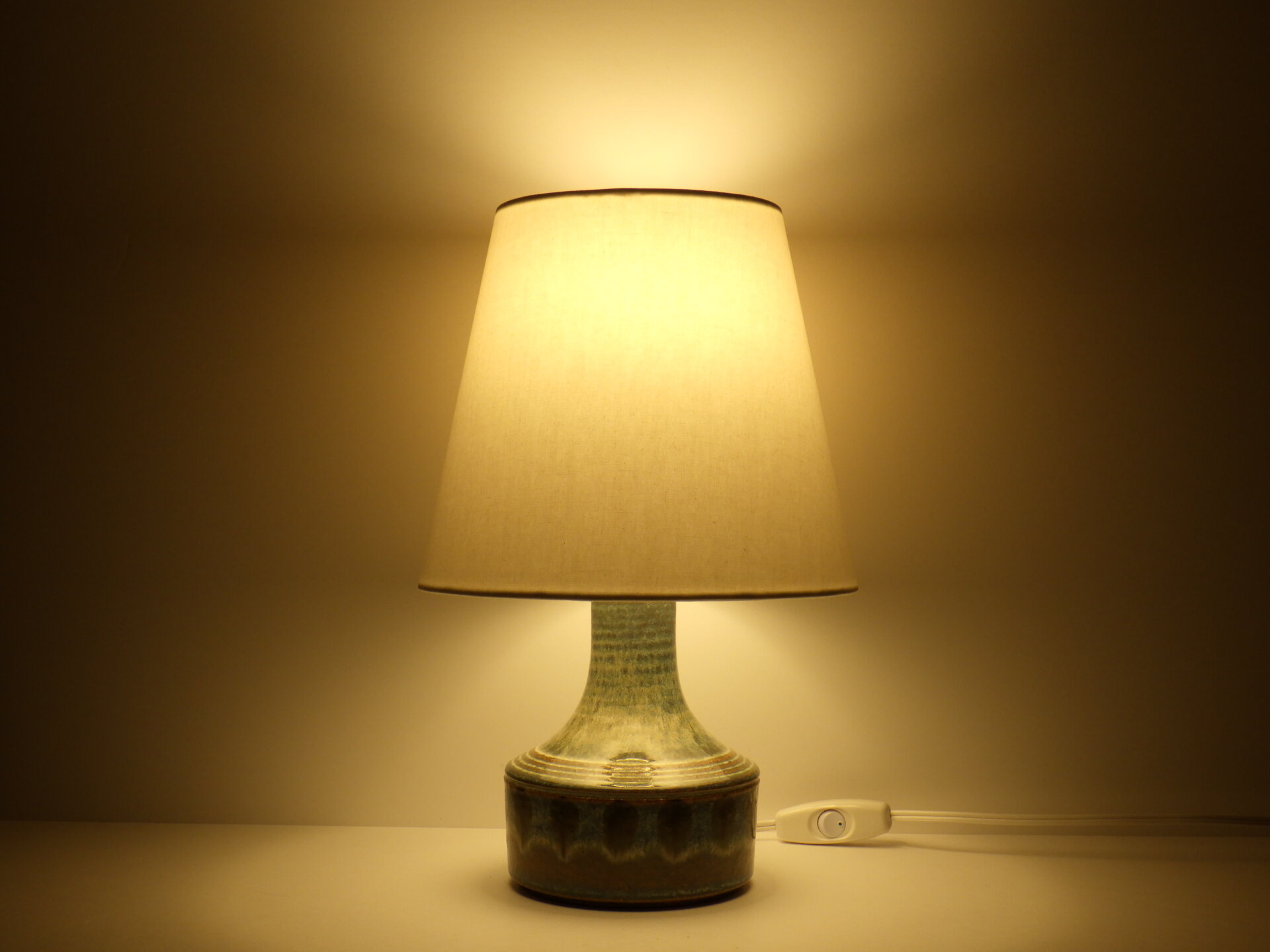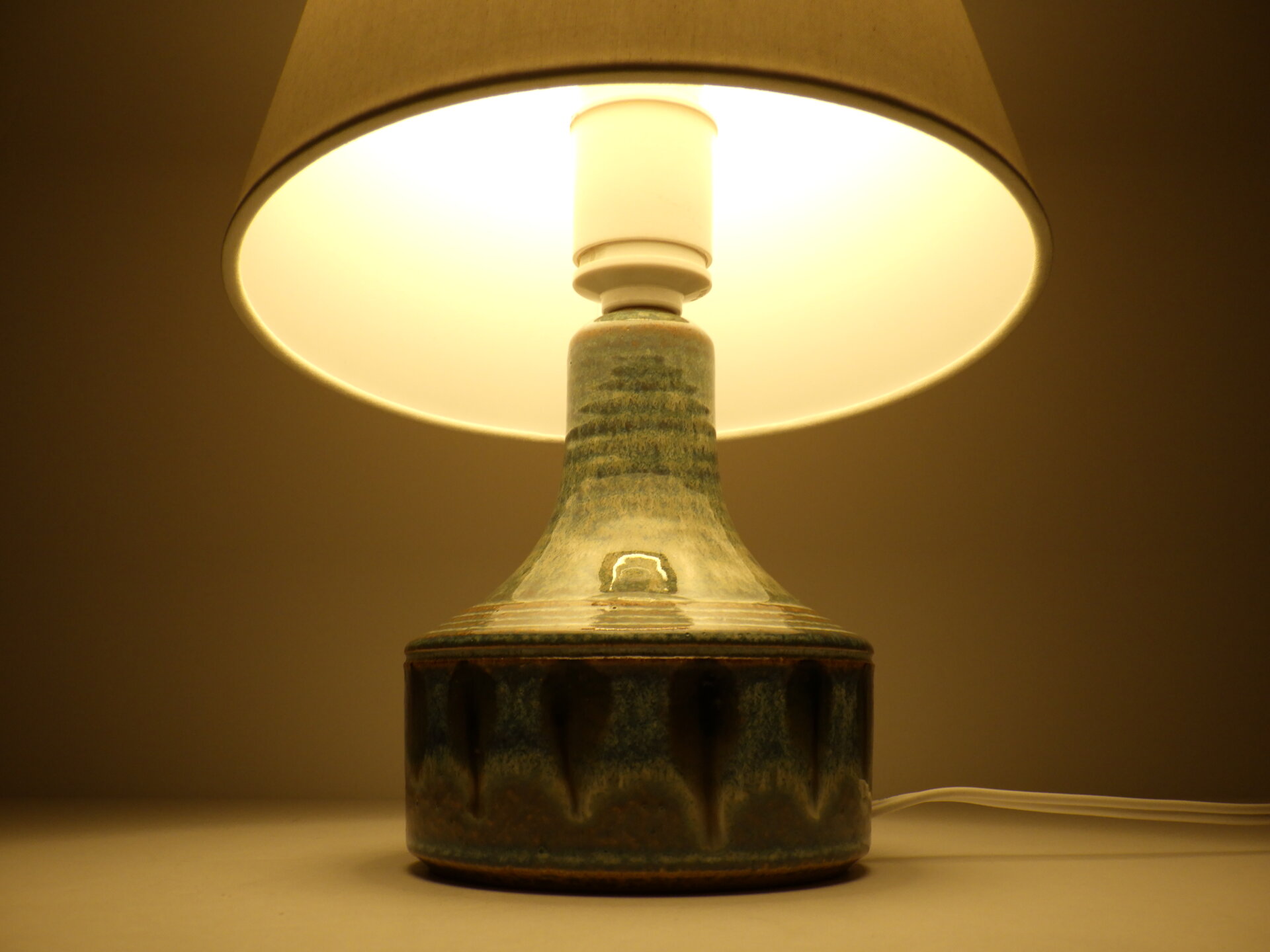 | ヨーロッパで買い付けました。 デンマーク、ボーンホルム島で1835年に創業した「Soholm」のテーブルランプです。 趣のあるブルーグリーンに幾何学模様がデザインされています。 手仕事による独特の釉薬のゆらぎや濃淡が美しく、北欧らしい落ち着いた色合いが空間に柔らかな陰影を生み出してくれる逸品ですね。 土のあたたかみを残しつつもモダンな佇まいなので、北欧インテリアはもちろん、USミッドセンチュリーや和の空間にも自然に溶け込みます。 小ぶりながらも存在感があり、置くだけで空間の温度が一段上がるような、北欧陶器ならではの質感と美しさが際立つランプですね。 コード部分のスイッチでON/OFFが切り替えられます。 (電球の口金サイズ:E26 LED対応) |