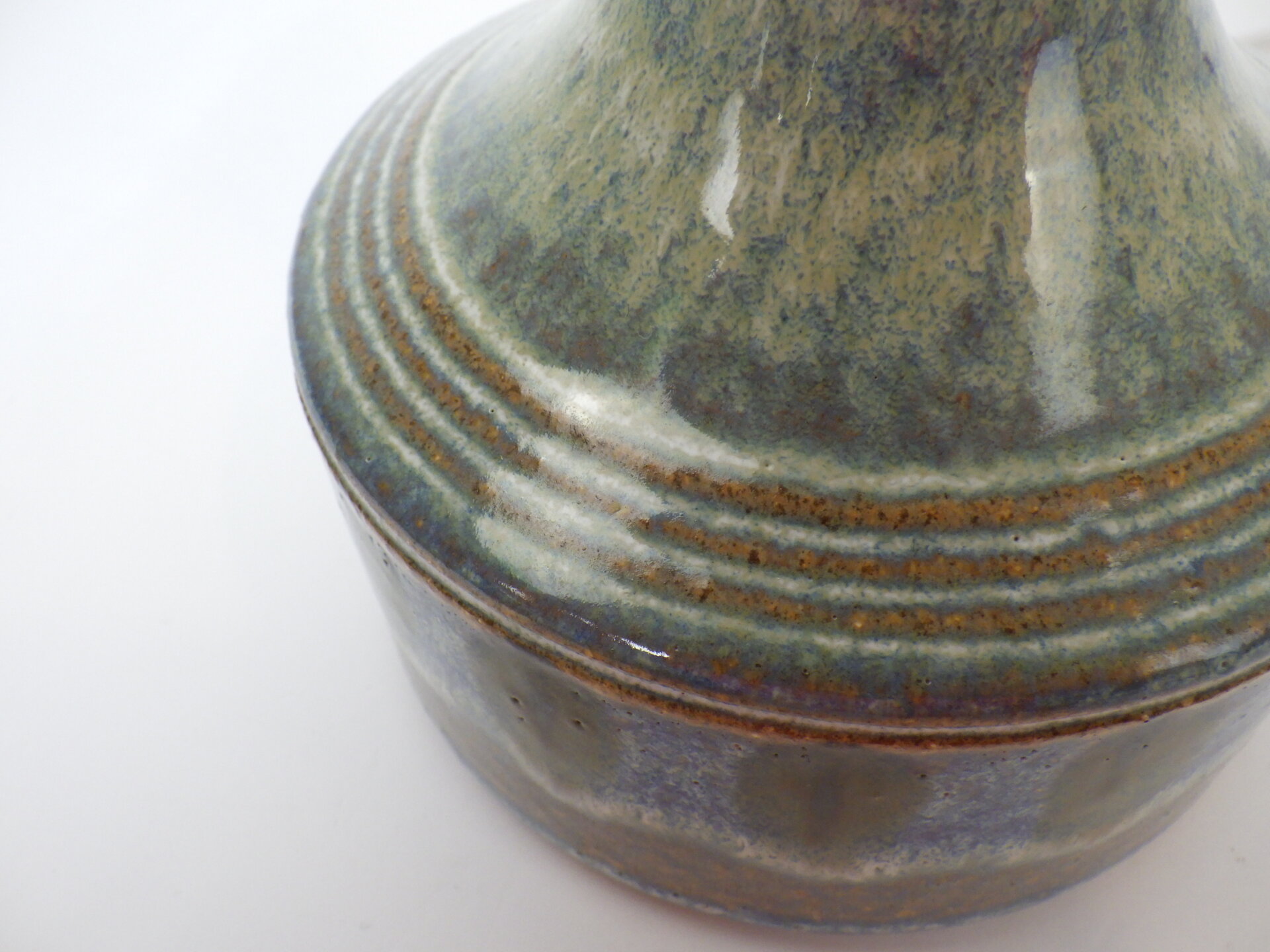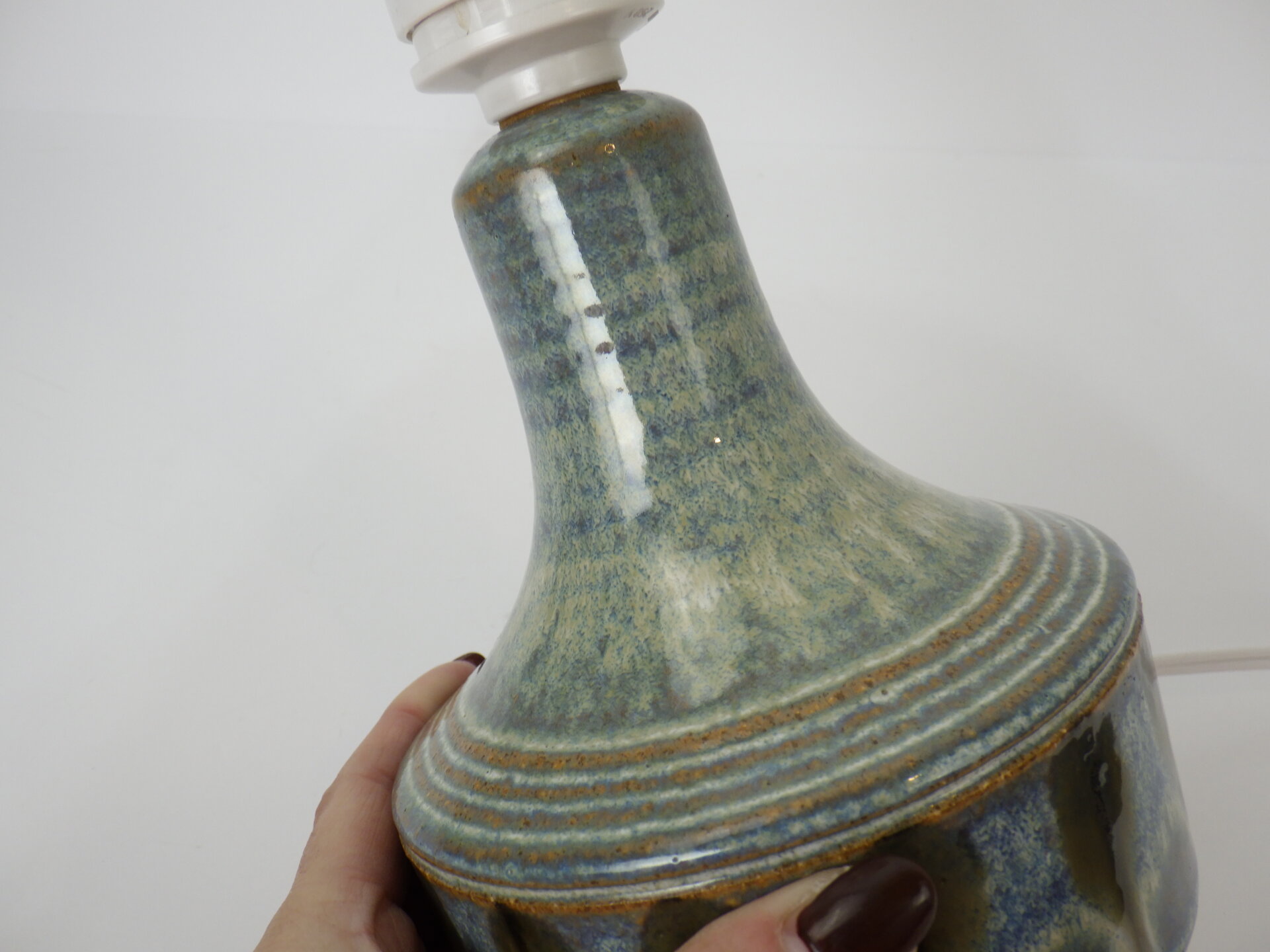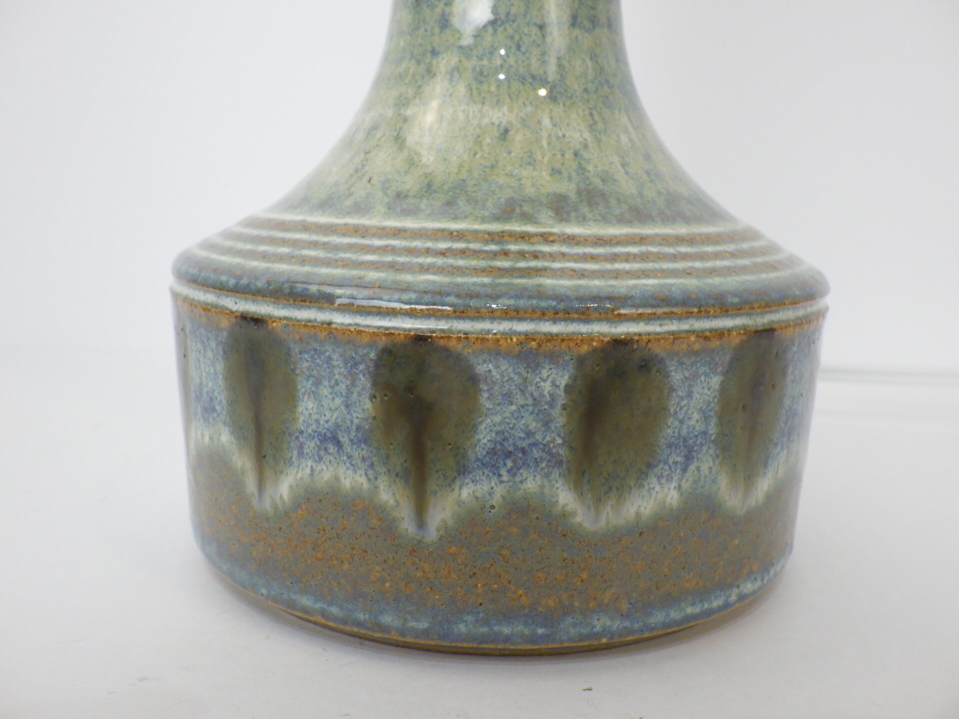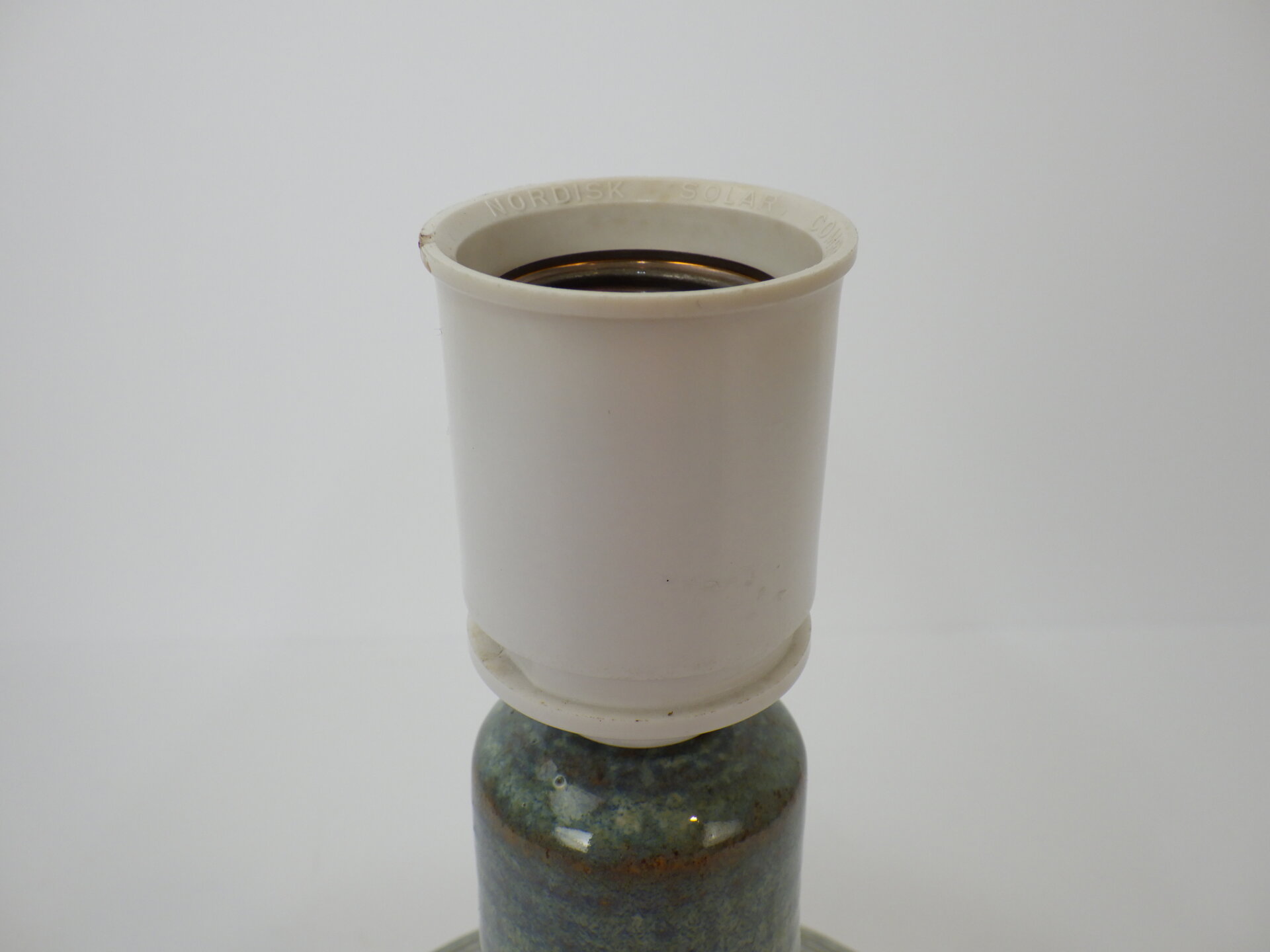 | ヨーロッパで買い付けました。 デンマーク、ボーンホルム島で1835年に創業した「Soholm」のテーブルランプです。 趣のあるブルーグリーンに幾何学模様がデザインされています。 手仕事による独特の釉薬のゆらぎや濃淡が美しく、北欧らしい落ち着いた色合いが空間に柔らかな陰影を生み出してくれる逸品ですね。 土のあたたかみを残しつつもモダンな佇まいなので、北欧インテリアはもちろん、USミッドセンチュリーや和の空間にも自然に溶け込みます。 小ぶりながらも存在感があり、置くだけで空間の温度が一段上がるような、北欧陶器ならではの質感と美しさが際立つランプですね。 コード部分のスイッチでON/OFFが切り替えられます。 (電球の口金サイズ:E26 LED対応) |