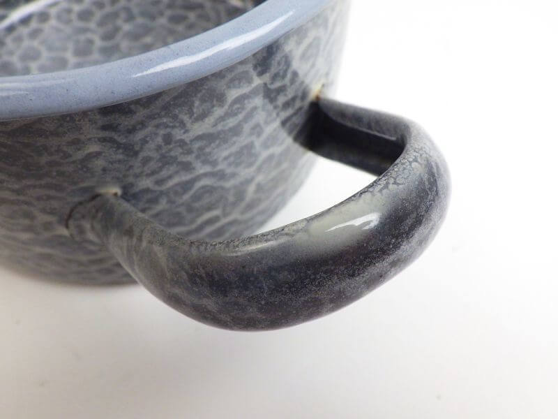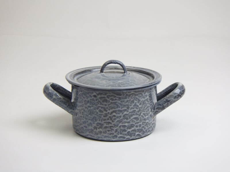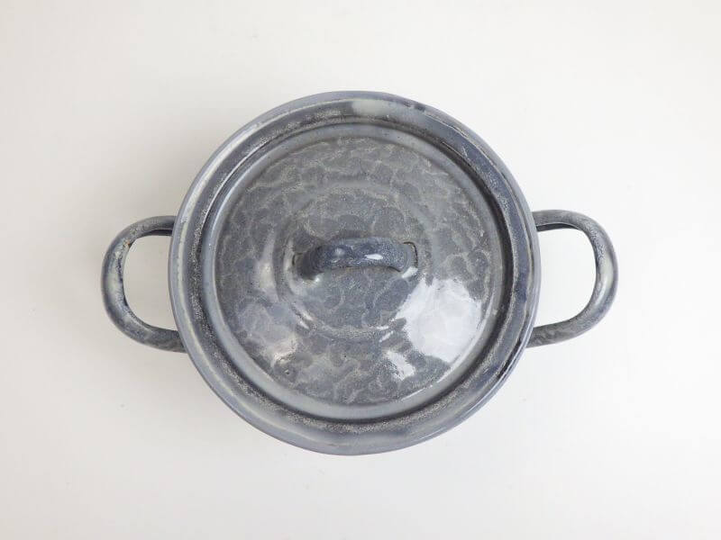 | ビンテージの琺瑯の両手鍋です。 丸みのあるデザインが可愛いです。 小ぶりなので、シチューなどの取り分けに使っても良いですね。 |