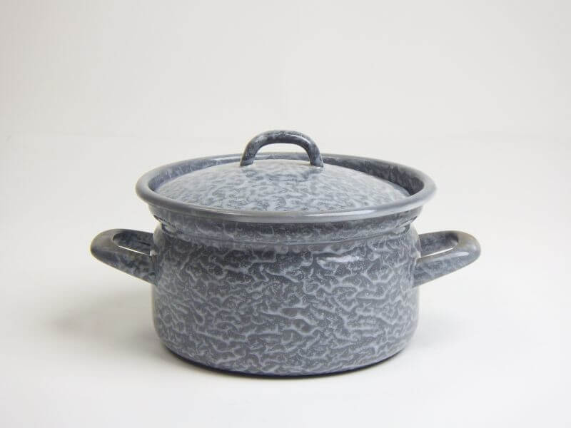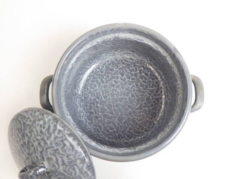 | ビンテージの琺瑯の両手鍋です。 シンプルで格好良いデザインです。 軽量なのでキャンプ等のアウトドアにも持って行きやすいです。 |