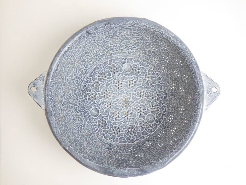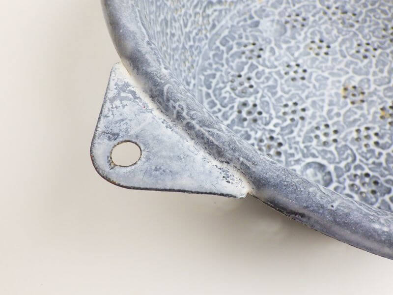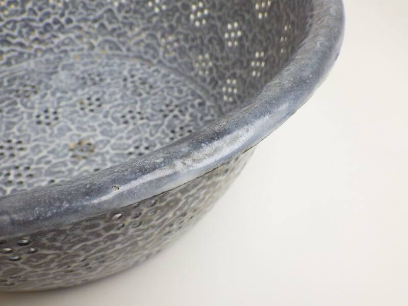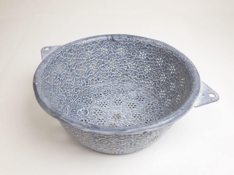 | ビンテージの琺瑯のコランダーです。 キッチンツールとしてお使いいただく他、ガーデニングやディスプレイにお使いいただいても可愛いですね。 |