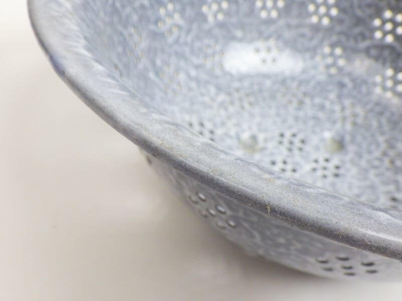 | ビンテージの琺瑯のコランダーです。 キッチンツールとしてお使いいただく他、ガーデニングやディスプレイにお使いいただいても可愛いですね。 |