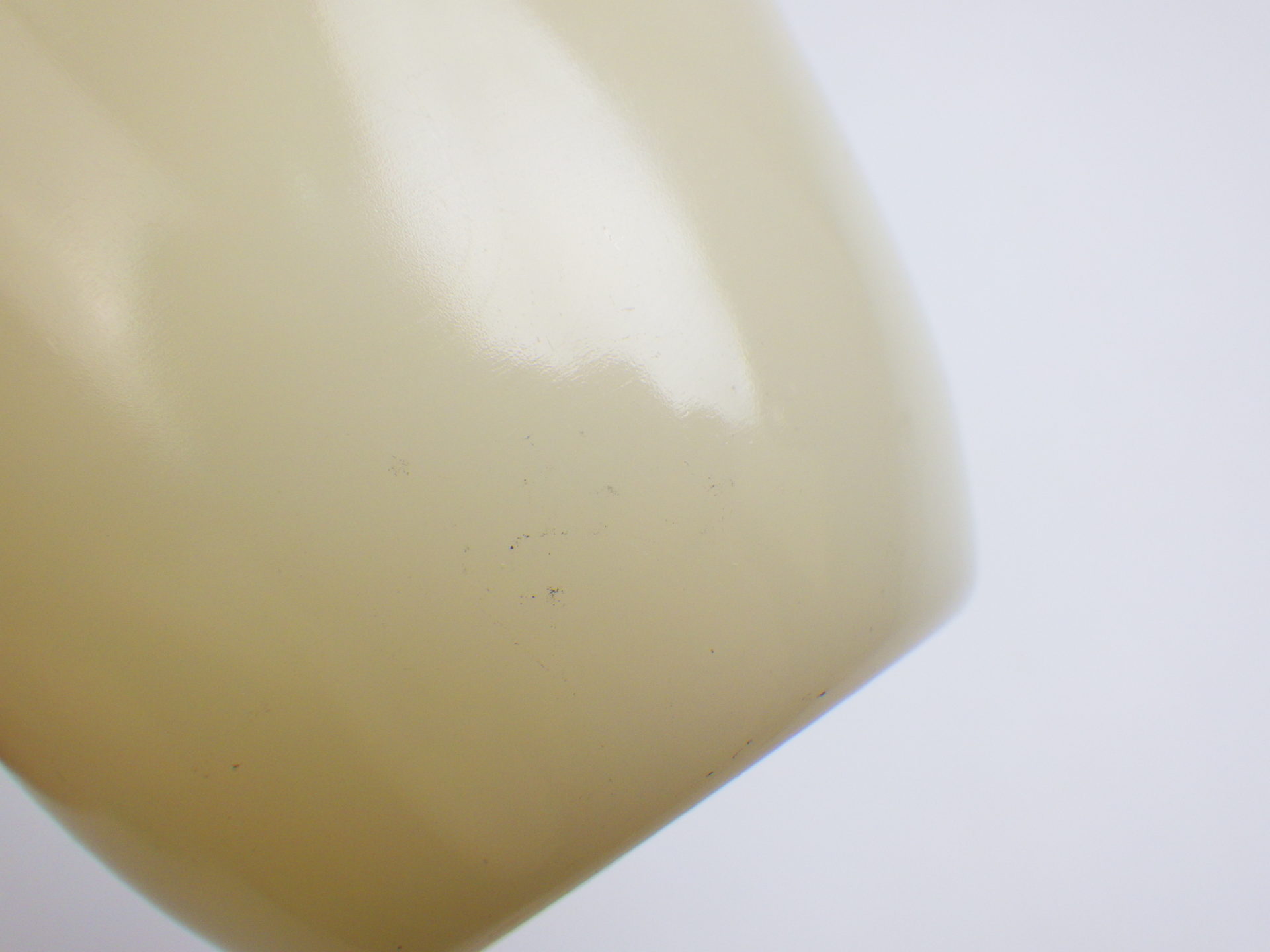 | ヨーグルトやアイスカップとしてもお使いいただける可愛らしいアイボリーのカスタードカップです。 ※刻印は初期のブロックレターです。 |