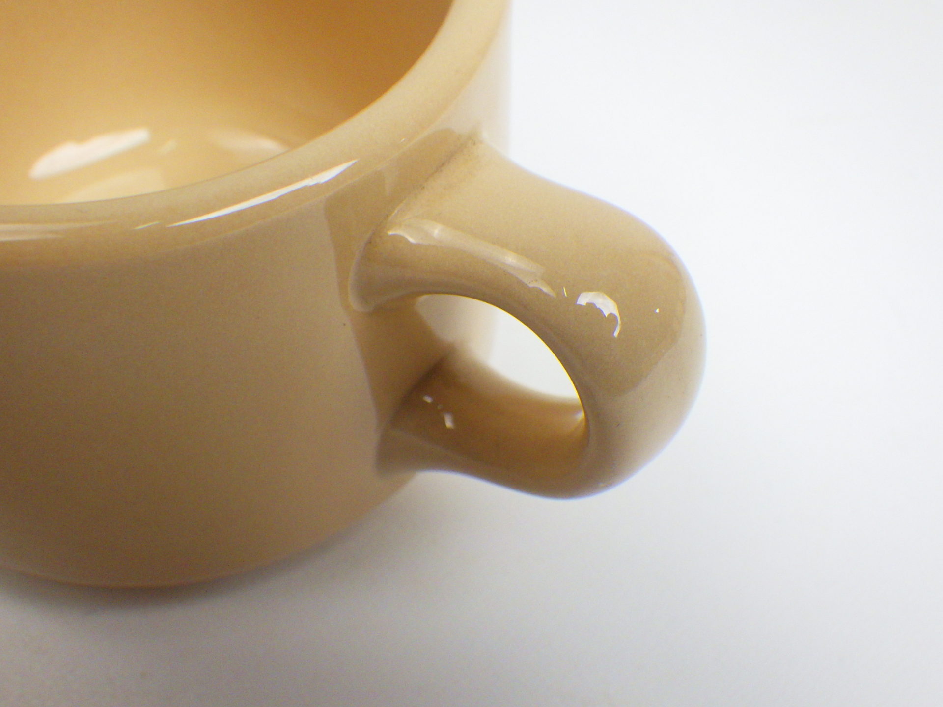 | アメリカで買い付けしたシェナンゴのビンテージマグです。 Shenangoは1900年代初頭からアメリカのホテルやダイナー向けに食器類を製造していた老舗メーカーです。 厚みのある作りと、優しいベージュが良い風合いですね。 コーヒーの他にもスープマグとしてご使用いただけます。 |