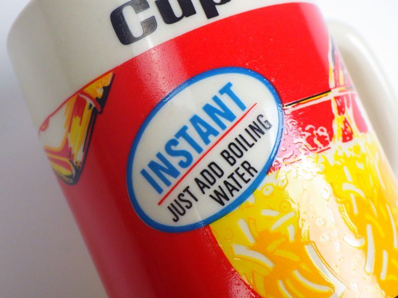 | アメリカでは定番の、短いパスタが入ったチキンヌードルスープ柄のマグです。 お湯を注ぐだけのカップスープの広告マグとして作られました。 リプトンというと紅茶のイメージが強いですが、インスタントスープも色々と販売されていました。 |