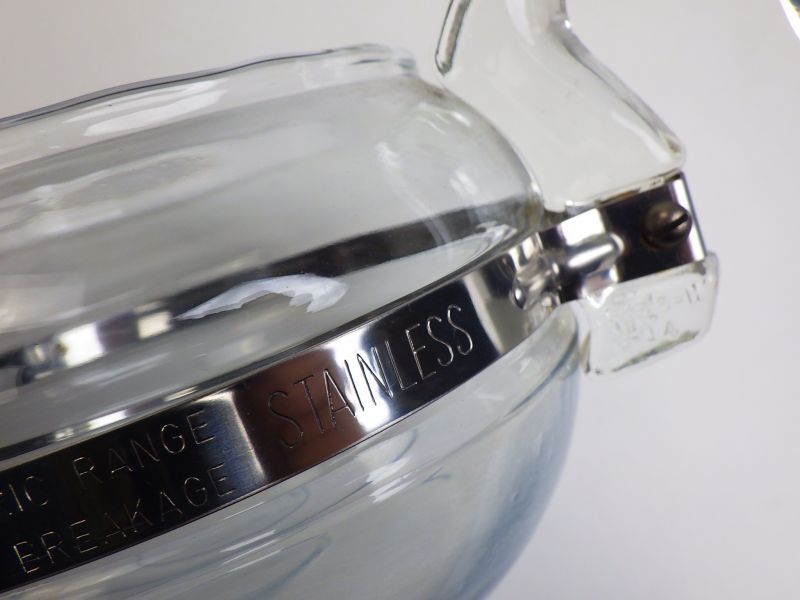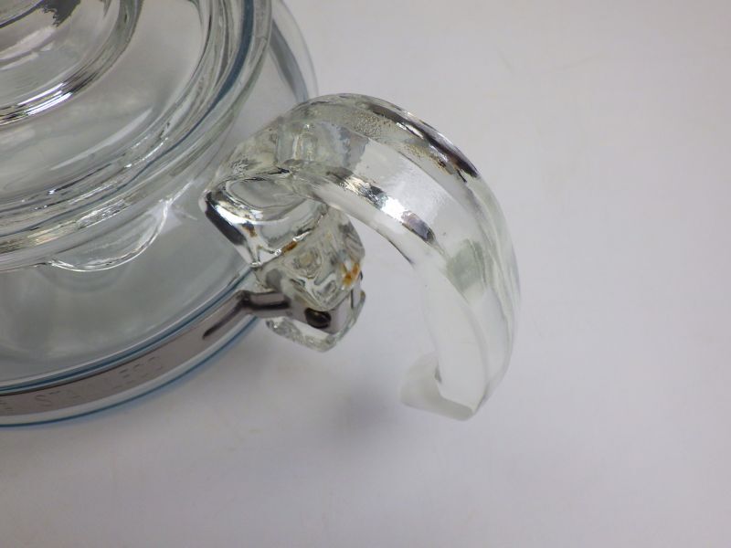 | コーニング社から発売されていた、直火にかけれるシリーズです。 ティーポットとしての使い道の他に、野菜をボイルしたりとお鍋代わりでも使えるアイテムです。 ガラス製で中の状態が見えやすいため、調理しやすいのもポイントです。 |