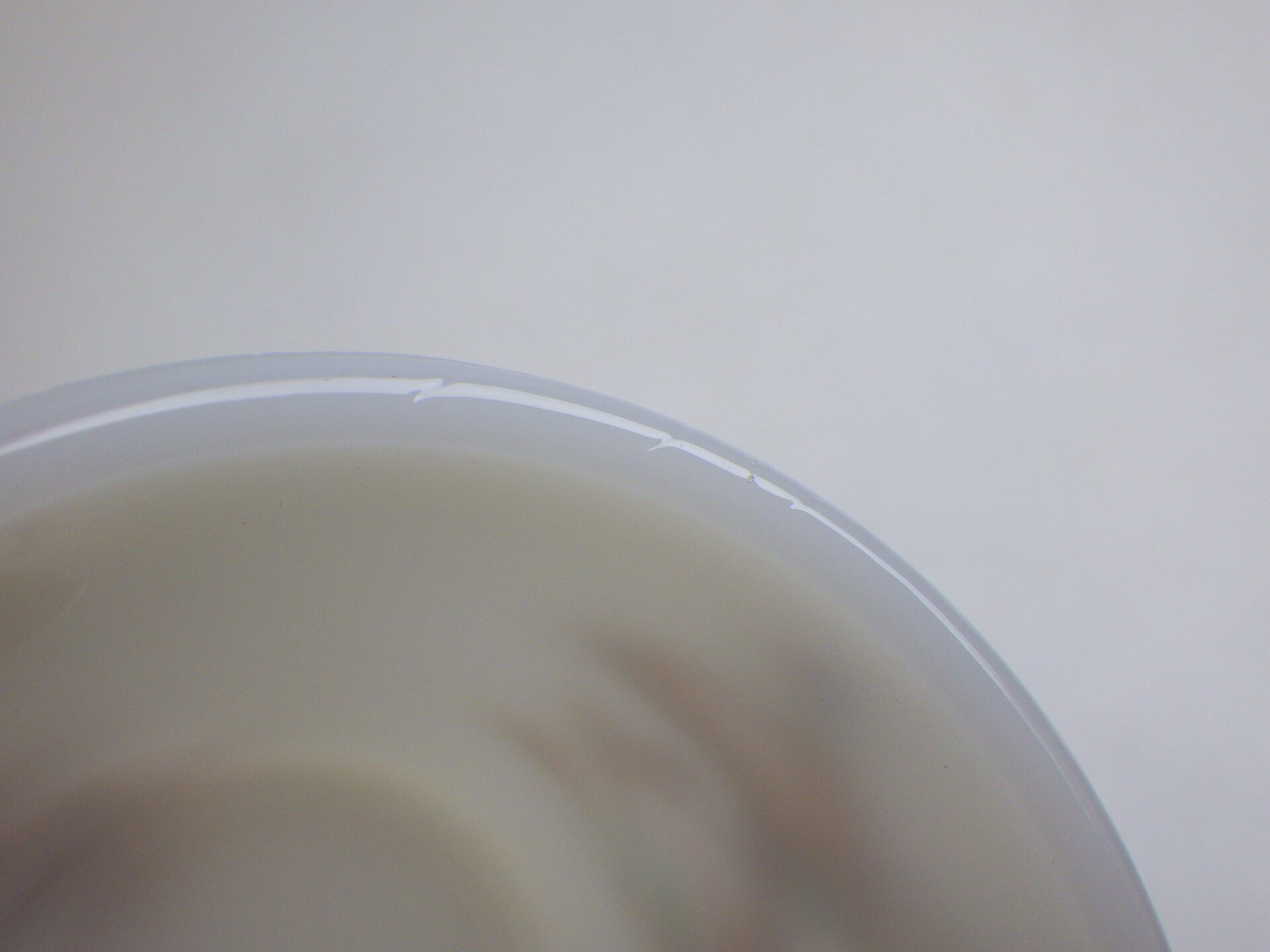 | condition | リム、ボトム付近に薄い着色があります。 リムに製造時からのわずかなざらつきがあります。 ボトム付近に製造時からの劣化線があります。 その他ワレ、カケなく、ツヤもあり良い雰囲気です。 |