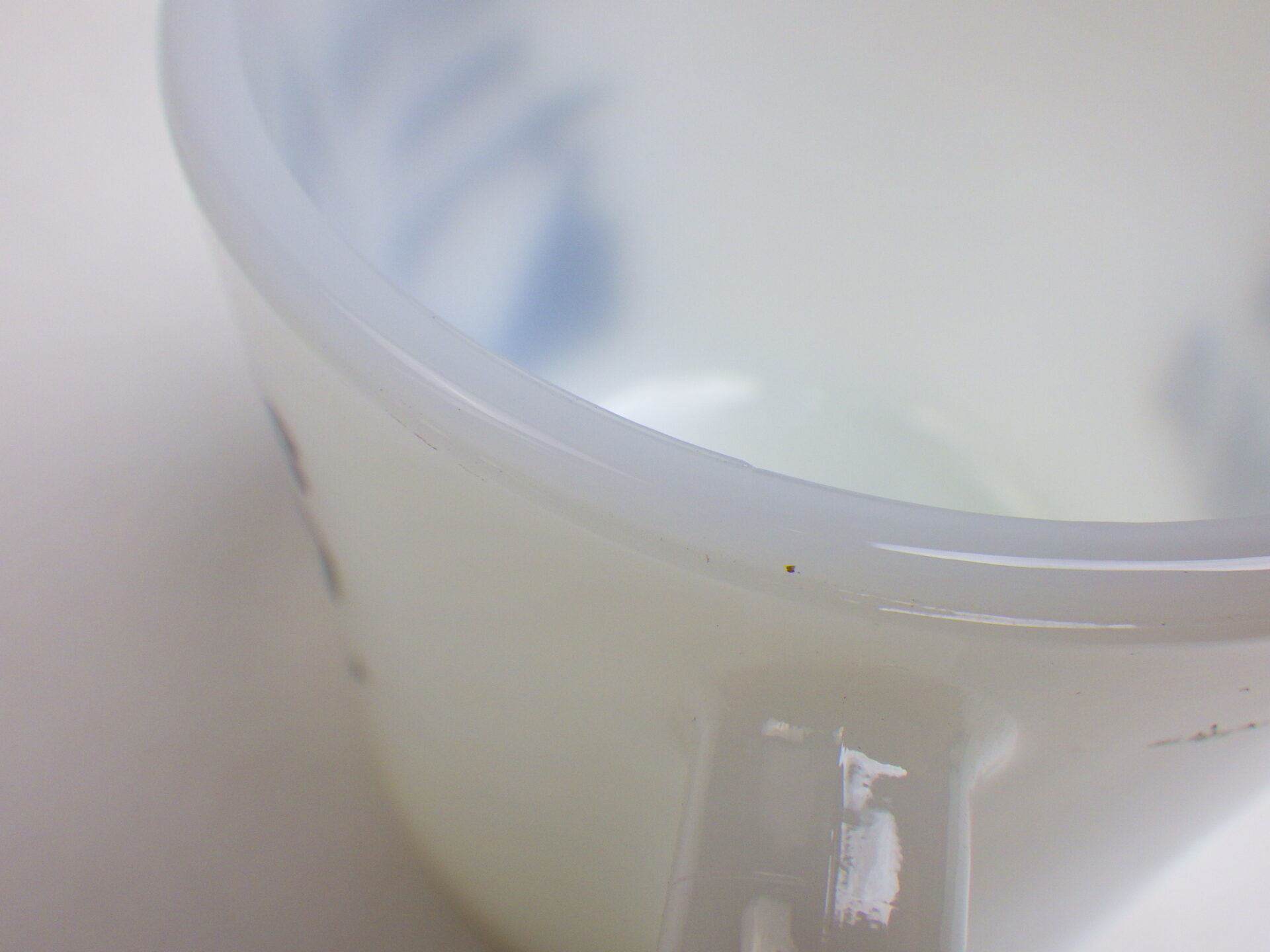 | condition | リム、ハンドル、ボトム付近に薄い着色があります。 リムに製造時からのわずかなざらつきがあります。 ハンドル上部に製造時からのわずかな劣化線があります。 その他ワレ、カケなく、ツヤもあり良い雰囲気です。 |