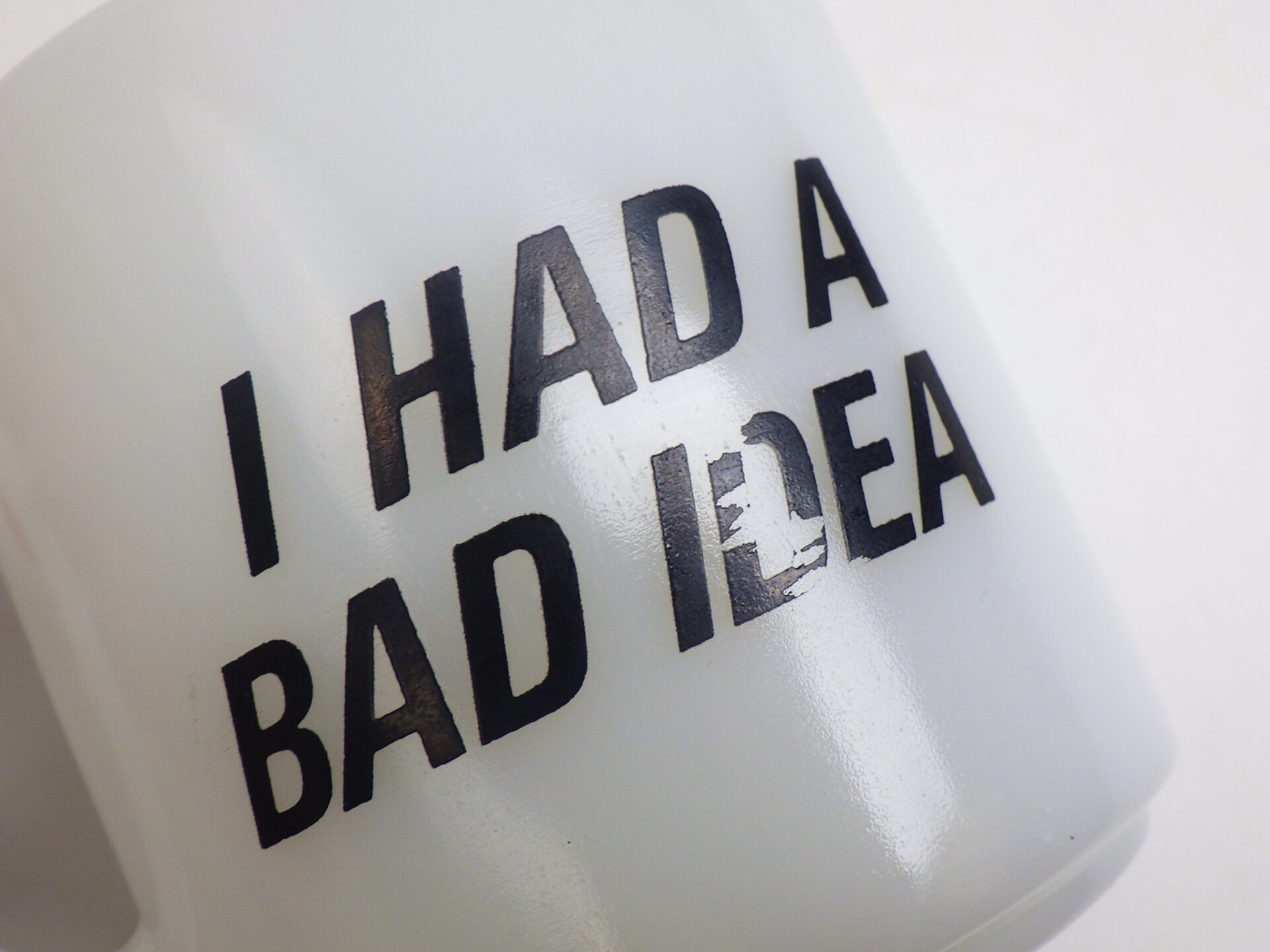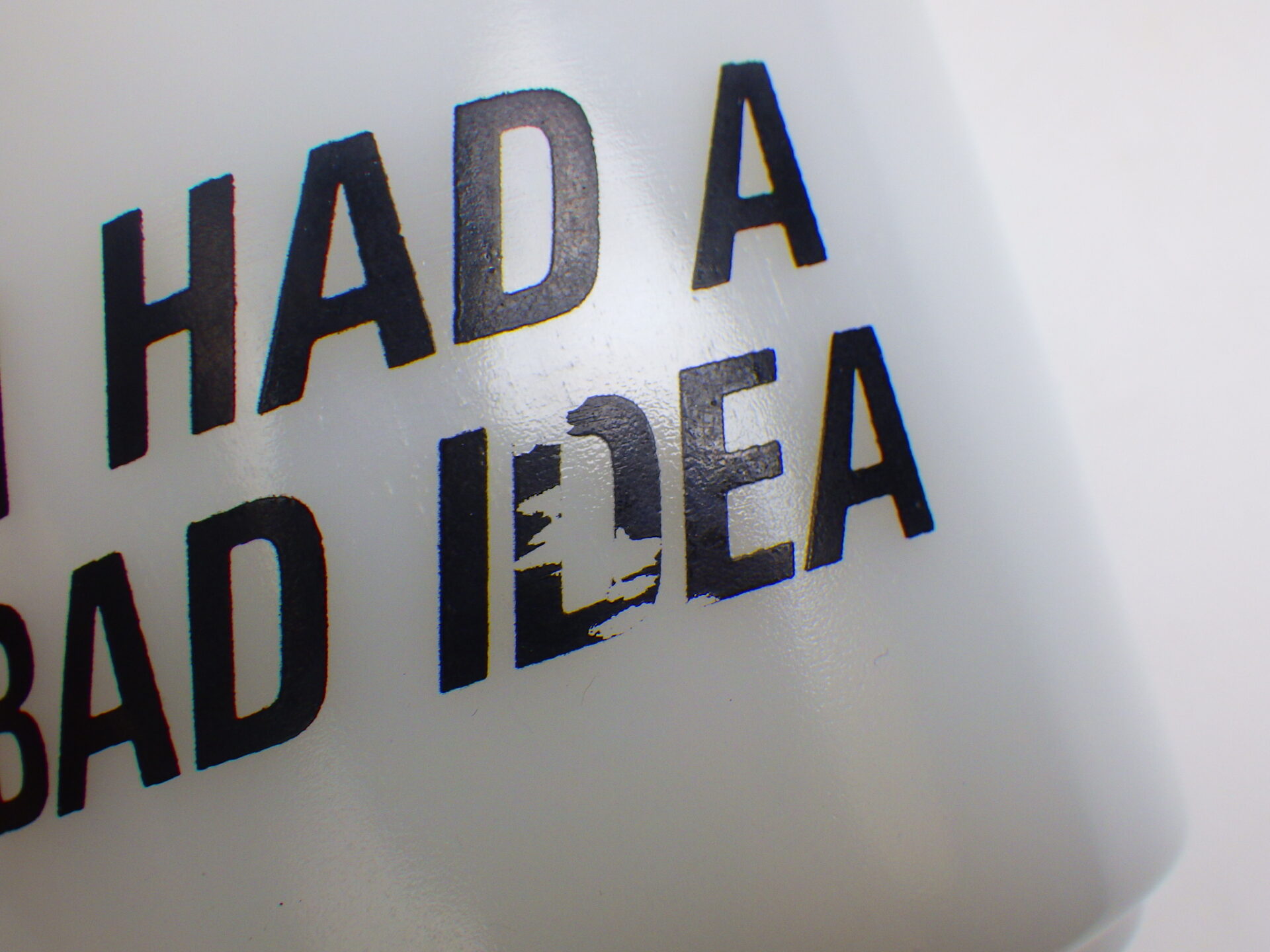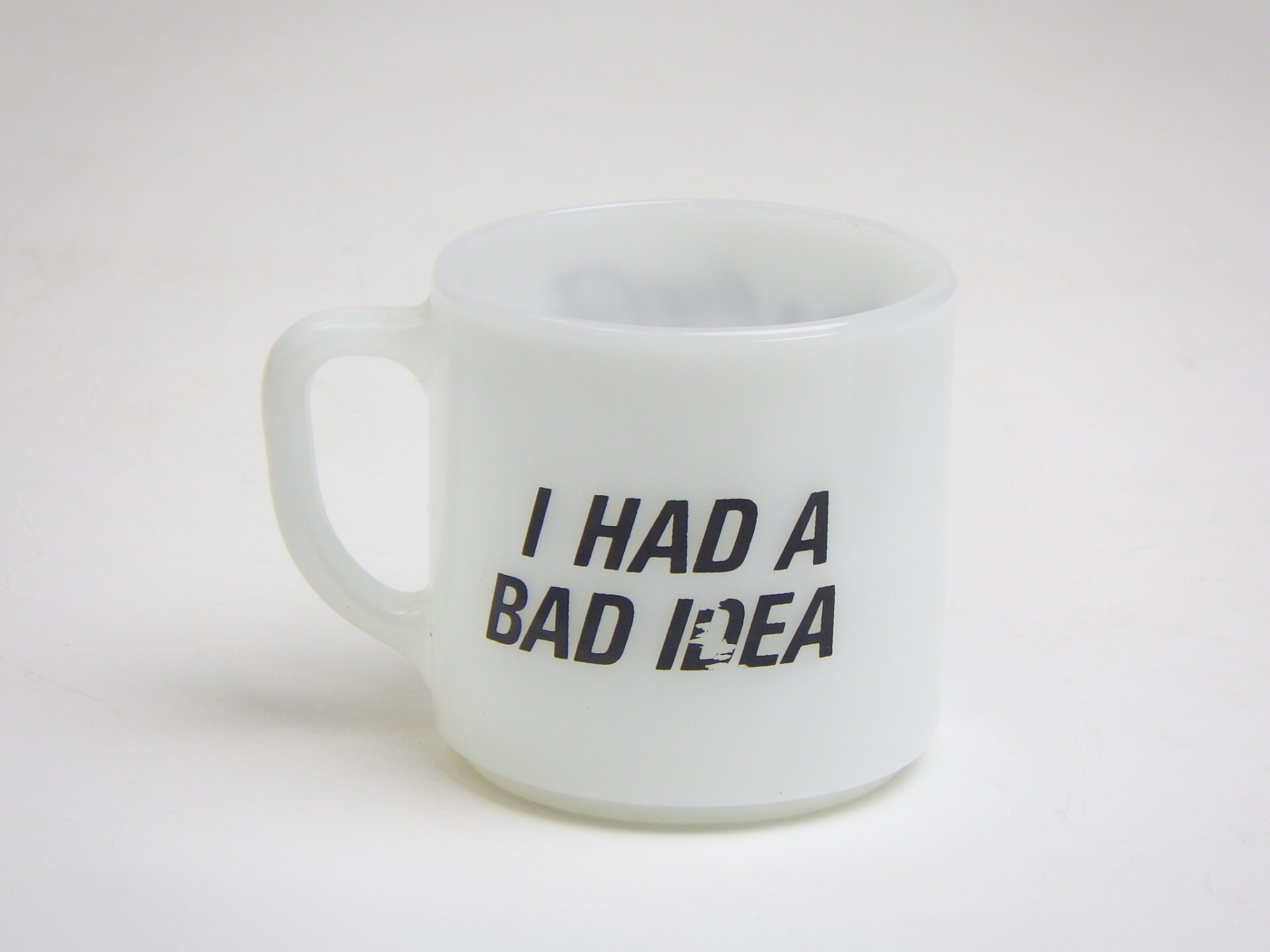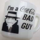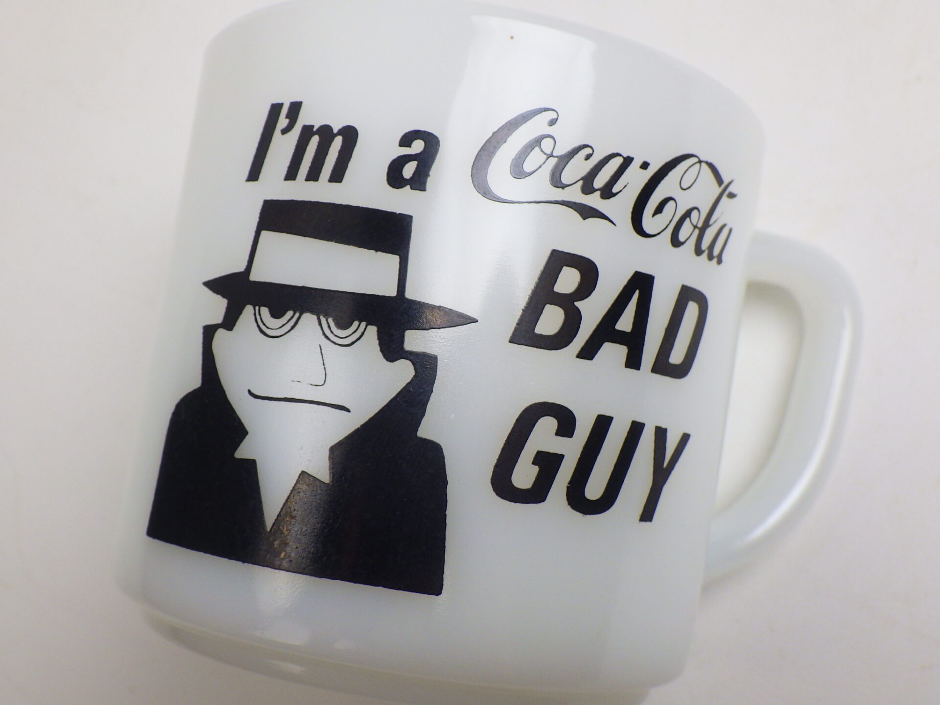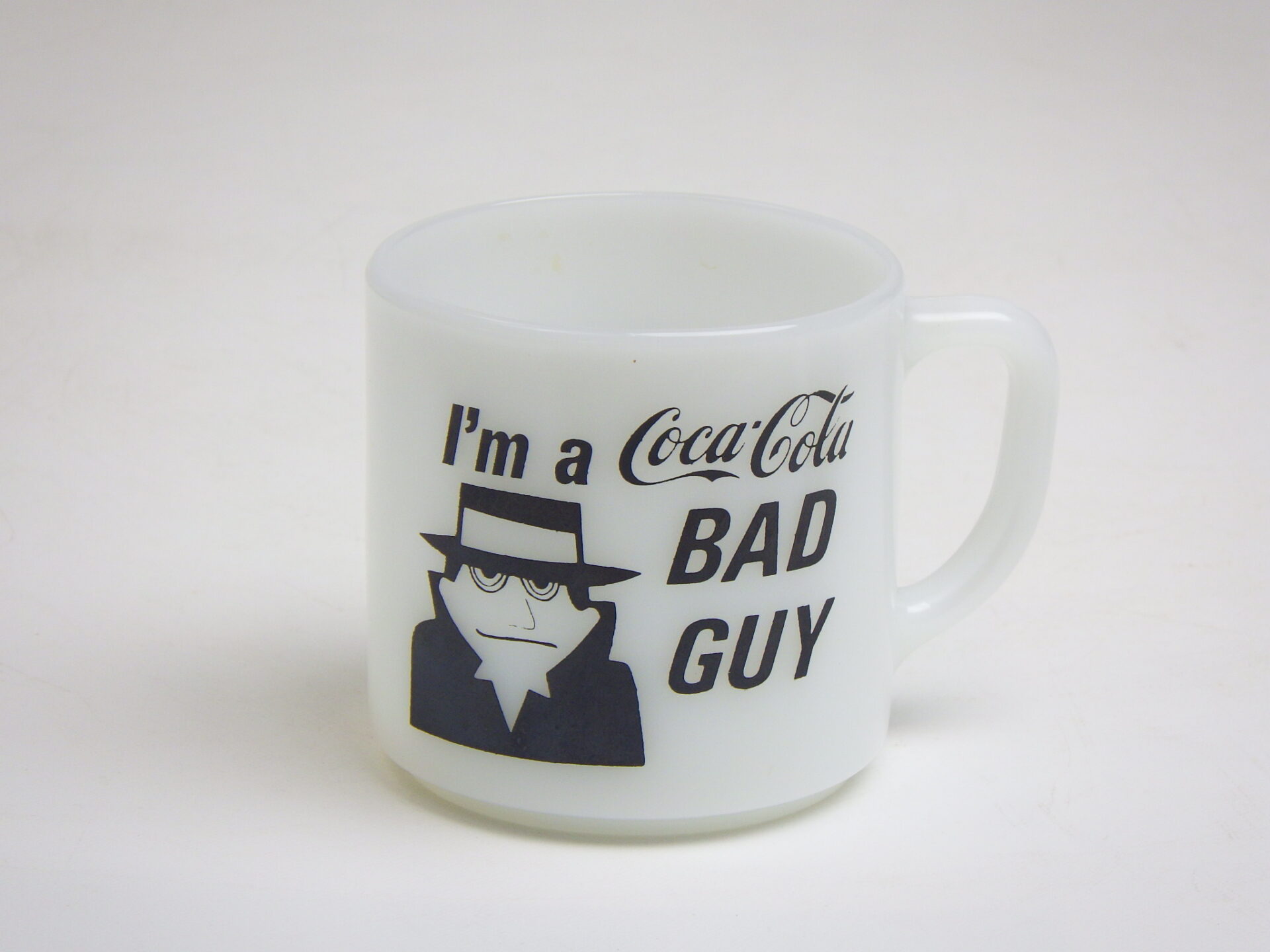 | ファイヤーキングとフェデラルを中心に展開された、「BAD GUY」シリーズ。企業とコラボして作られたアドマグです。それぞれプリントの一列目に企業名が記されています。 不気味な笑みを浮かべた黒ずくめの男と、裏面の「I HAD A BAD IDEA」の文字が何とも言えないシュールさで、思わず集めてみたくなるシリーズです。 こちらはフェデラル版のコカ・コーラマグ。 シリーズの中でもレアなアイテムです。 |