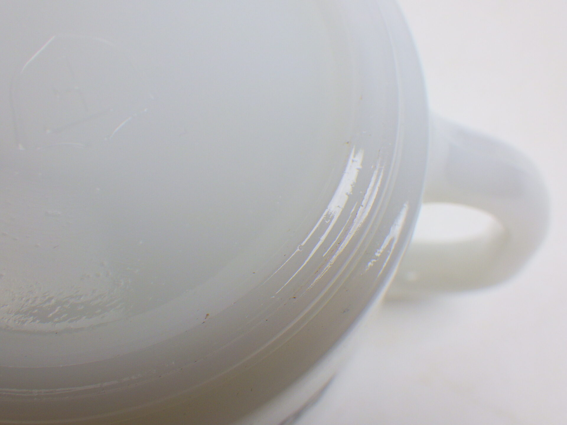 | condition | リム、ハンドル、ボトム付近に薄い着色があります。 ボトムと内側底面に製造時からの劣化線があります。 内側底面に製造時からの凹凸があります。 その他ワレ、カケなく、ツヤもあり良い雰囲気です。 |