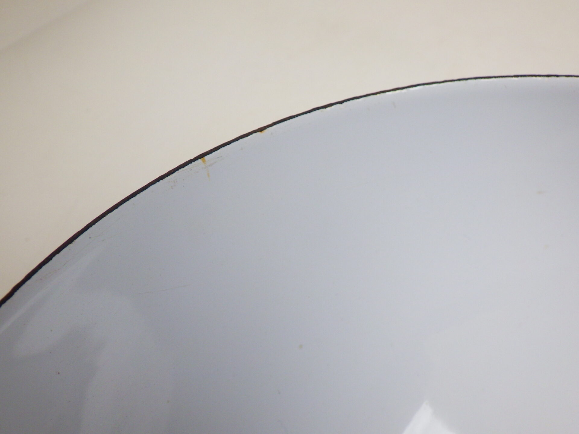 | condition | 目立ったエナメルのカケも無くツヤもあり綺麗な状態です。 内側に掻き混ぜ痕が見られます。 側面、底面接地部にスレ、キズが見られますが、まだまだお使いいただけます。 不明な点や追加画像の必要な場合は、お気軽にお問い合わせ下さい。 |