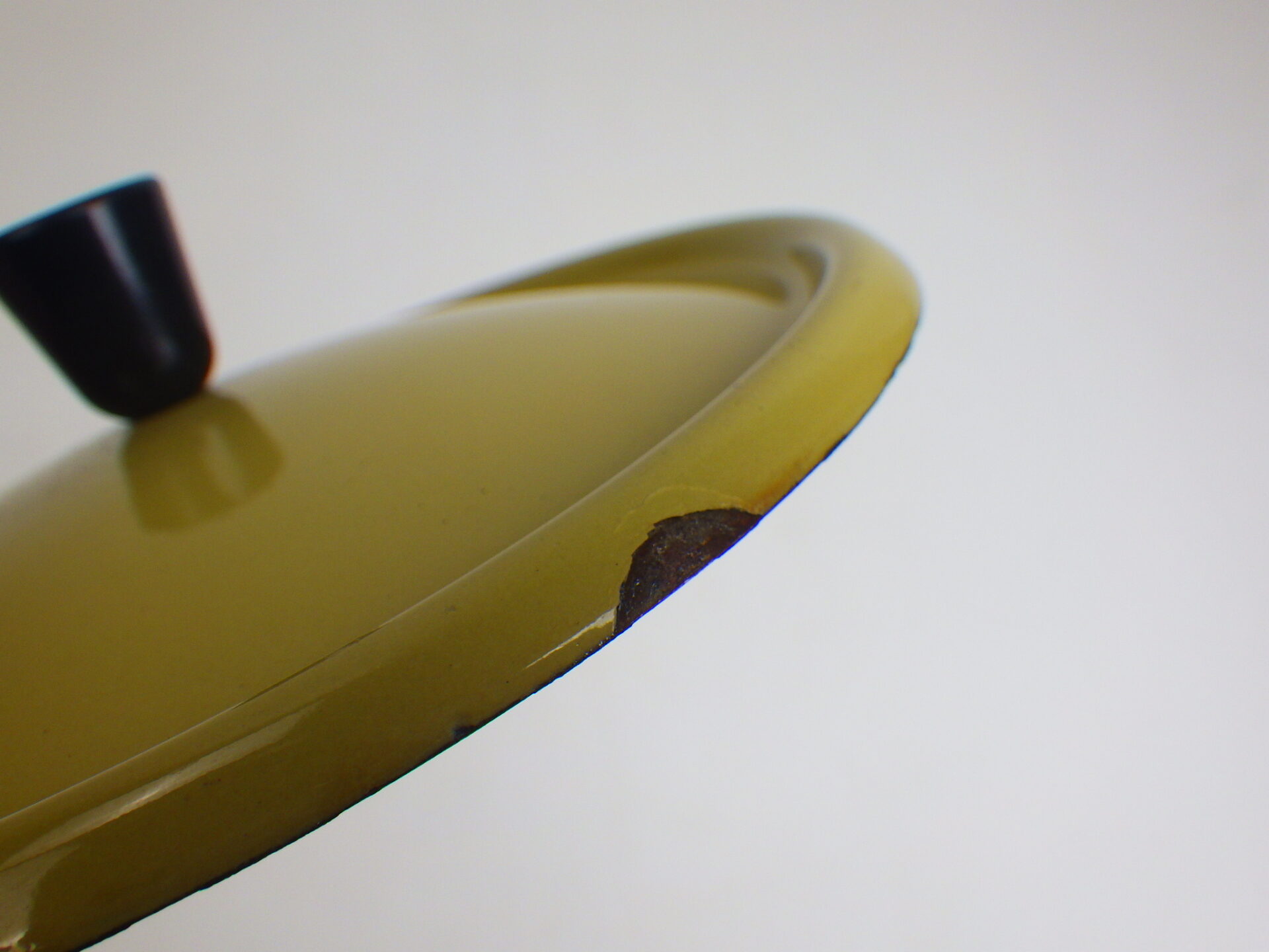 | condition | 蓋にわずかなエナメルの剥がれ、着色があります。 底面接地部、ハンドル部分にスレ、キズが見られますが、その他目立った使用感はなく良い状態です。 ※こちらは鍋のみの販売です。ウォーマーは付属しません。 不明な点や追加画像の必要な場合は、お気軽にお問い合わせ下さい。 |