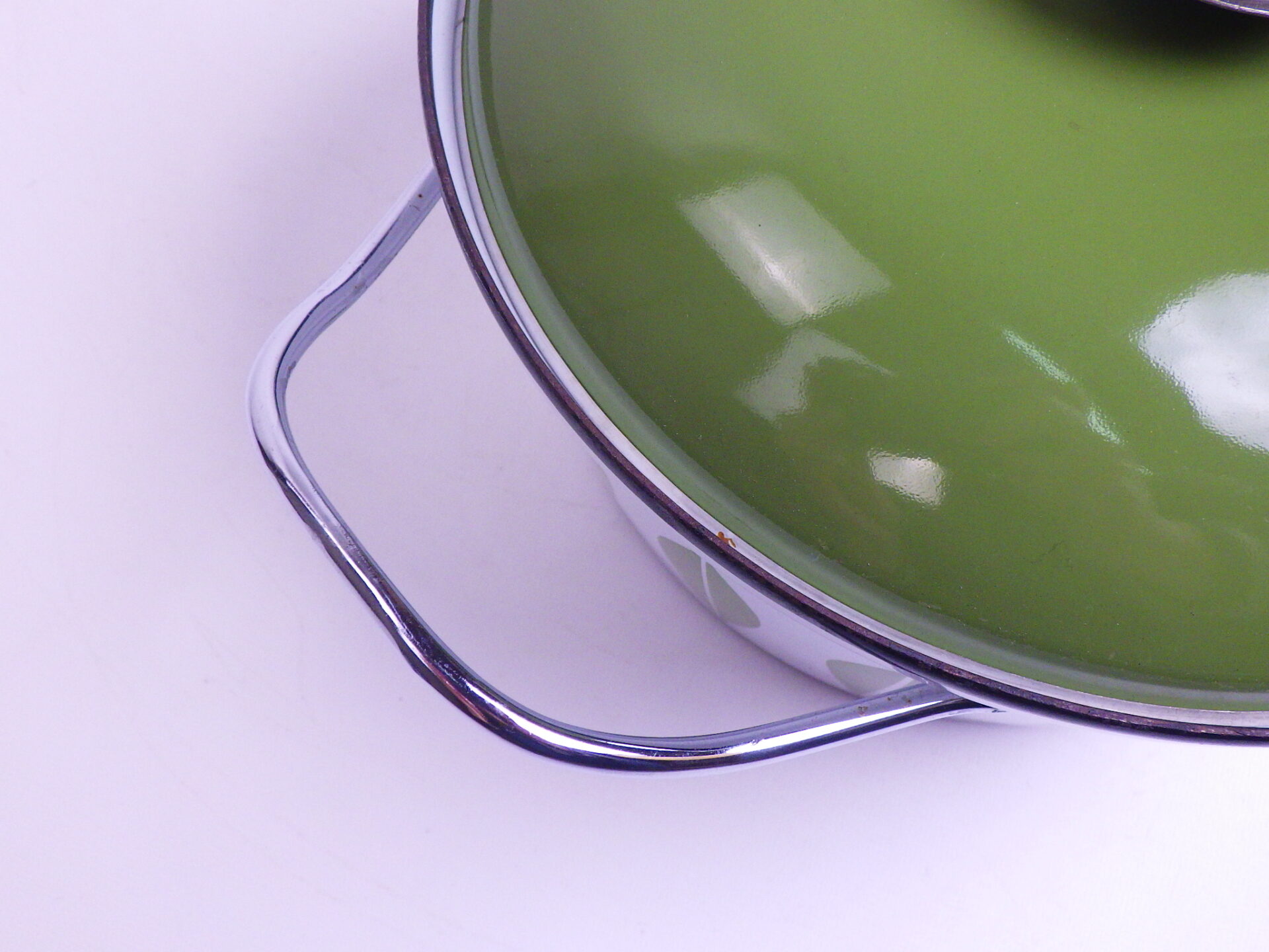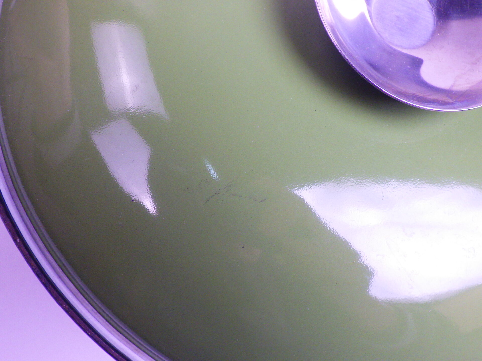 | condition | 内部と蓋裏にわずかなエナメルの剥がれがあります。 経年によるサビ、汚れ、小キズがあります。 内部にごくわずかな掻き混ぜあとがあります。 底面接地部にスレ、キズが見られますが、その他目立ったワレ、カケはなくツヤもあり良い状態です。 不明な点や追加画像の必要な場合は、お気軽にお問い合わせ下さい。 |