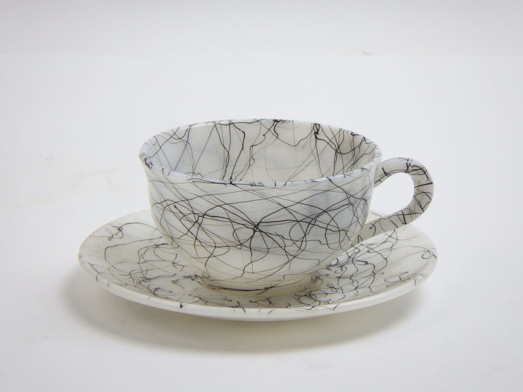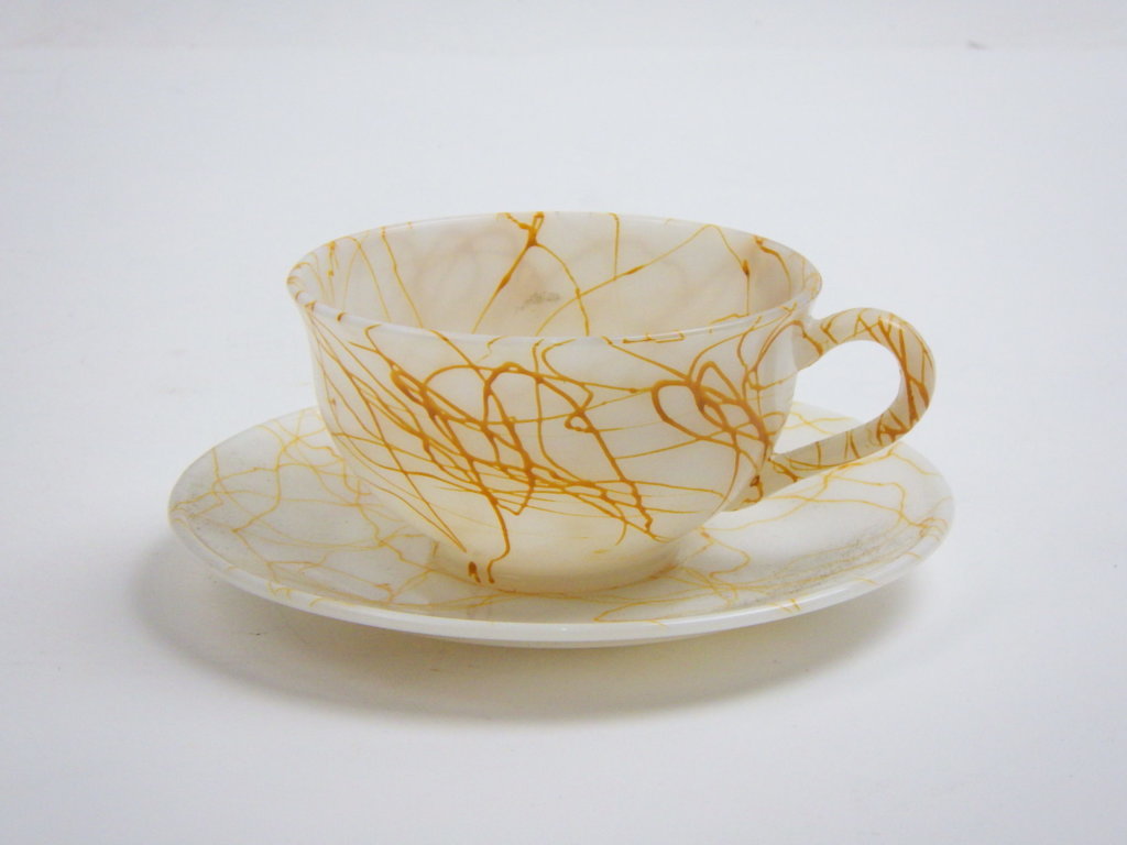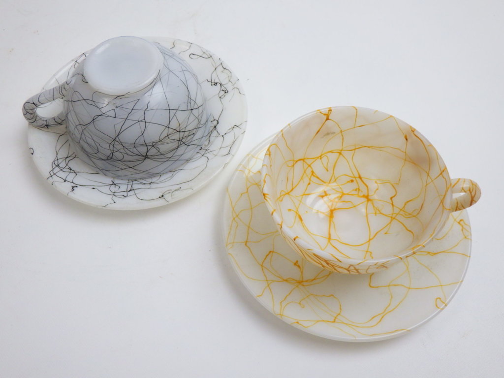 ミルクホワイトにランダムにデザインされた模様は一点一点表情が異なります。