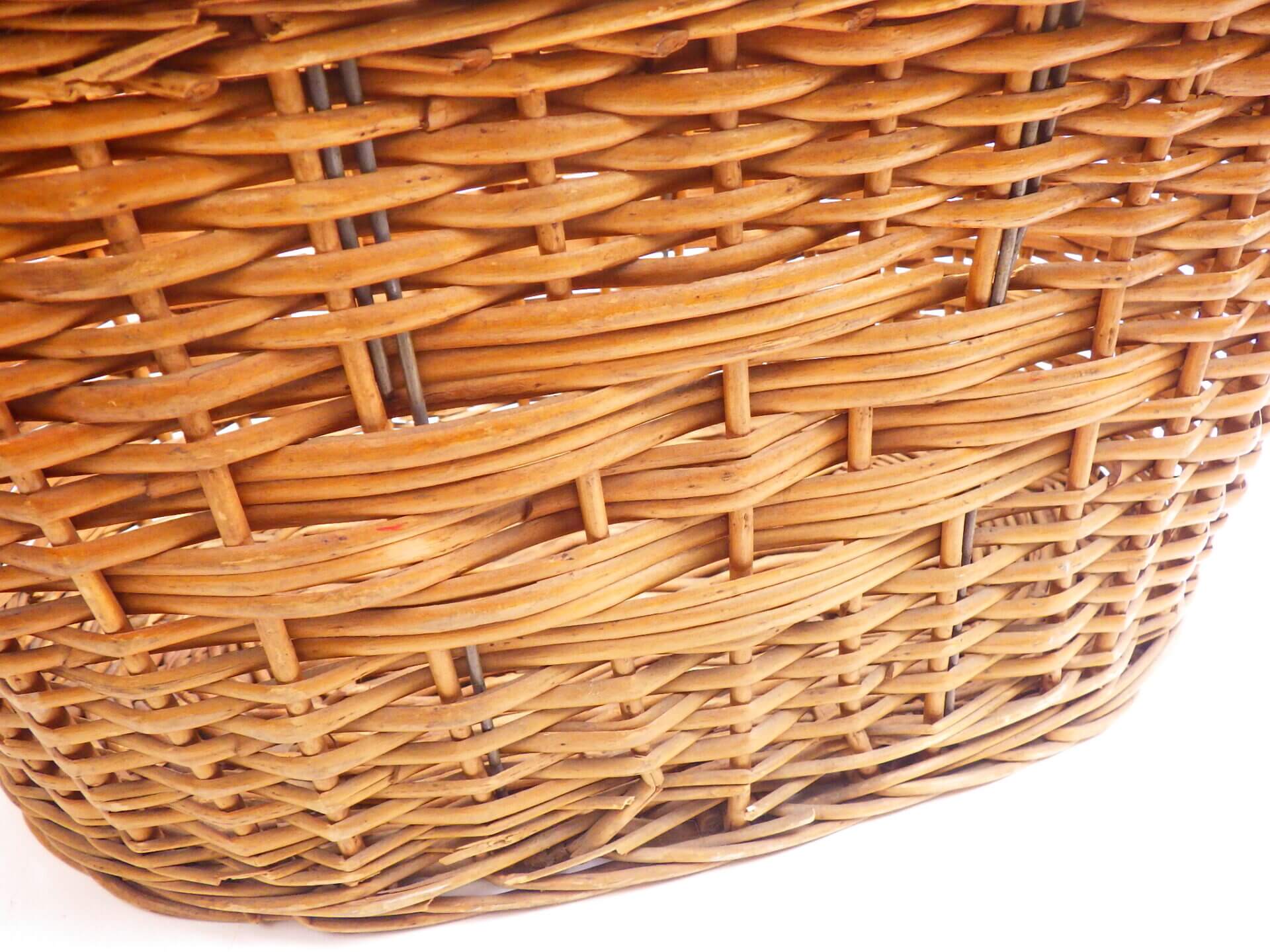| こちらのバスケットはアメリカで買い付けたものです。 ピクニックやキャンプに持って行ったり、毛糸などのソーイングアイテムを入れてお部屋に飾ると可愛いですね。 ブランケット入れにもオススメのサイズです。 |